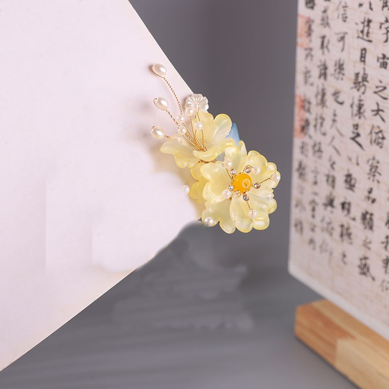 골동품 머리핀 여성의 중국 바람 링 난초 술 한푸 클립 헤드폰 프린지 사이드 클립 새로운 중국 꽃 머리핀