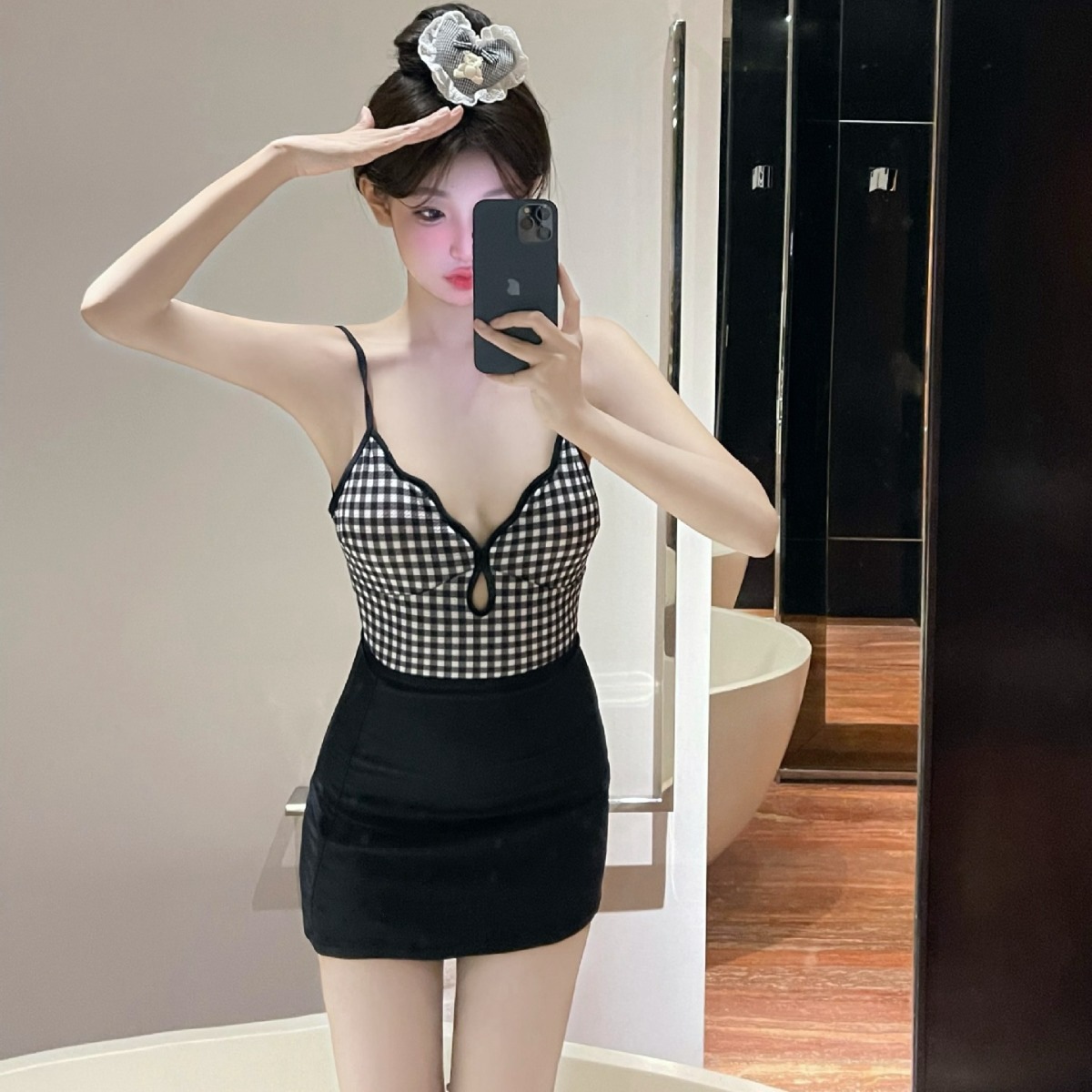 • 검은 격자 무늬 분리형 수영복