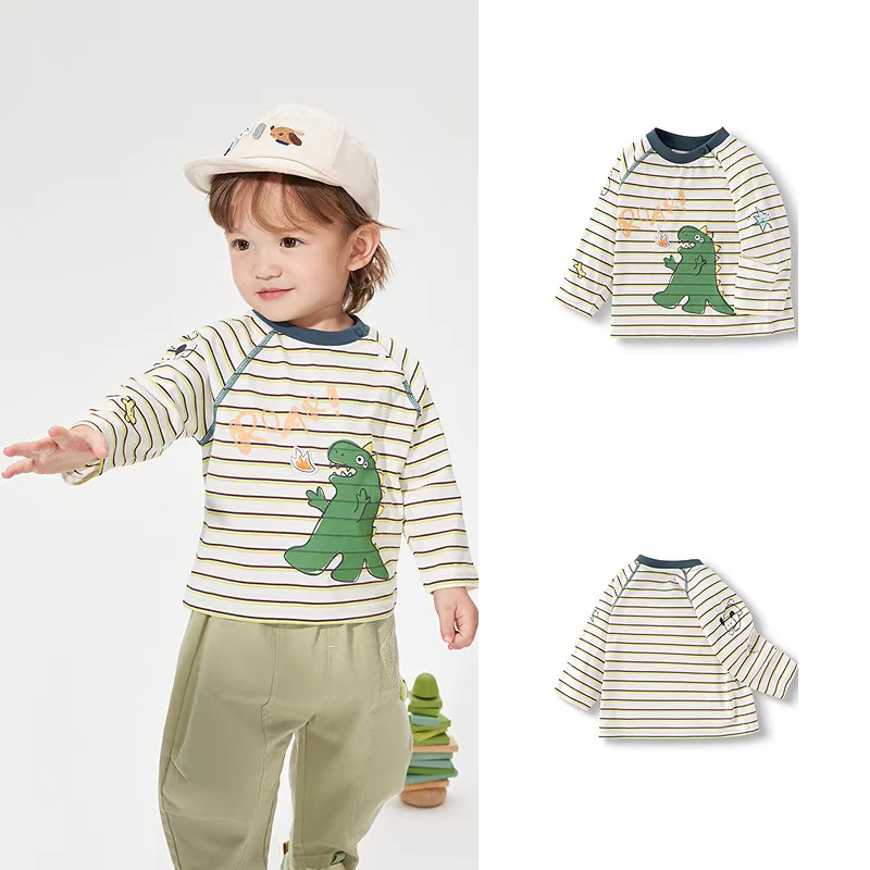 아기의 긴팔 티셔츠 어린이 아기의 최고 얇은 백킹 셔츠 소년 소녀를위한 2025 새로운 아동복 봄면스토어 가기