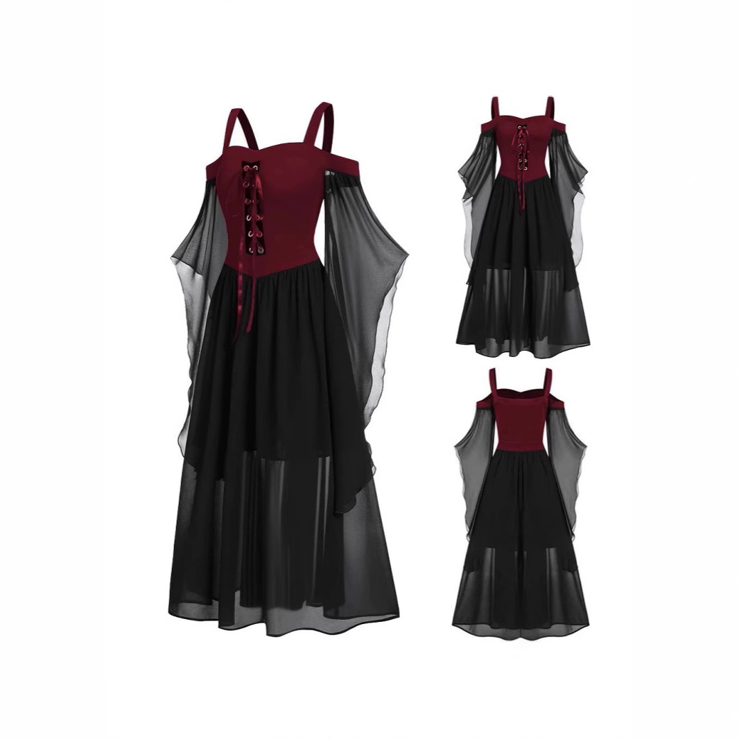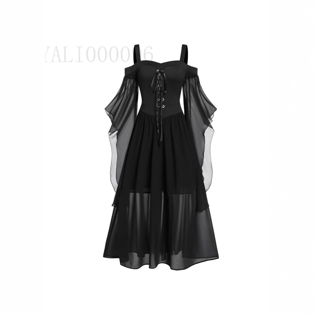 아마존 유럽과 미국의 새로운 할로윈 원피스 원피스 국경 할로윈 스트랩 원피스 원피스 여성