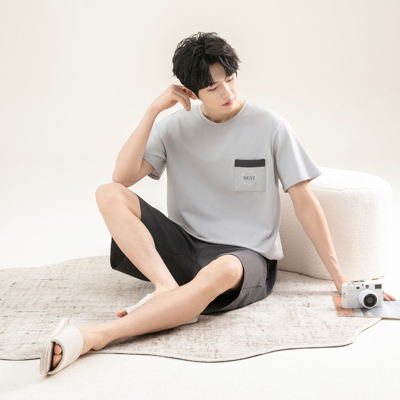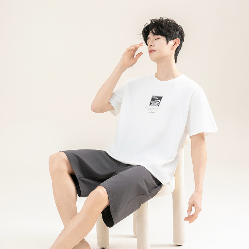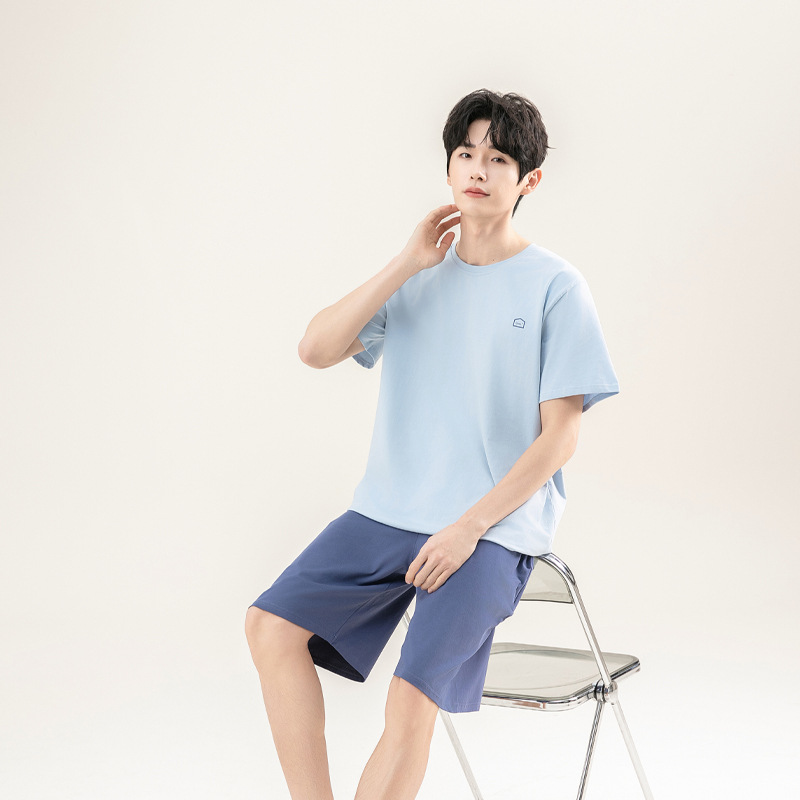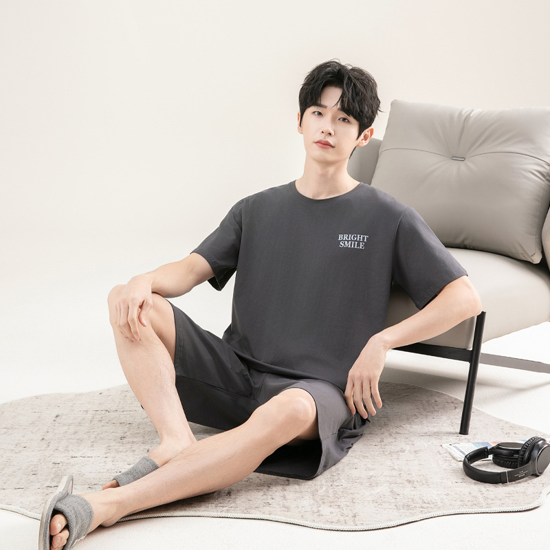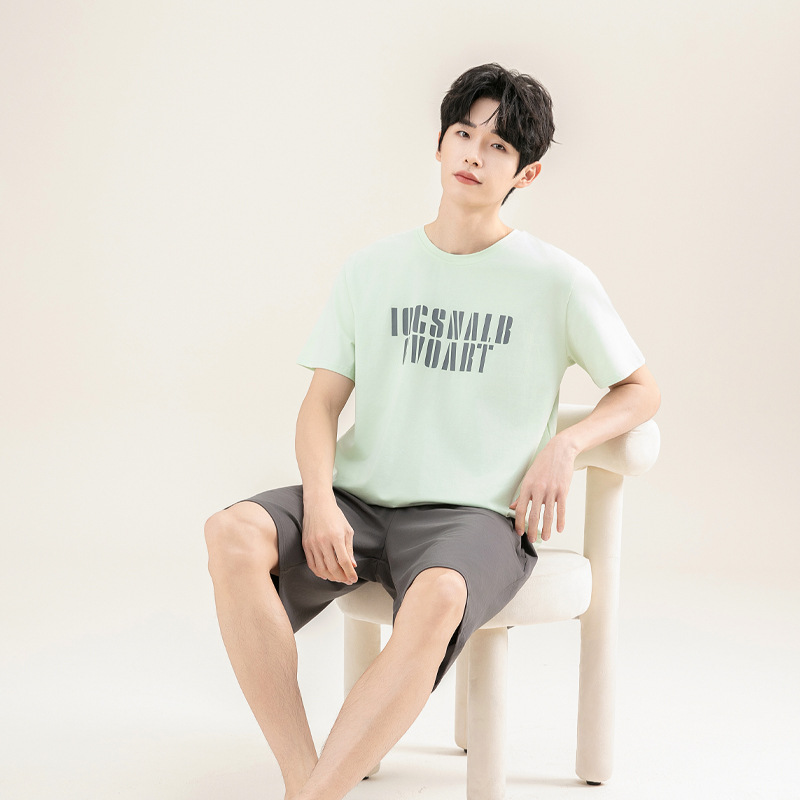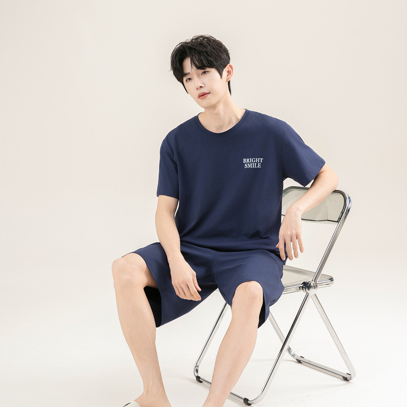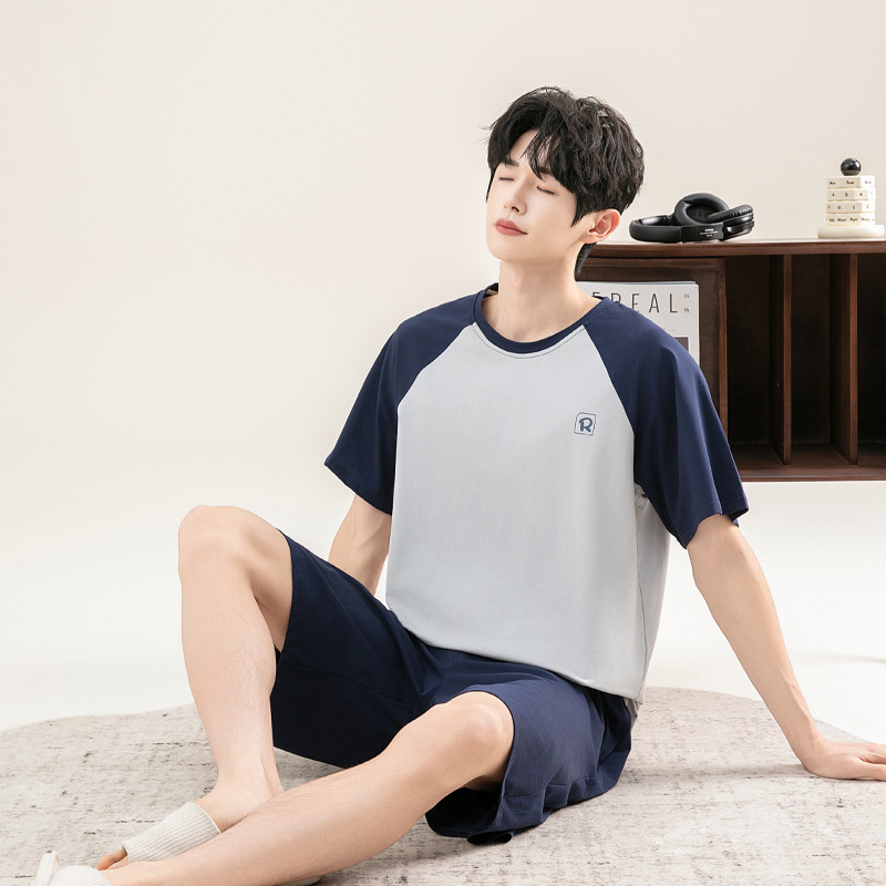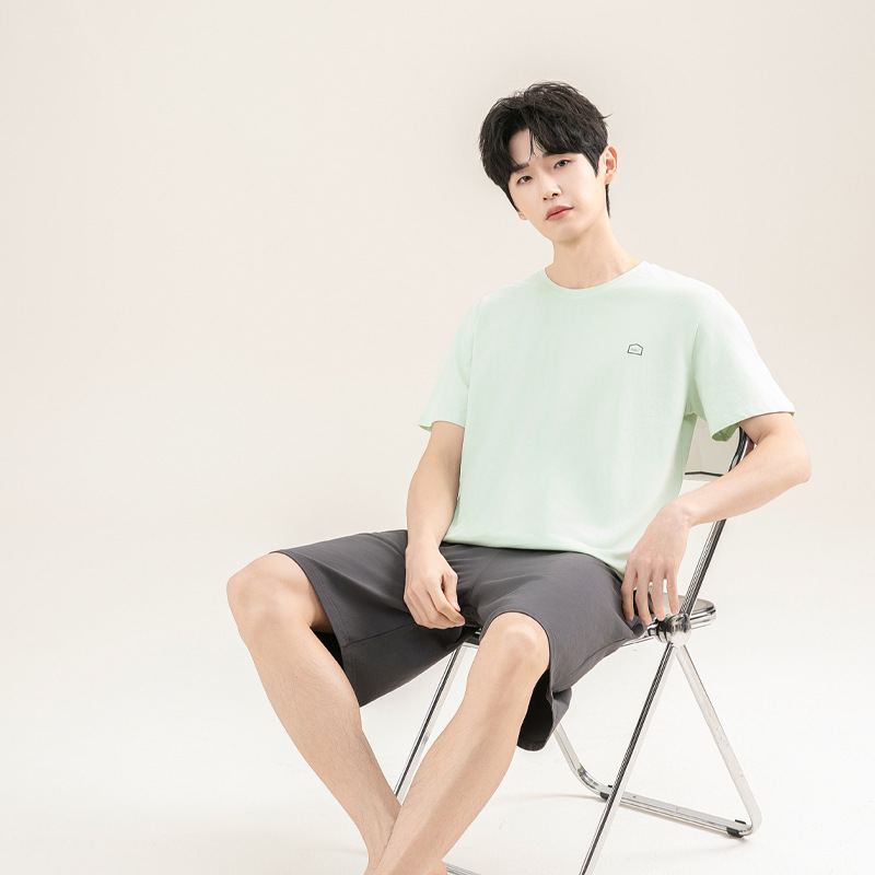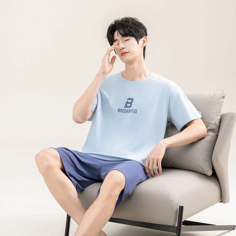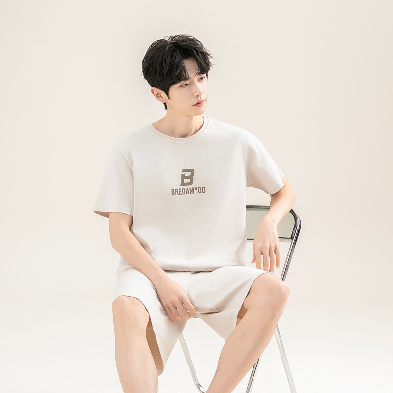 2025 새로운 도착 파자마 남자 여름 순면 반팔 반바지 아웃웨어 캐주얼 스포츠 코튼 랙 홈 의류 세트스토어 가기