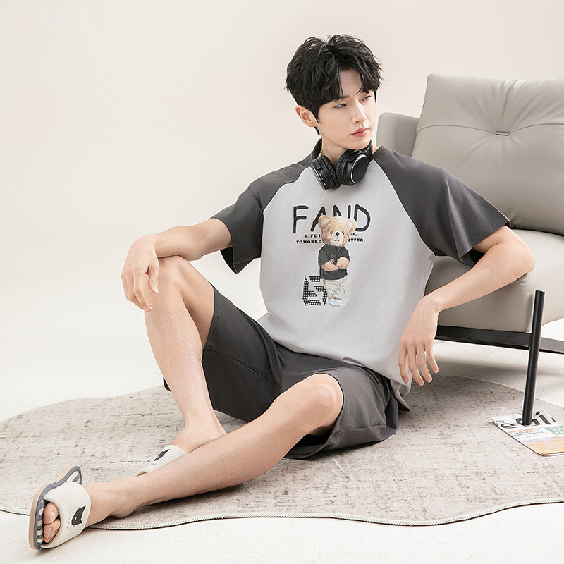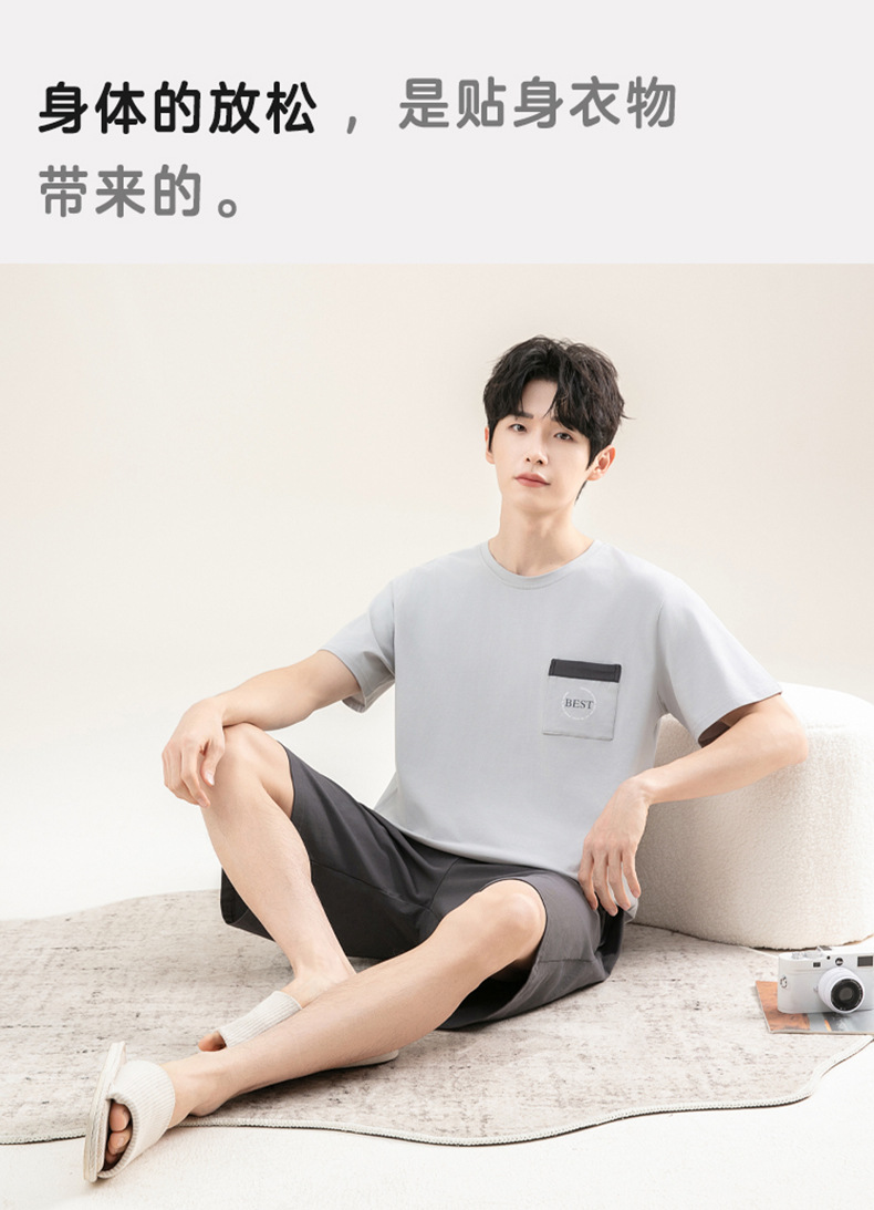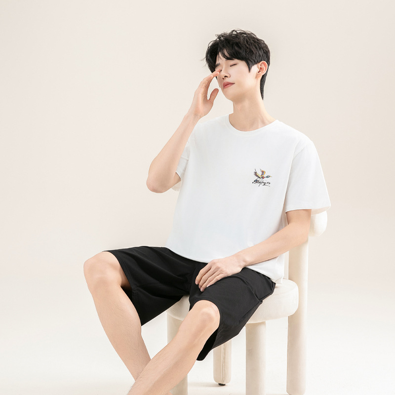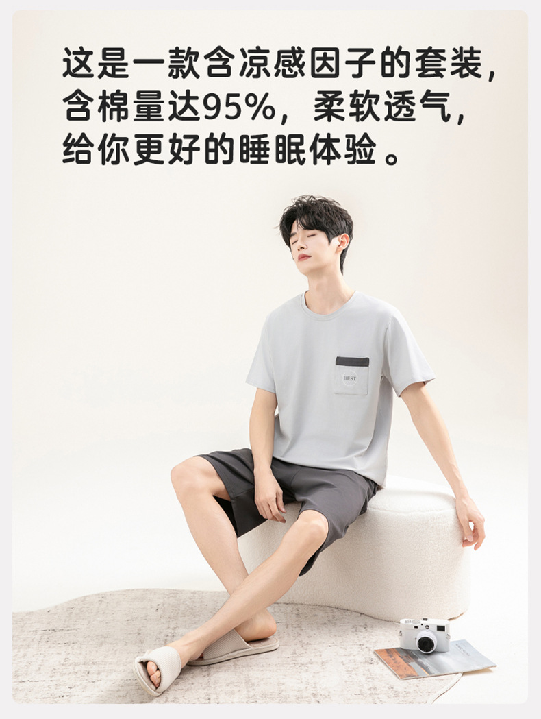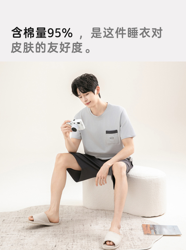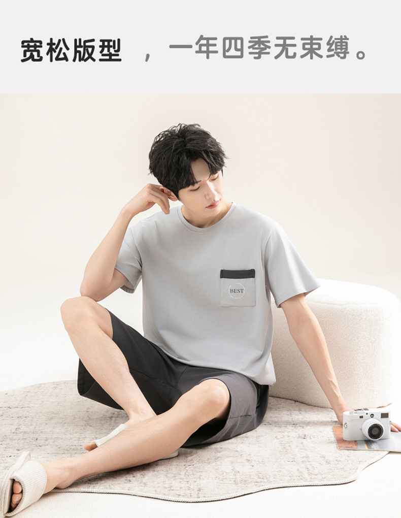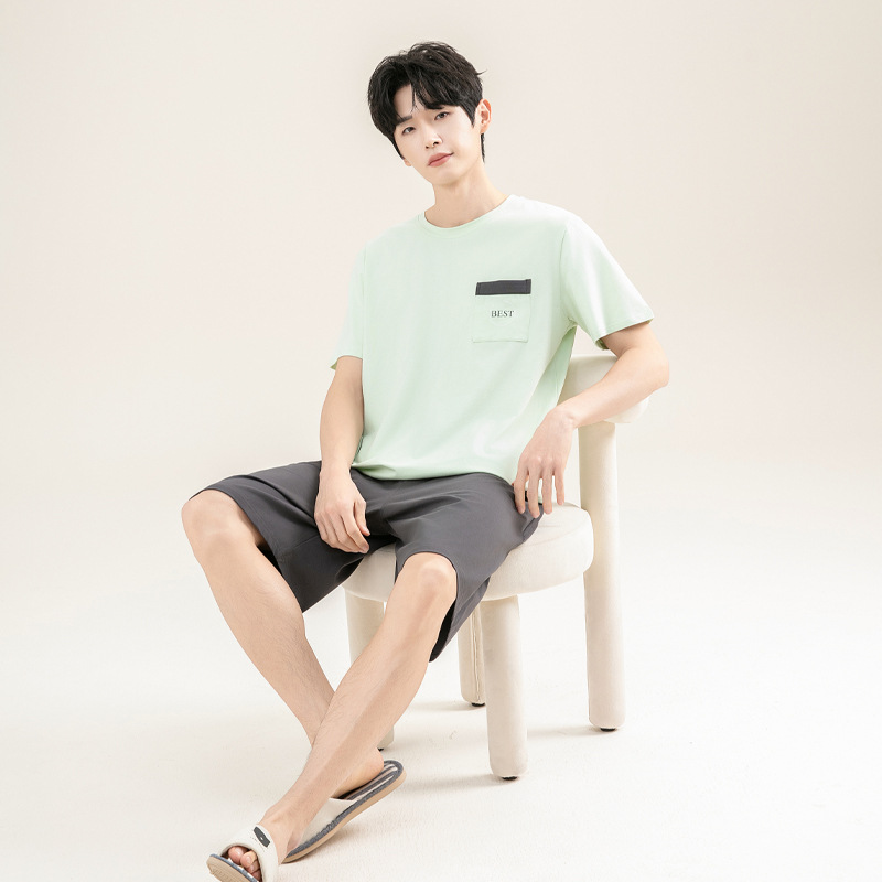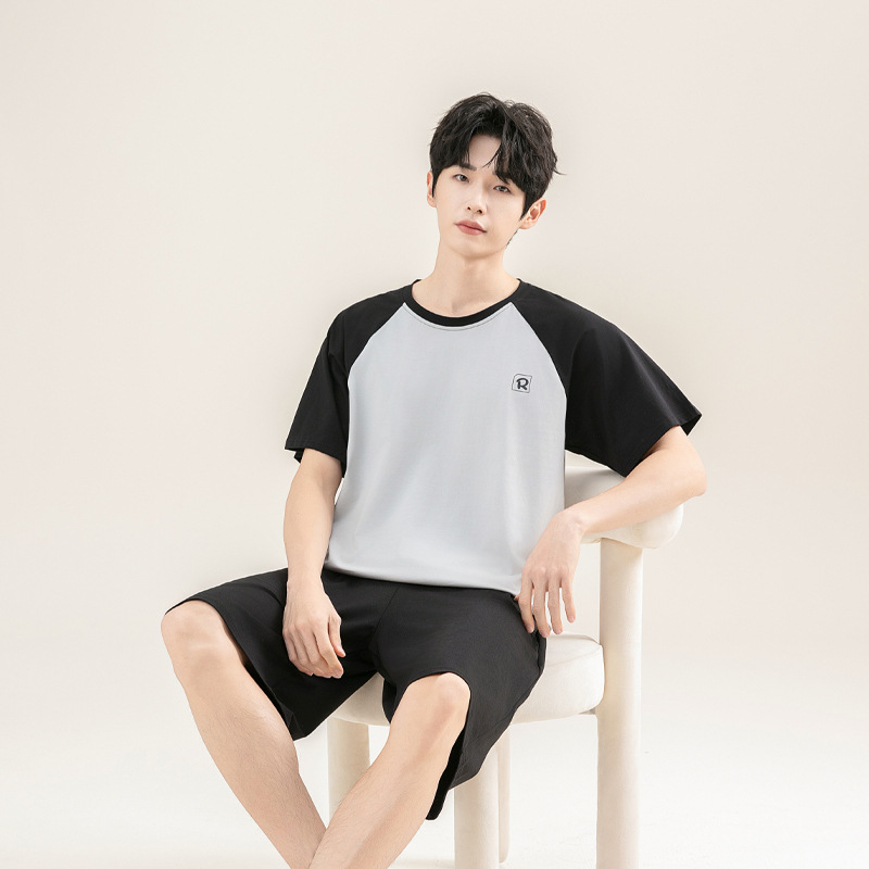 2025 새로운 도착 파자마 남자 여름 순면 반팔 반바지 아웃웨어 캐주얼 스포츠 코튼 랙 홈 의류 세트스토어 가기