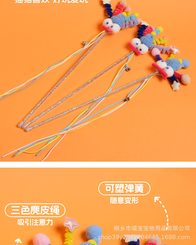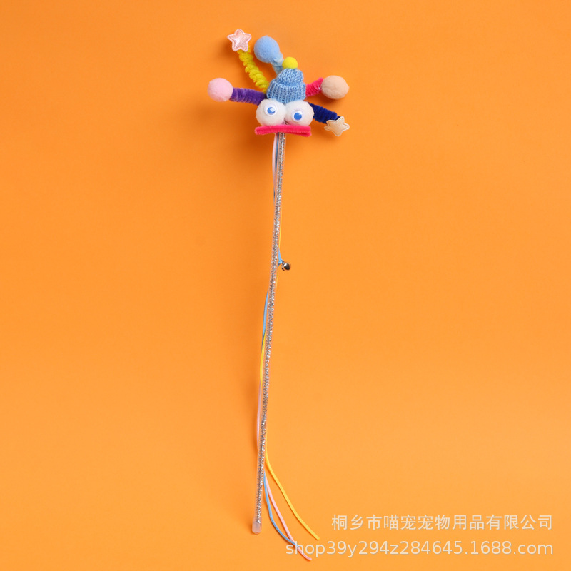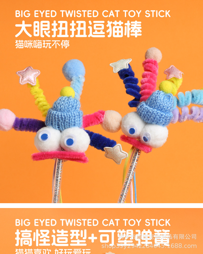 큰 눈 트위스트 고양이 스틱 재미있는 새끼 고양이 장난감 애완 동물 용품 봄 벨 술 봉제 도매 귀여운스토어 가기