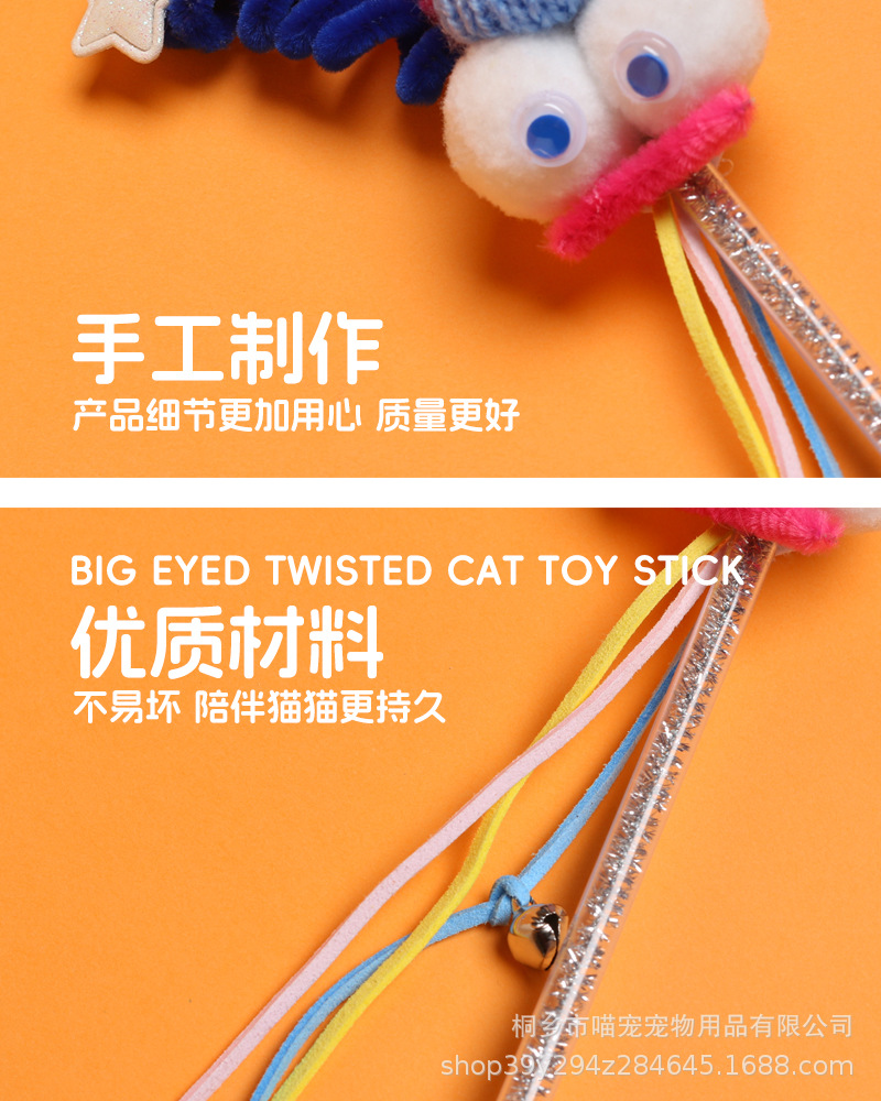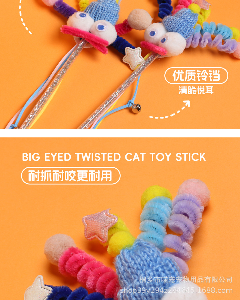 큰 눈 트위스트 고양이 스틱 재미있는 새끼 고양이 장난감 애완 동물 용품 봄 벨 술 봉제 도매 귀여운
