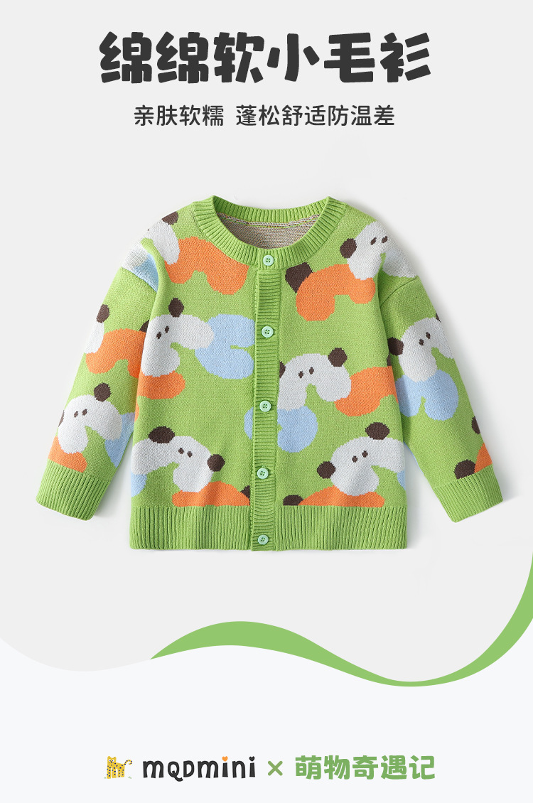 MQDmini 봄 신작 아동용 스웨터 소년 소녀용 캐주얼 라운드 넥 니트 가디건 얇은 스웨터스토어 가기