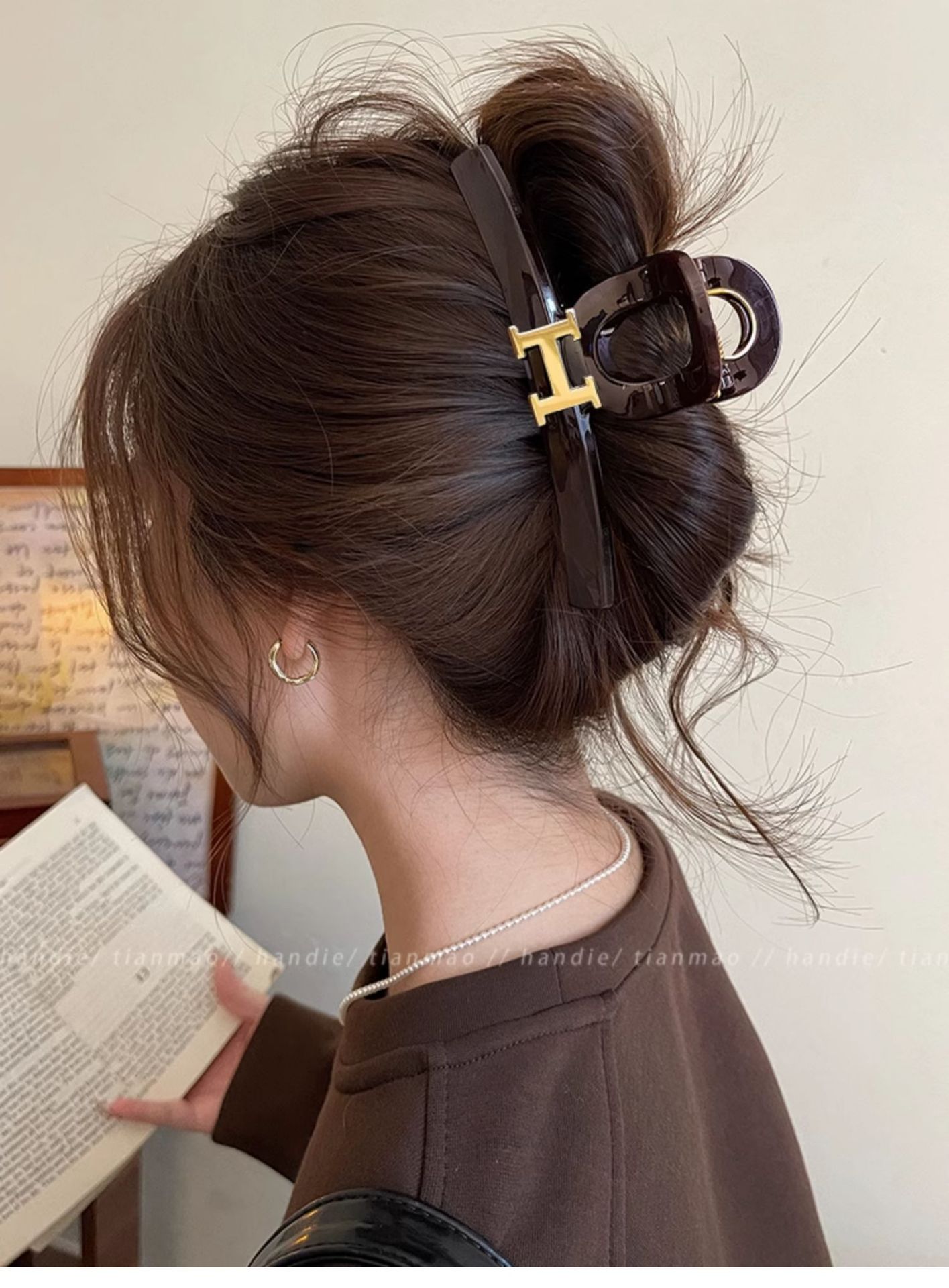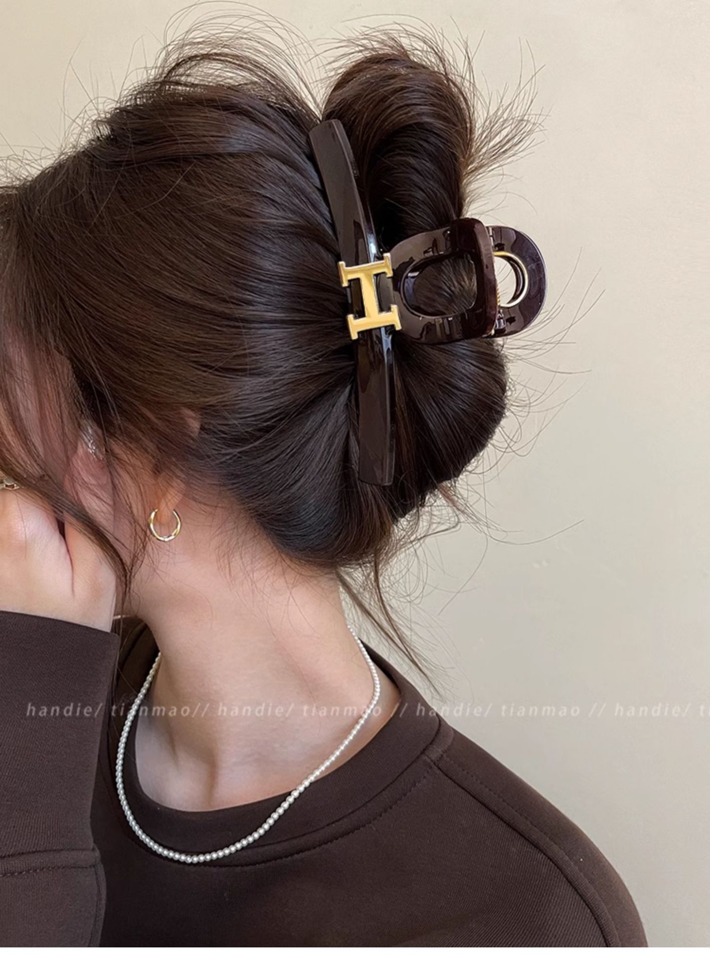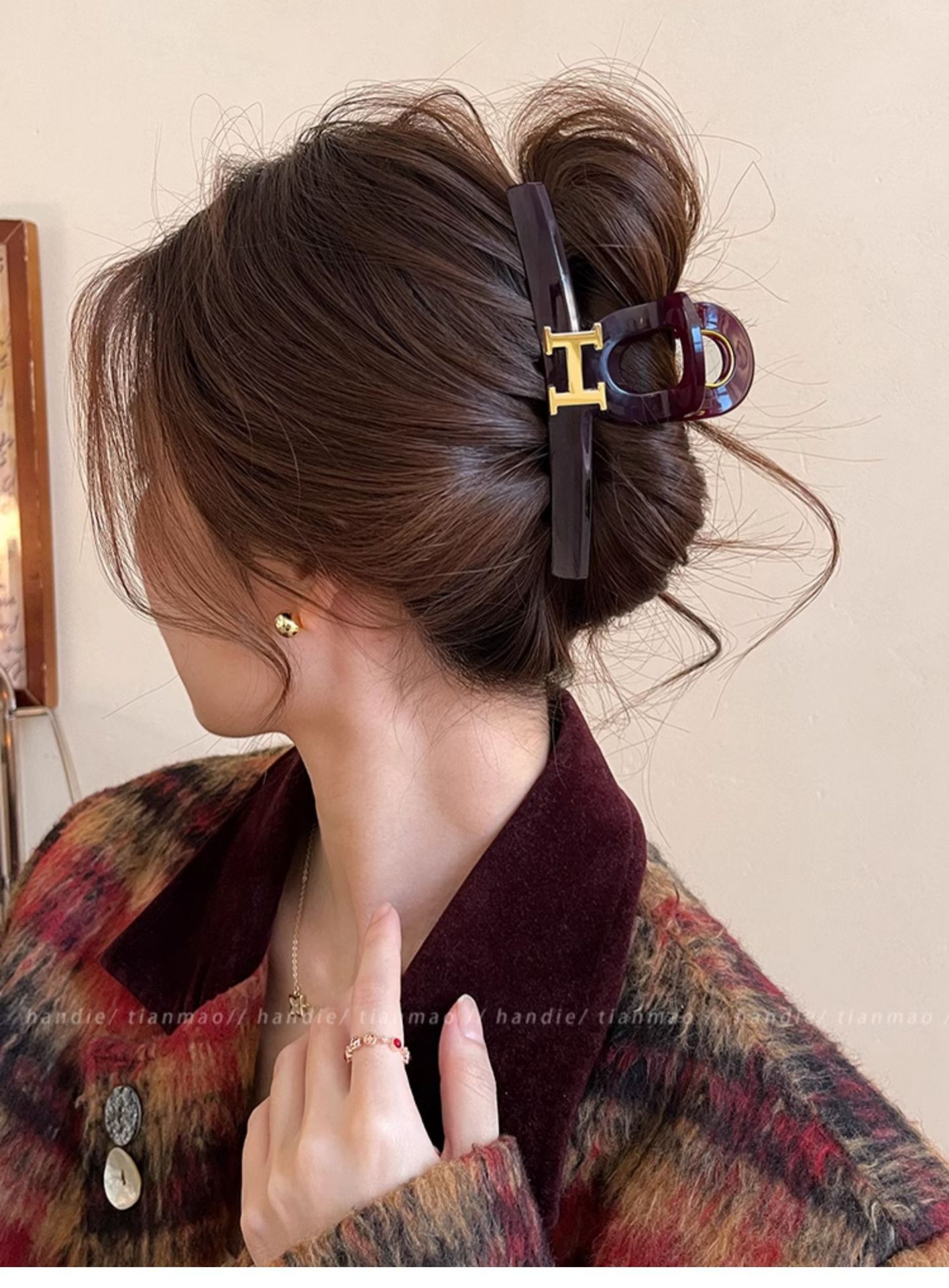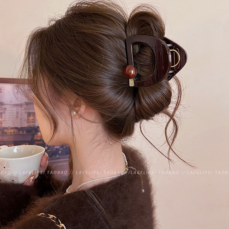 초콜릿 레드 다크 브라운 대형 그랩 클립 여성용 하이 엔드 우아한 하이 엔드 센스 헤어 볼륨 멀티 플레이트 상어 클립 헤어핀 헤어 액세서리스토어 가기