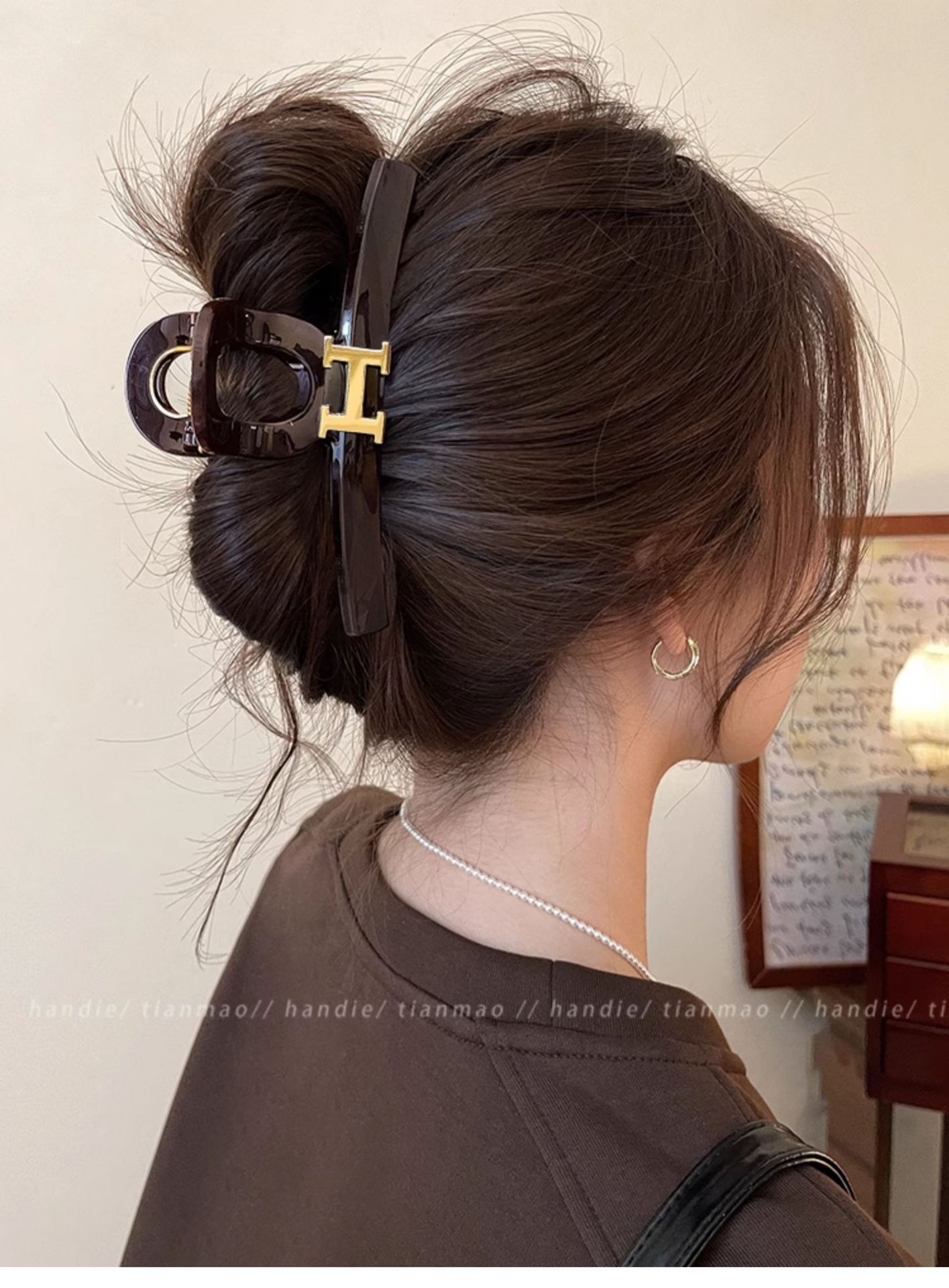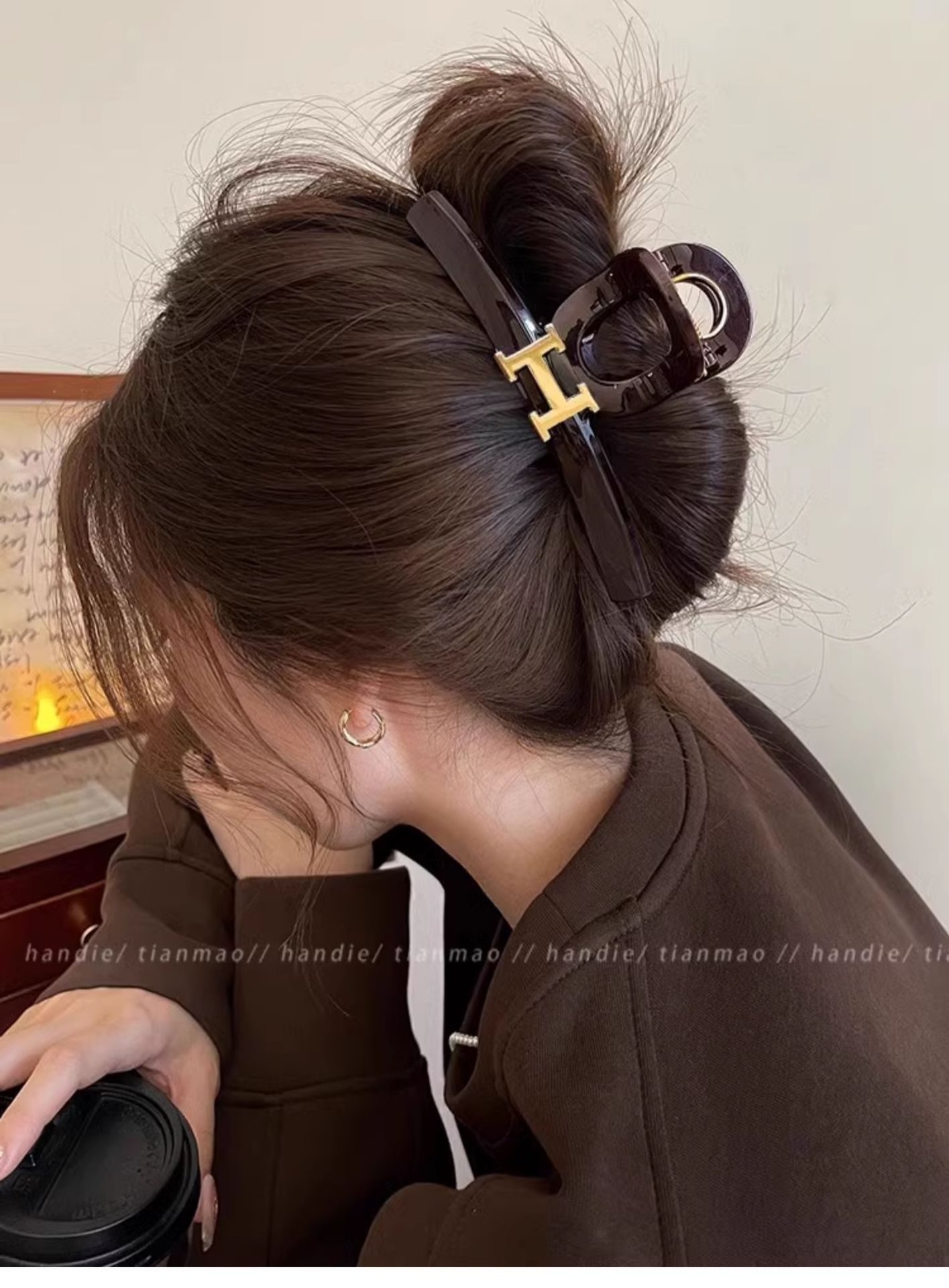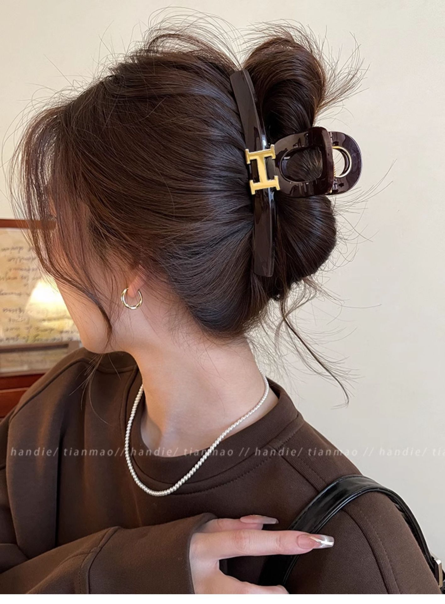 초콜릿 레드 다크 브라운 대형 그랩 클립 여성용 하이 엔드 우아한 하이 엔드 센스 헤어 볼륨 멀티 플레이트 상어 클립 헤어핀 헤어 액세서리스토어 가기