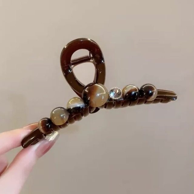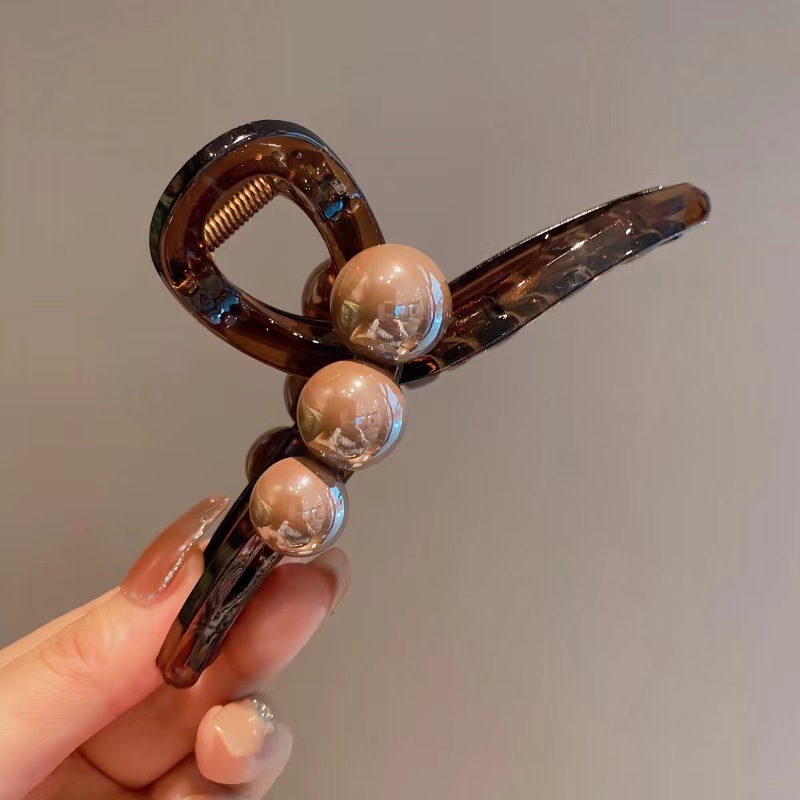 • 【반원 진주】 초콜릿 브라운 약 6cm 집게핀 - 일반 스프링