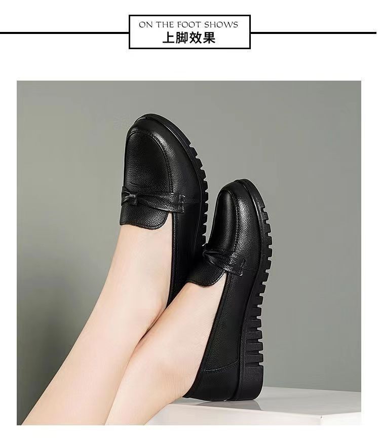 어머니의 신발 부드러운 가죽 부드러운 단독 편안한 중년 및 노인 여성 신발 봄과 가을 플랫 착용 방지 신발 방수 할머니의 가죽 신발스토어 가기