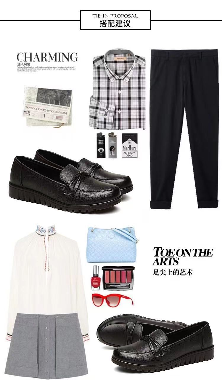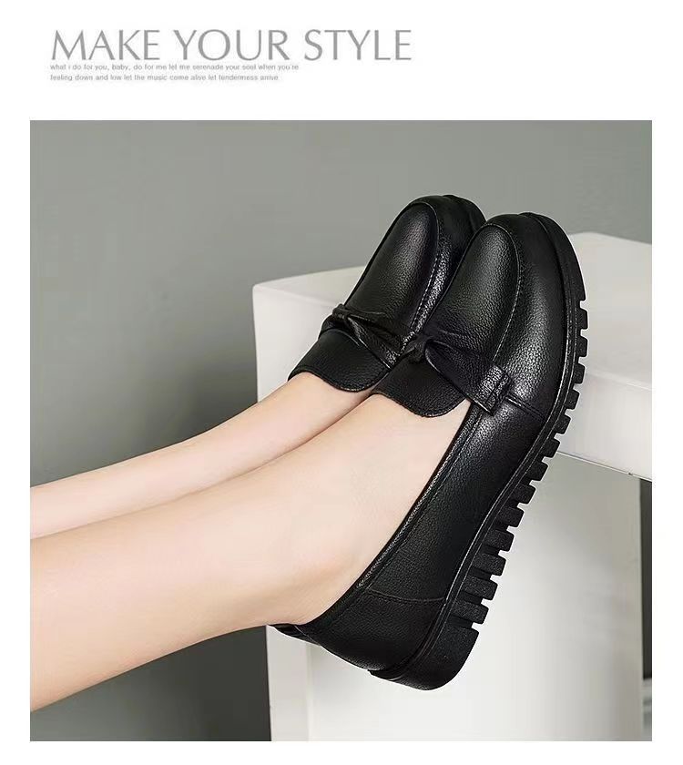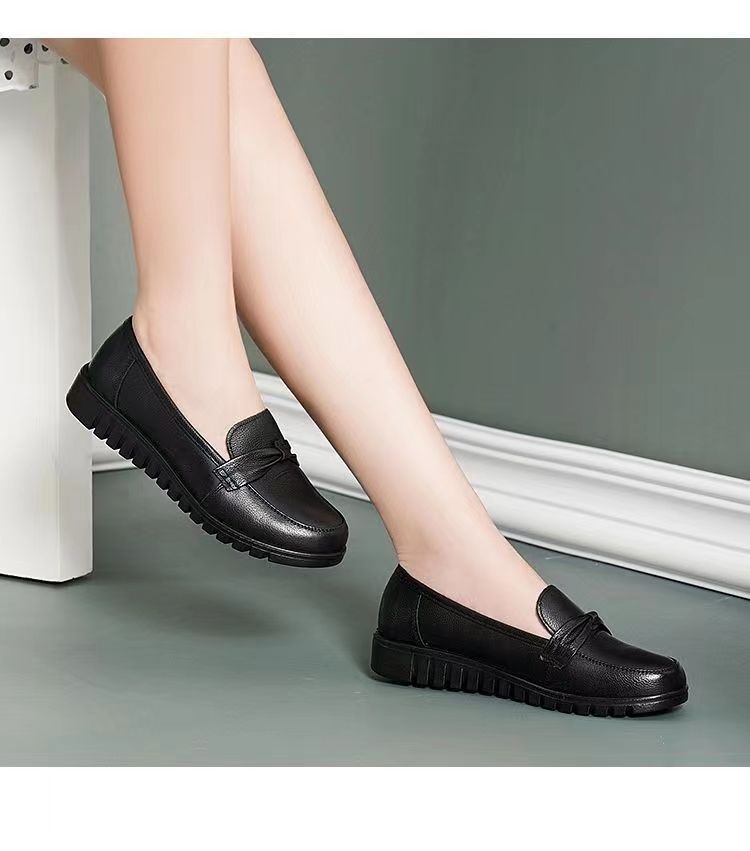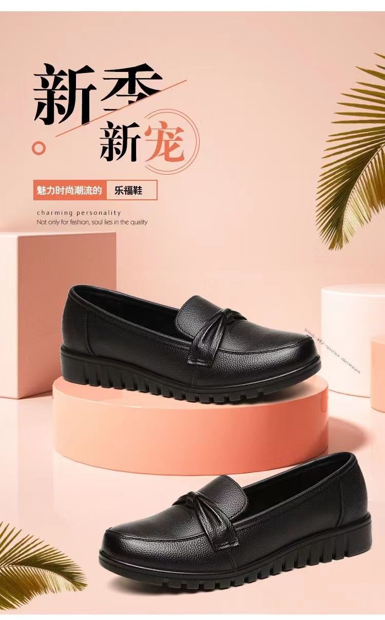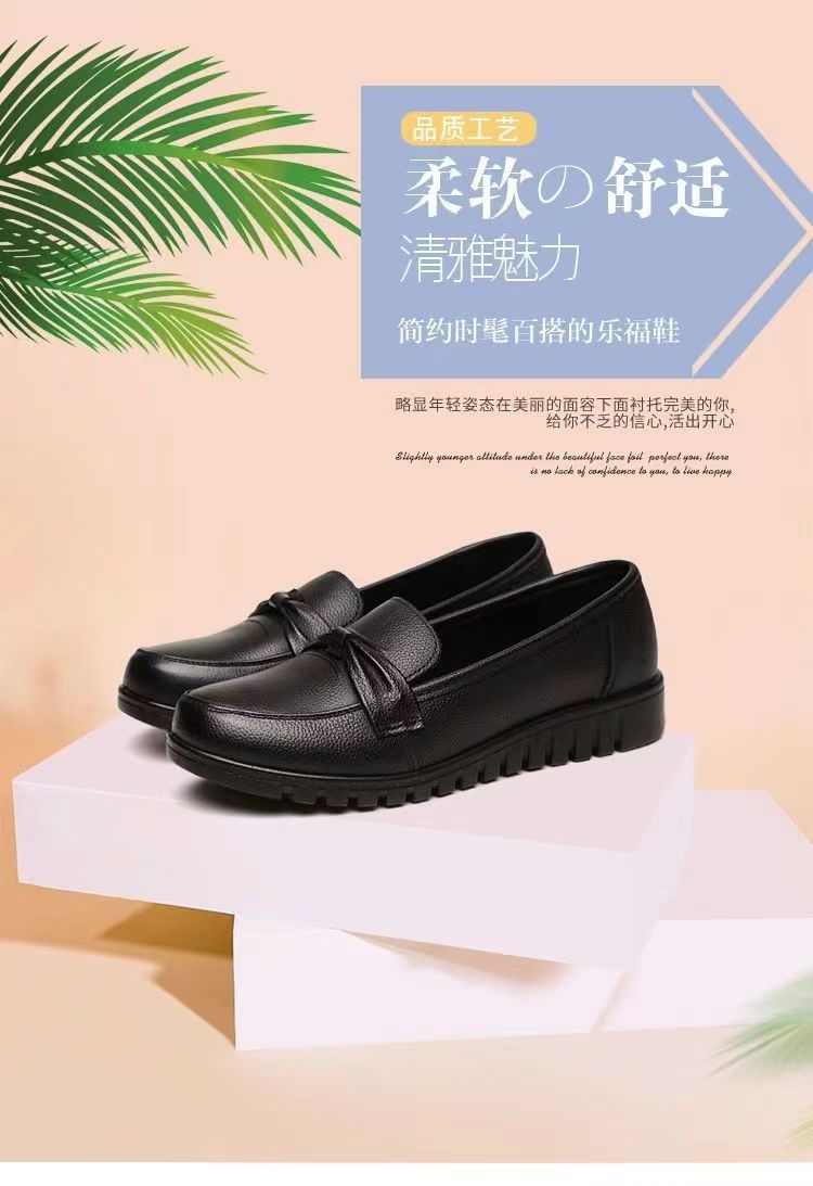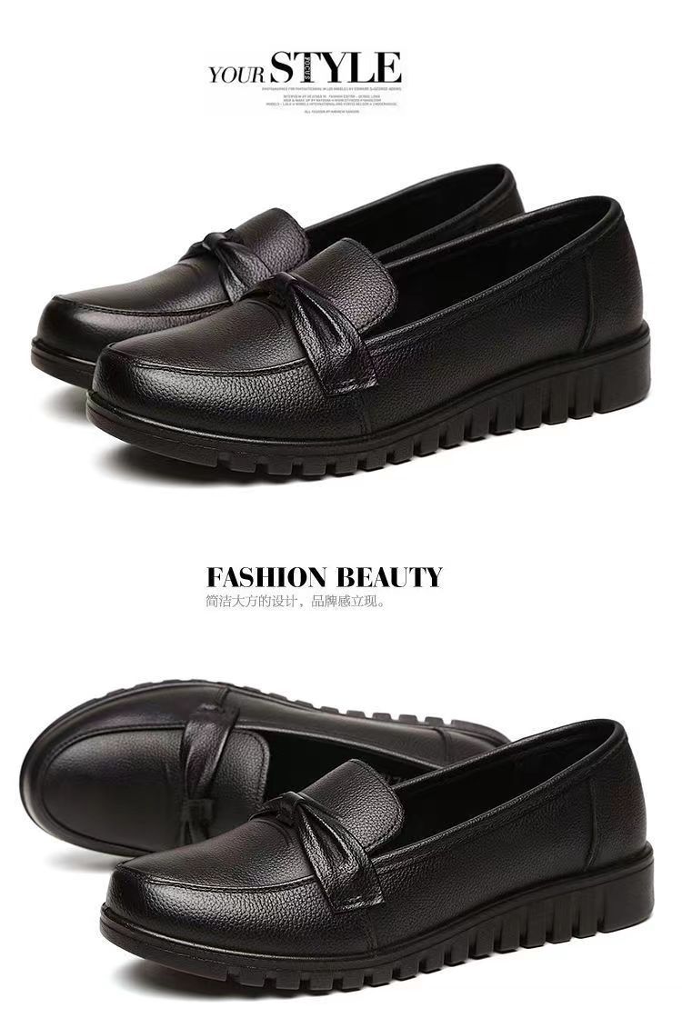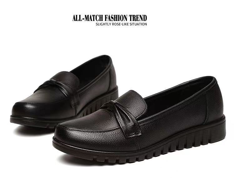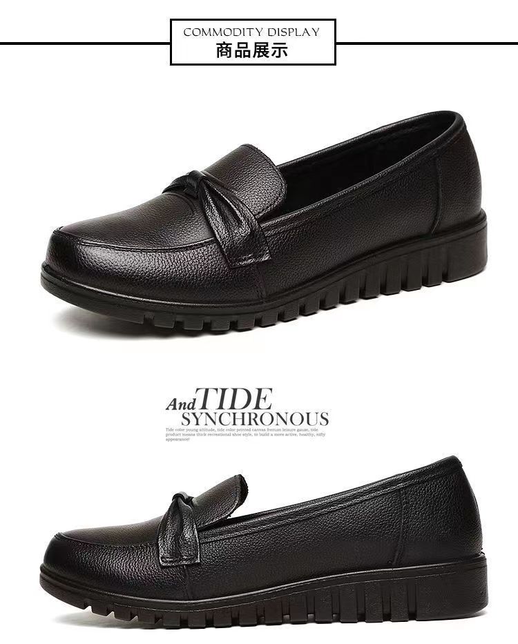 어머니의 신발 부드러운 가죽 부드러운 단독 편안한 중년 및 노인 여성 신발 봄과 가을 플랫 착용 방지 신발 방수 할머니의 가죽 신발