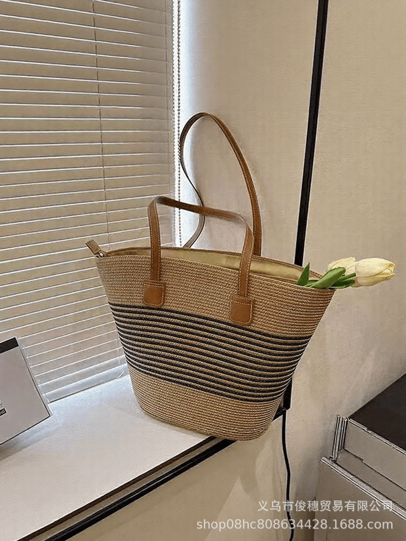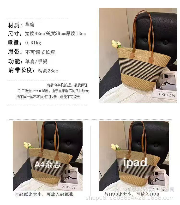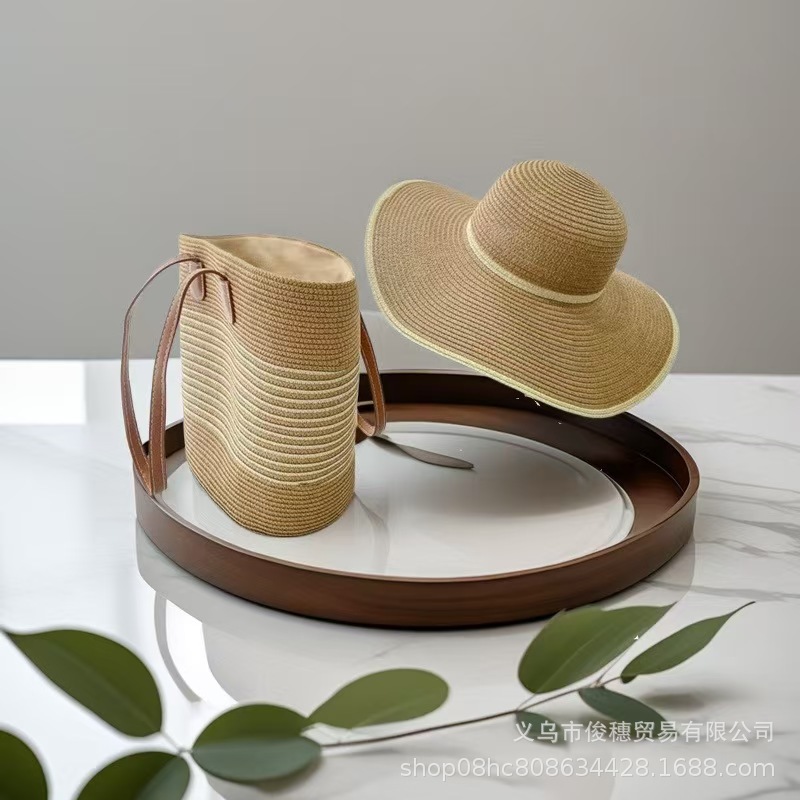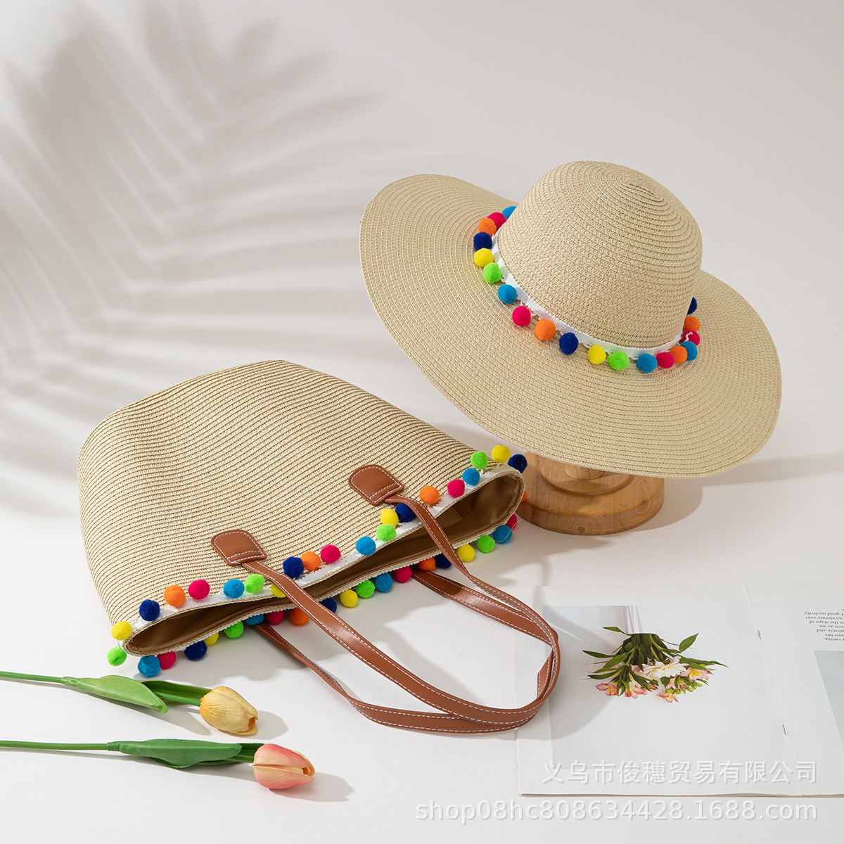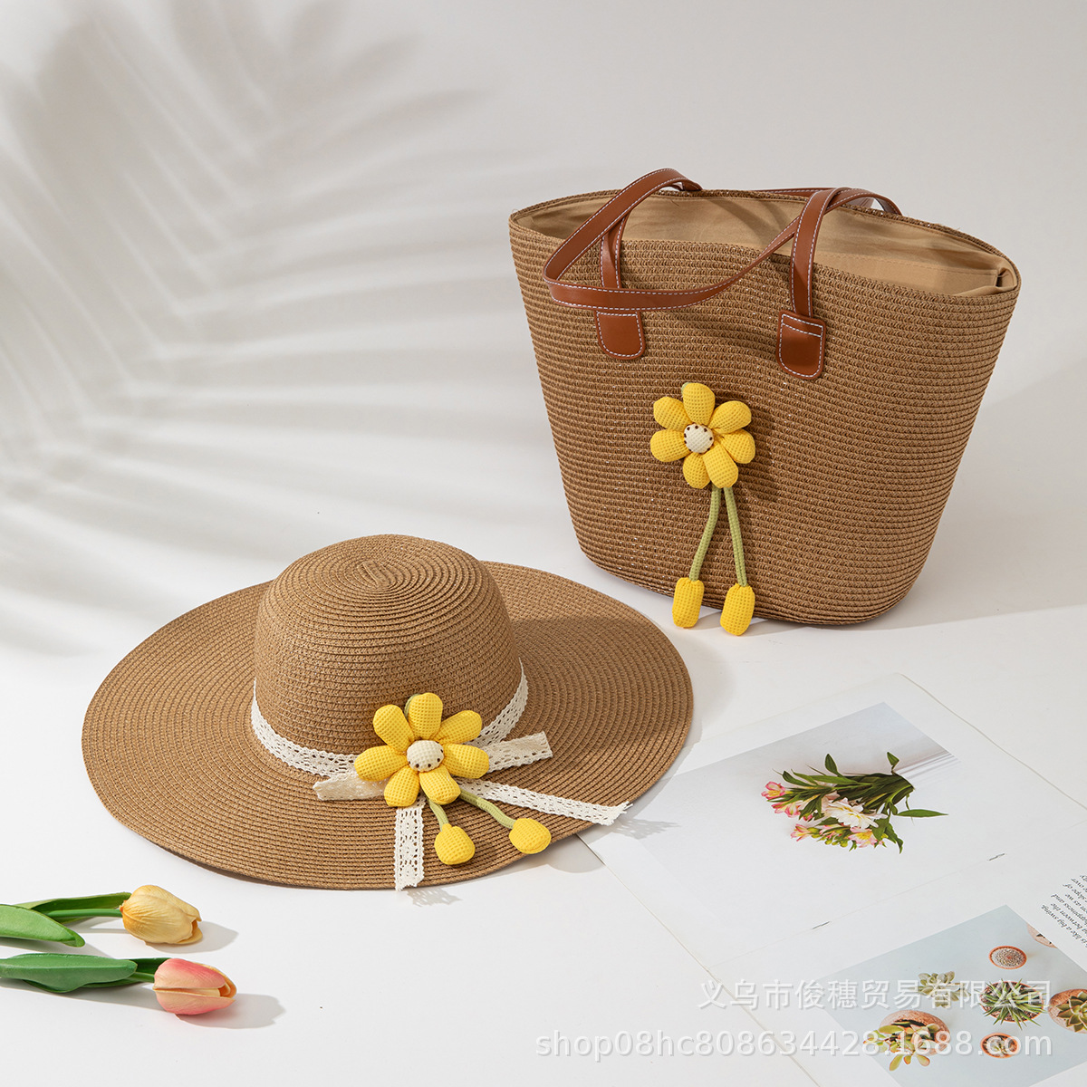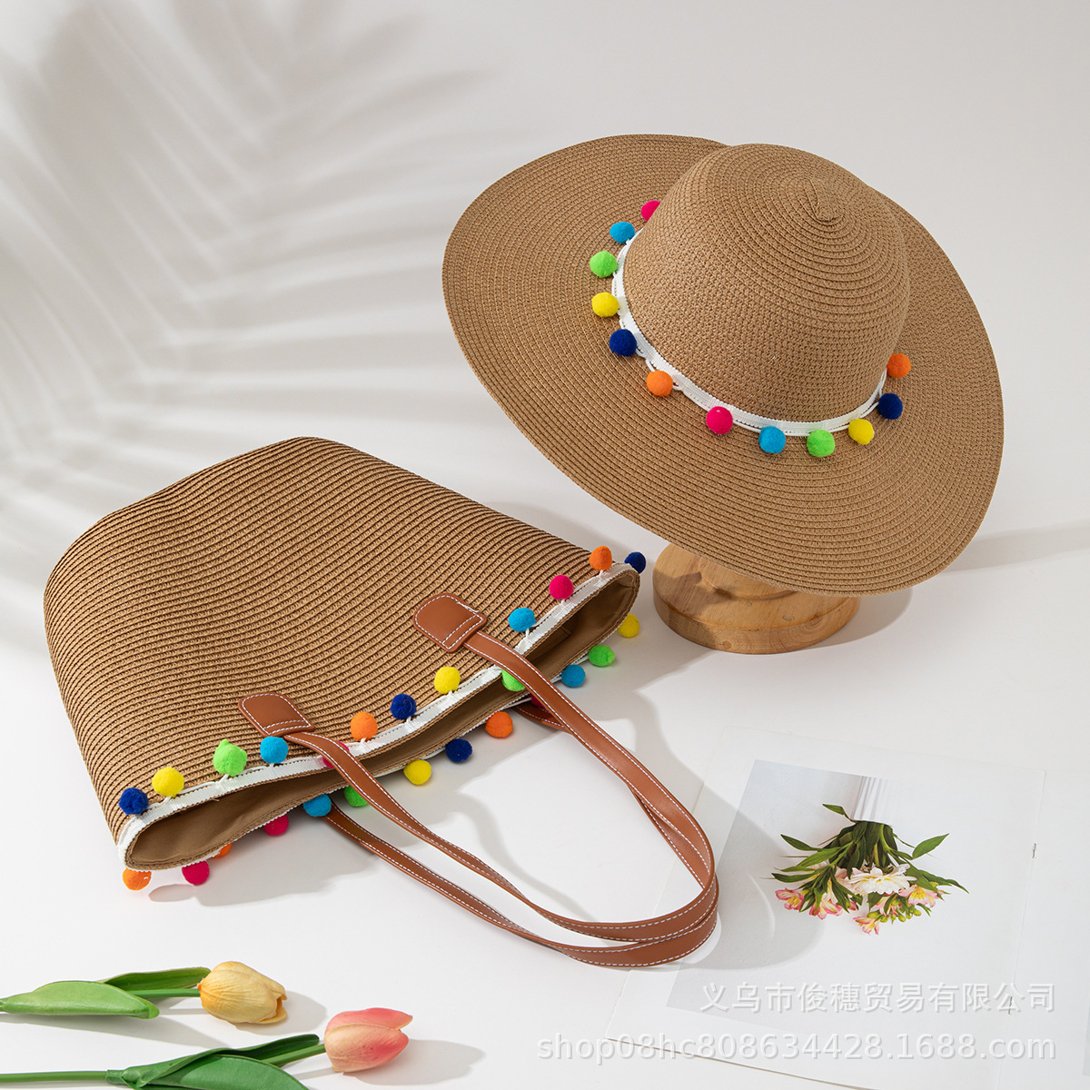 국경 간 밀짚 모자 가방 세트 해변 휴가 패션 올 매치 태양 보호 및 양산 여행 대용량 토트 백
