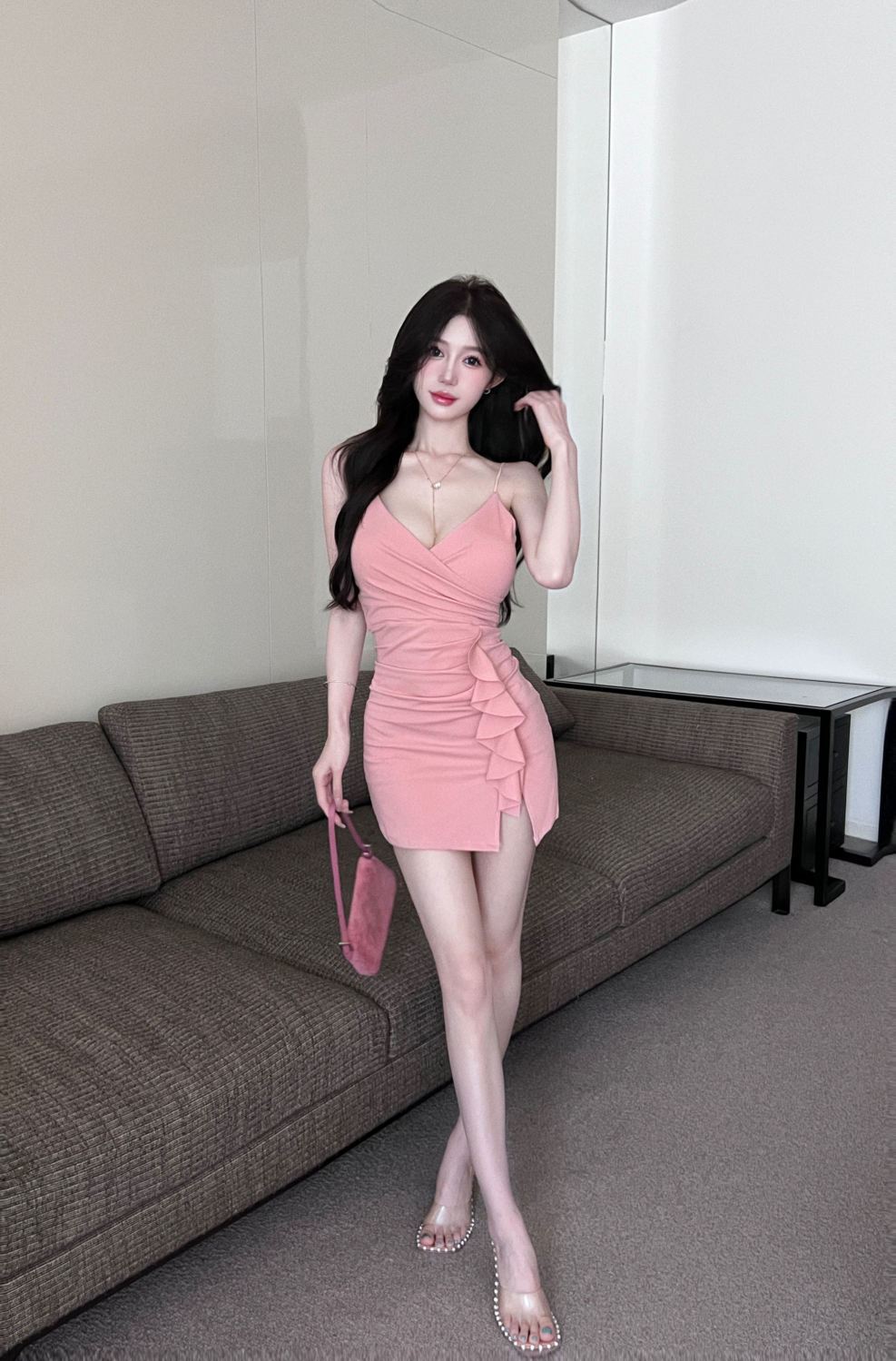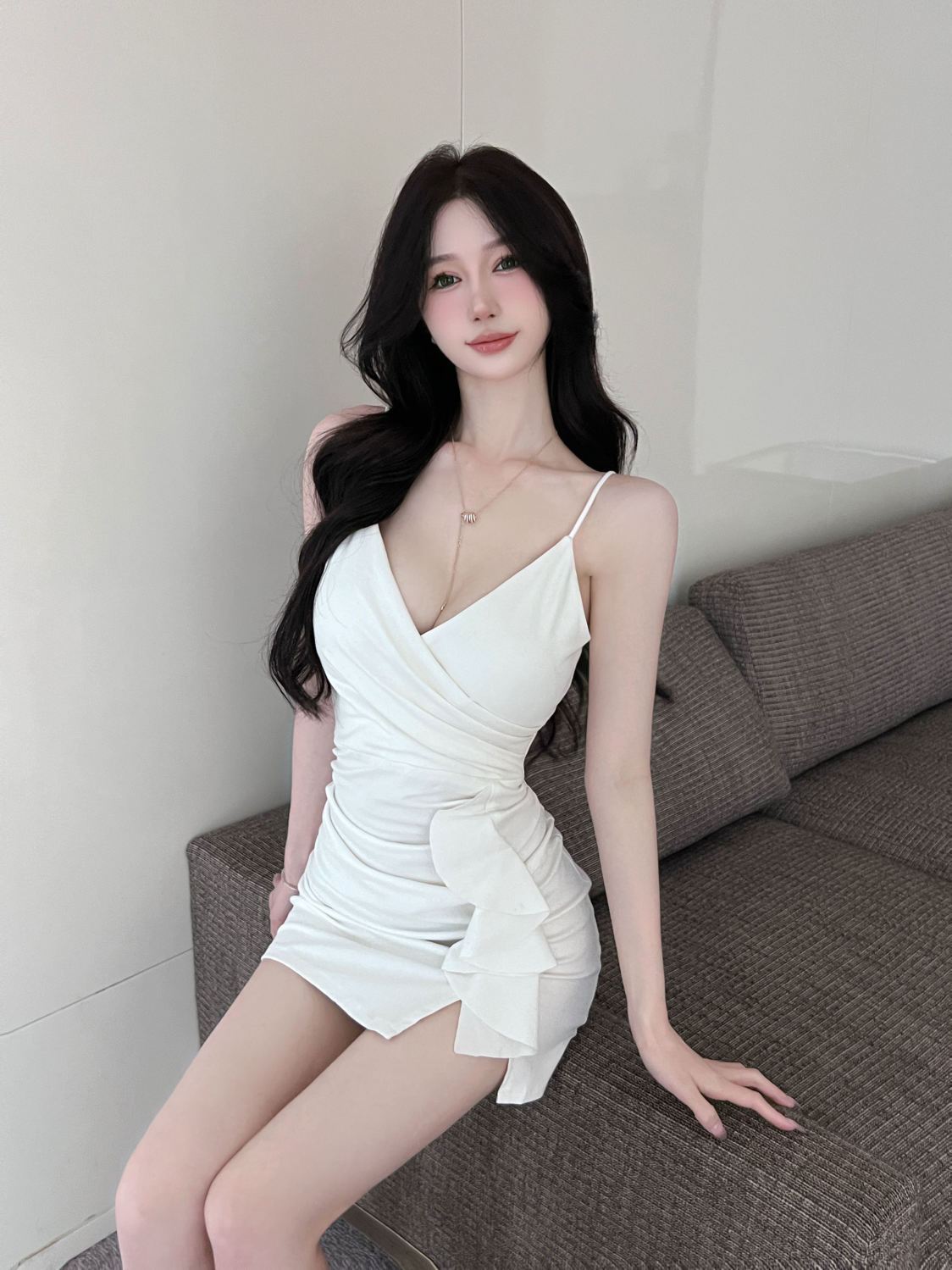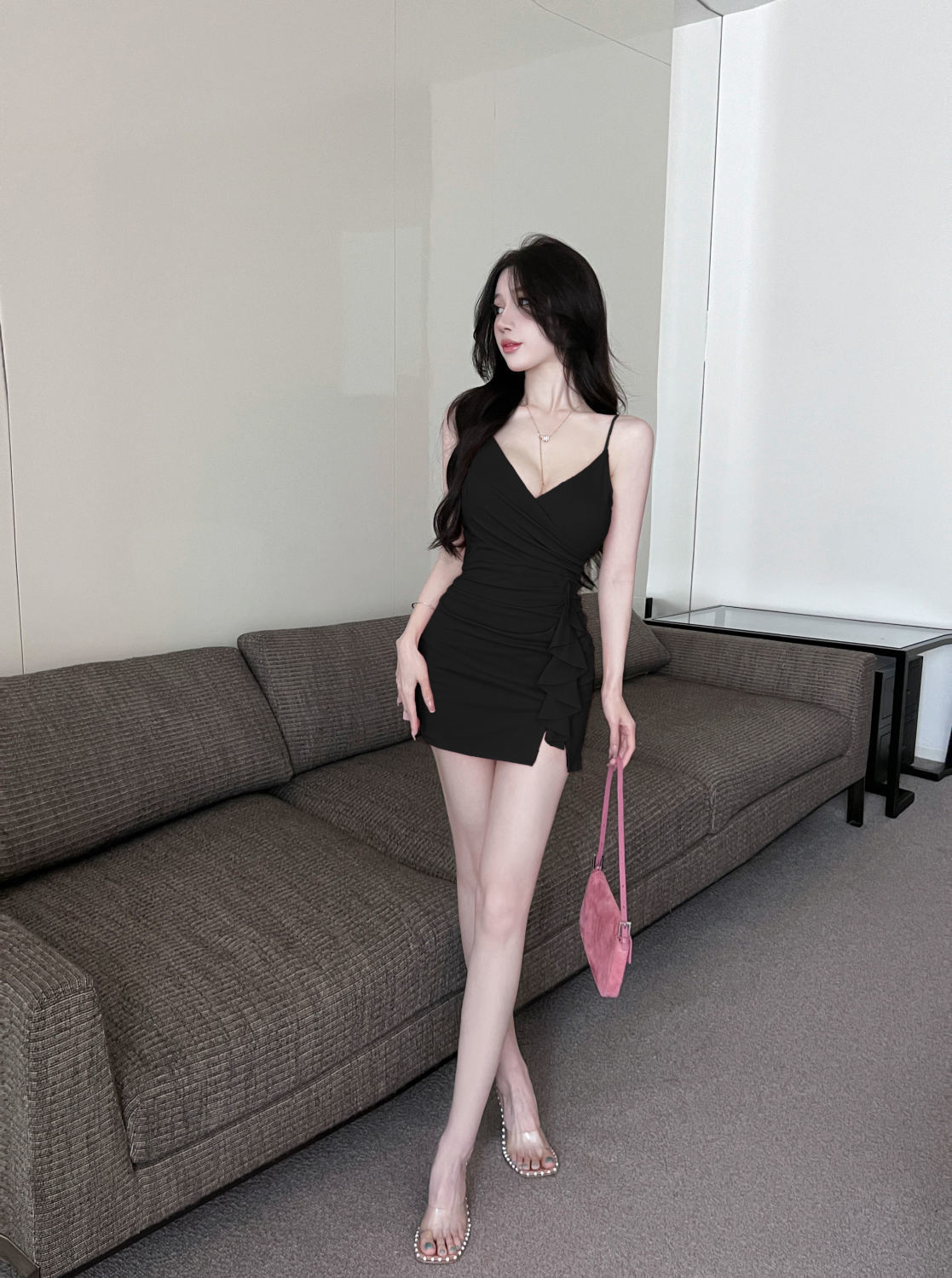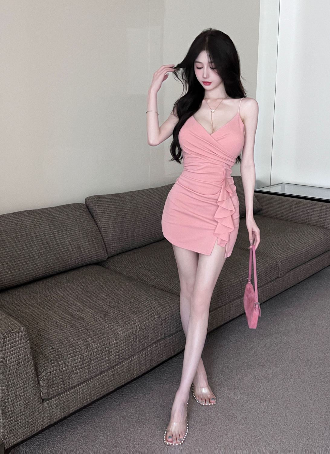 섹시한 사교계 V 넥 슬링 원피스 여름 새로운 스타일 올 매치 러플 타이트 힙 스커트스토어 가기