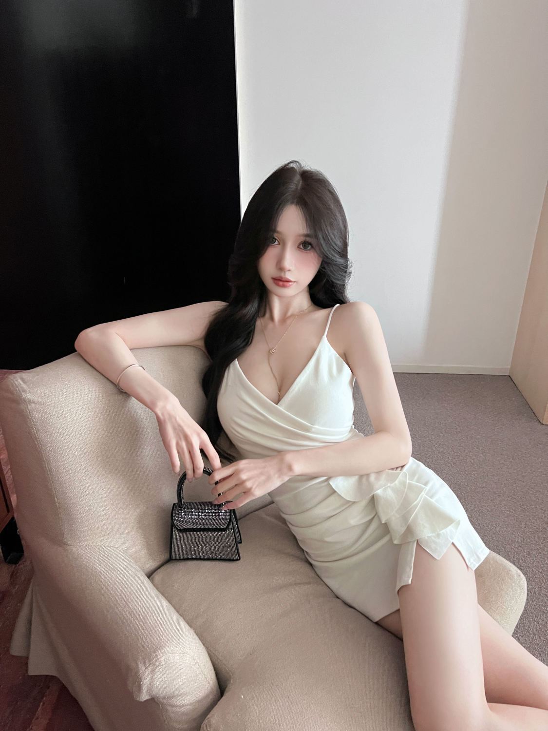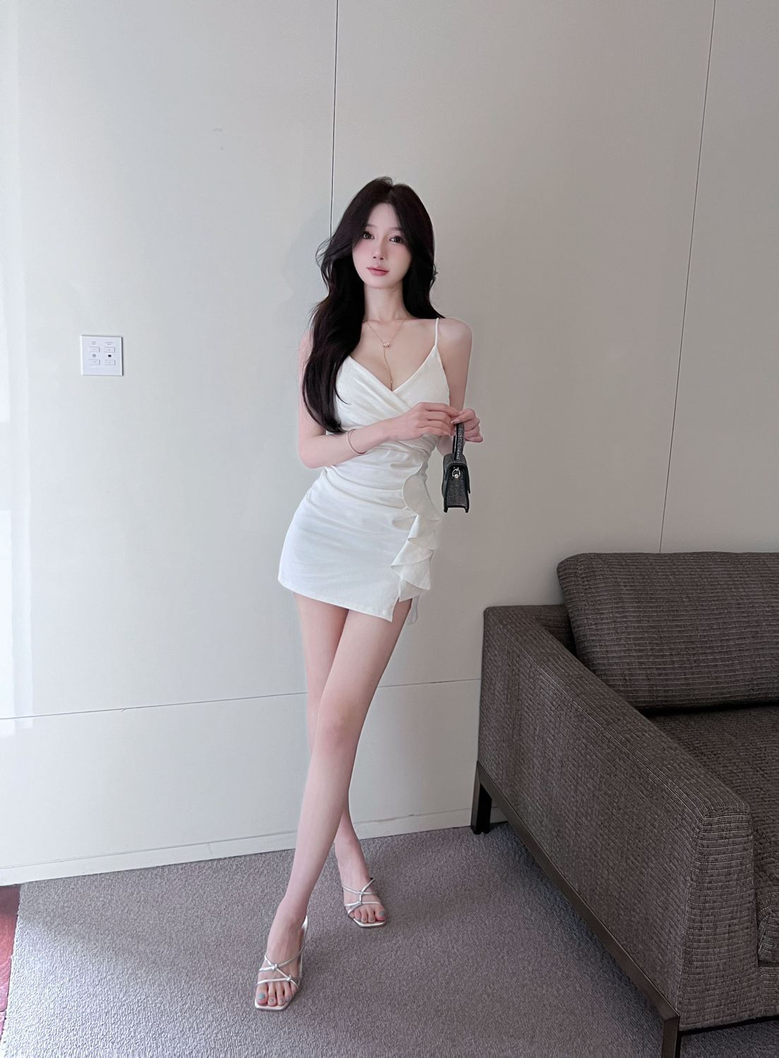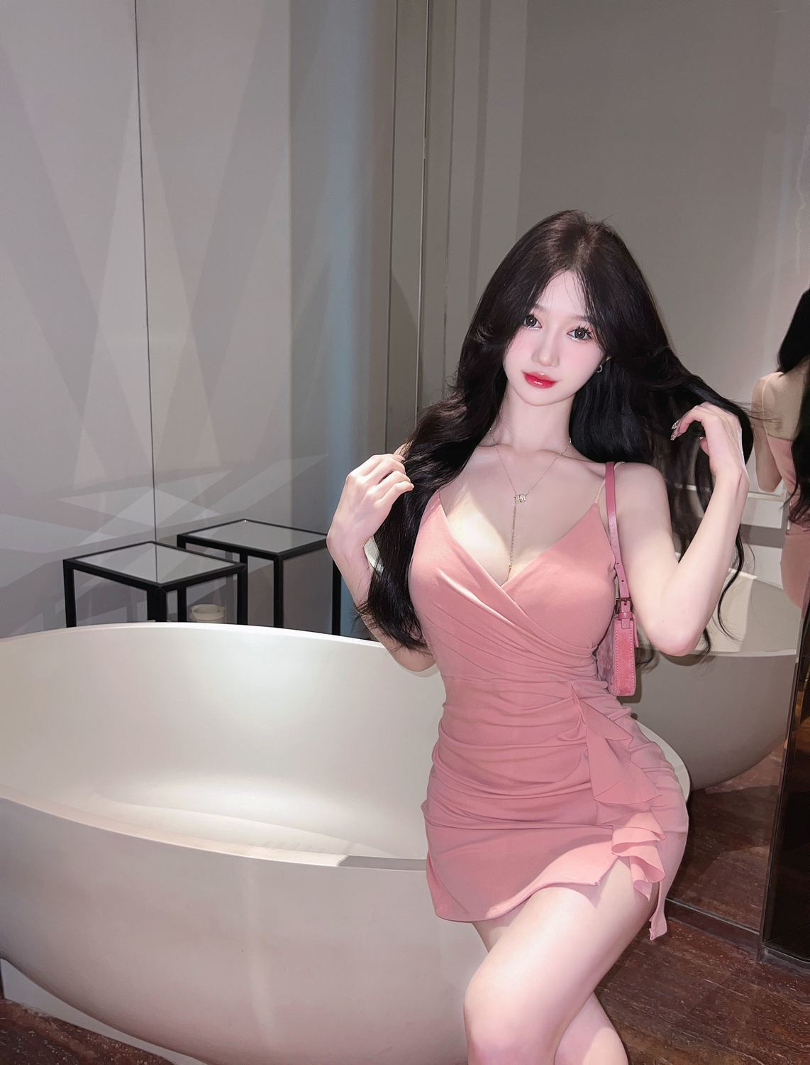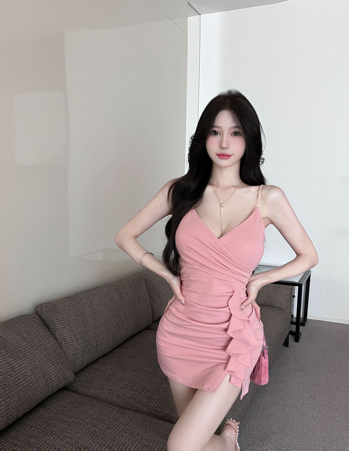 섹시한 사교계 V 넥 슬링 원피스 여름 새로운 스타일 올 매치 러플 타이트 힙 스커트스토어 가기