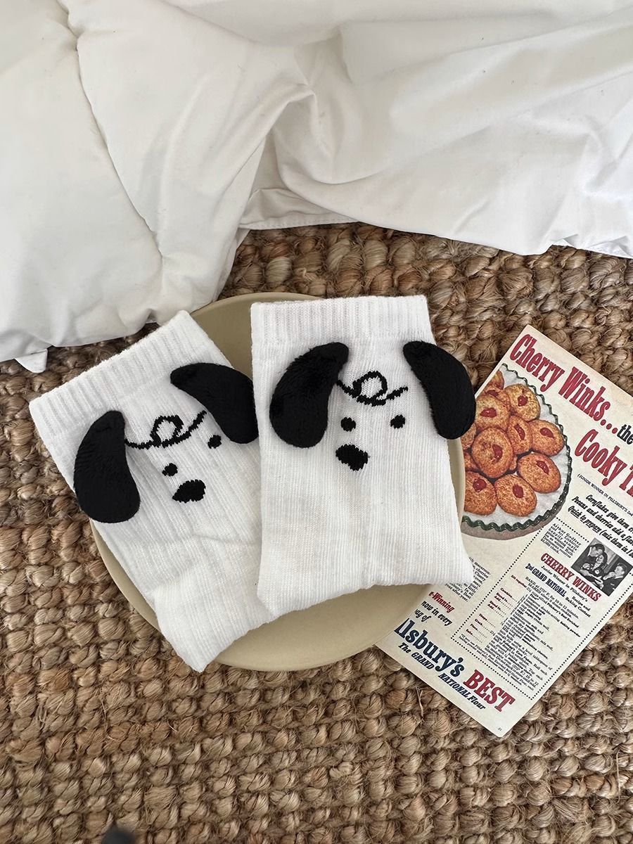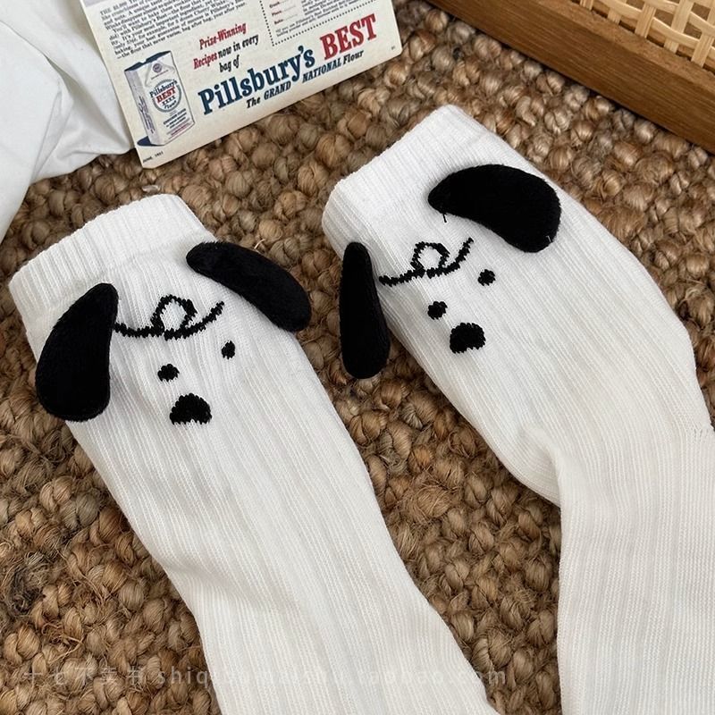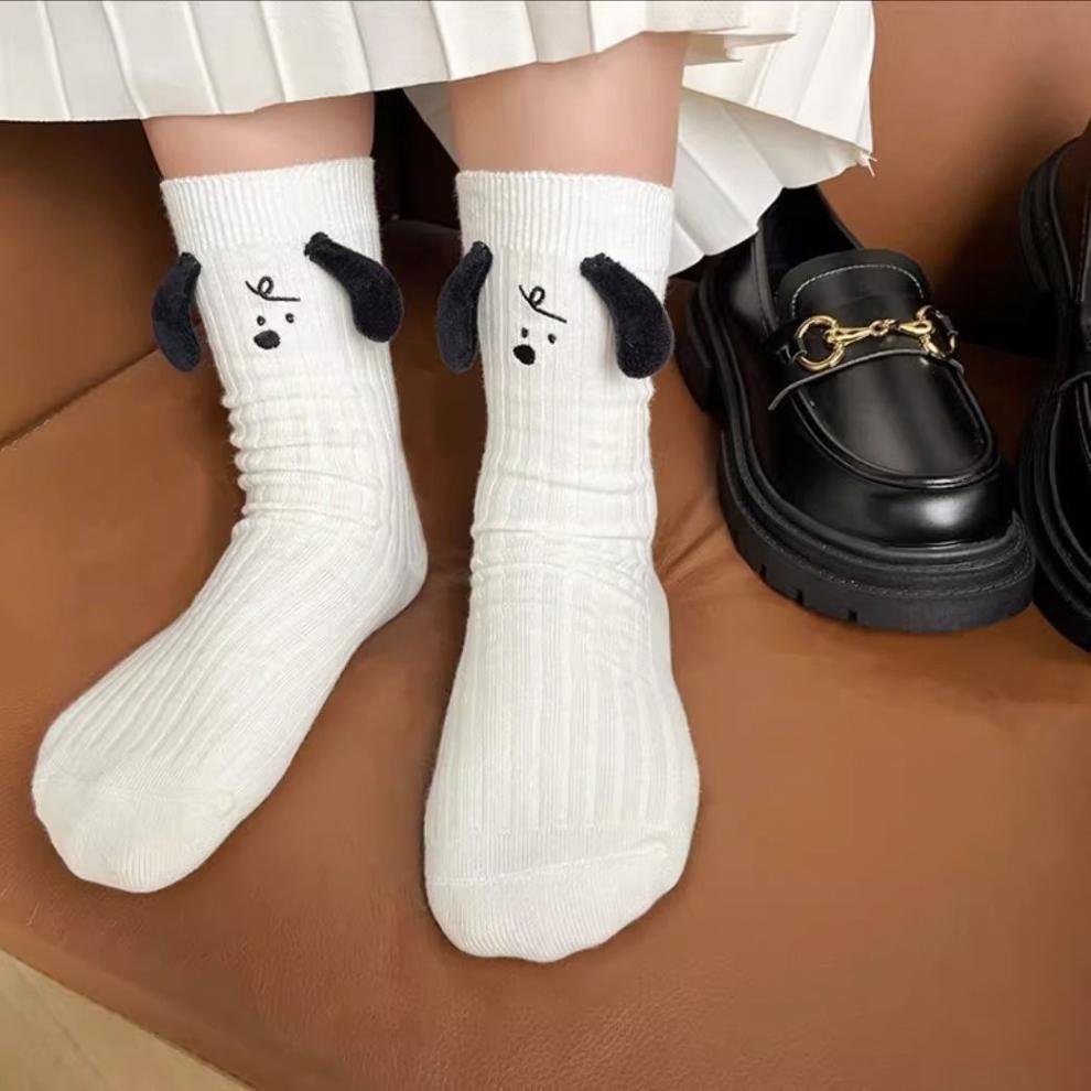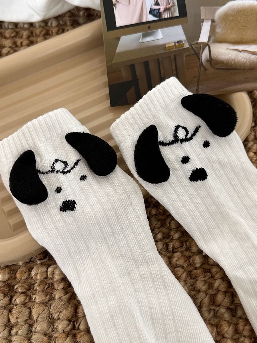 가을 겨울 여성용 입체 흑백 강아지 종아리 양말, 통기성, 땀 흡수성, 여아용 귀여운 외투 양말스토어 가기