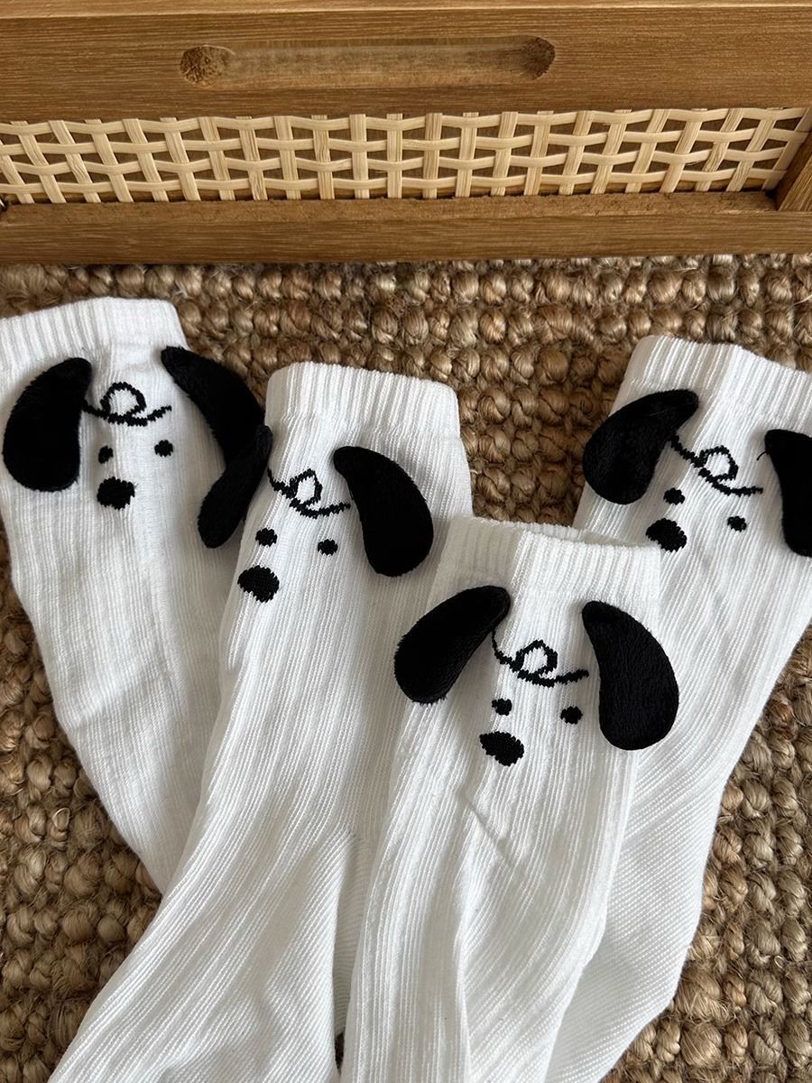 가을 겨울 여성용 입체 흑백 강아지 종아리 양말, 통기성, 땀 흡수성, 여아용 귀여운 외투 양말