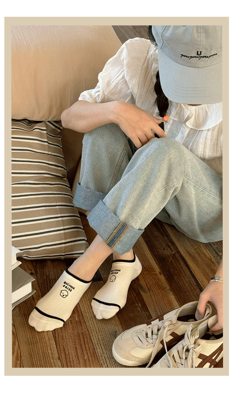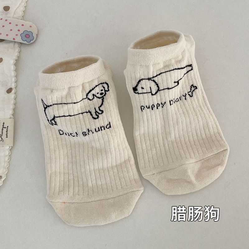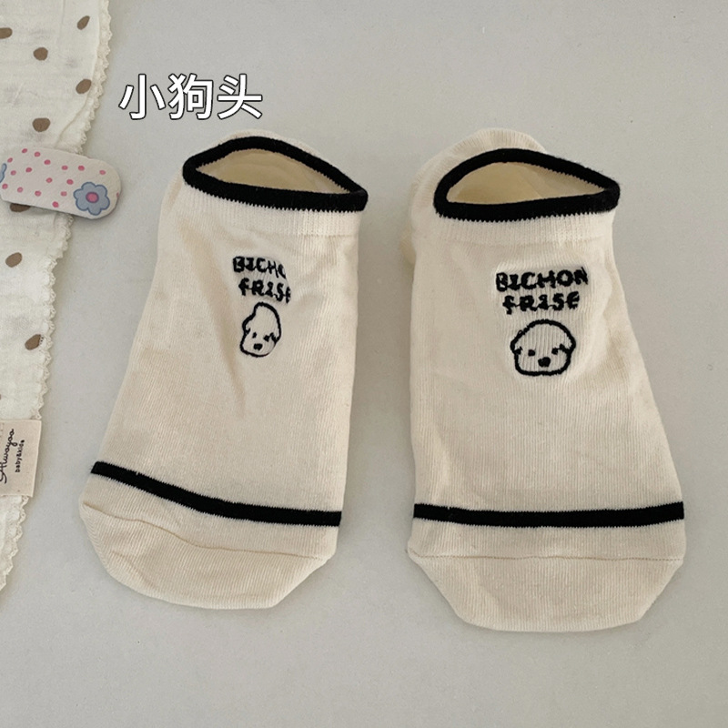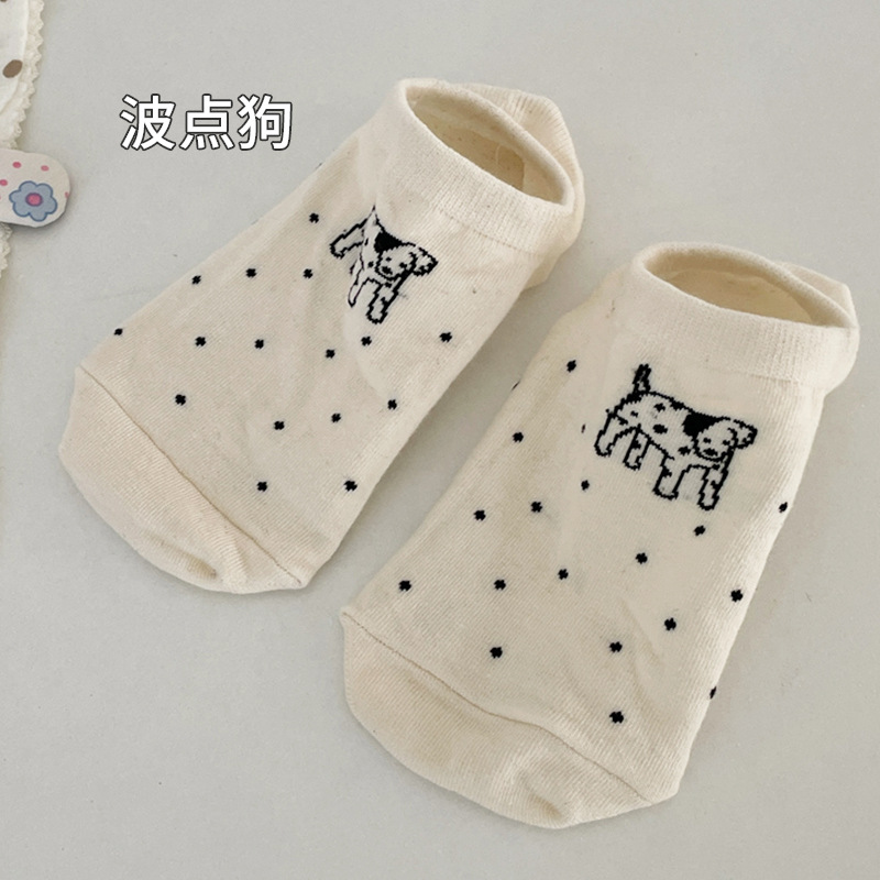 귀여운 강아지 양말 여성용 여름 얇은 면 짧은 양말 로우 컷 얕은 입 레이스 일본 활 발뒤꿈치없는 뼈스토어 가기