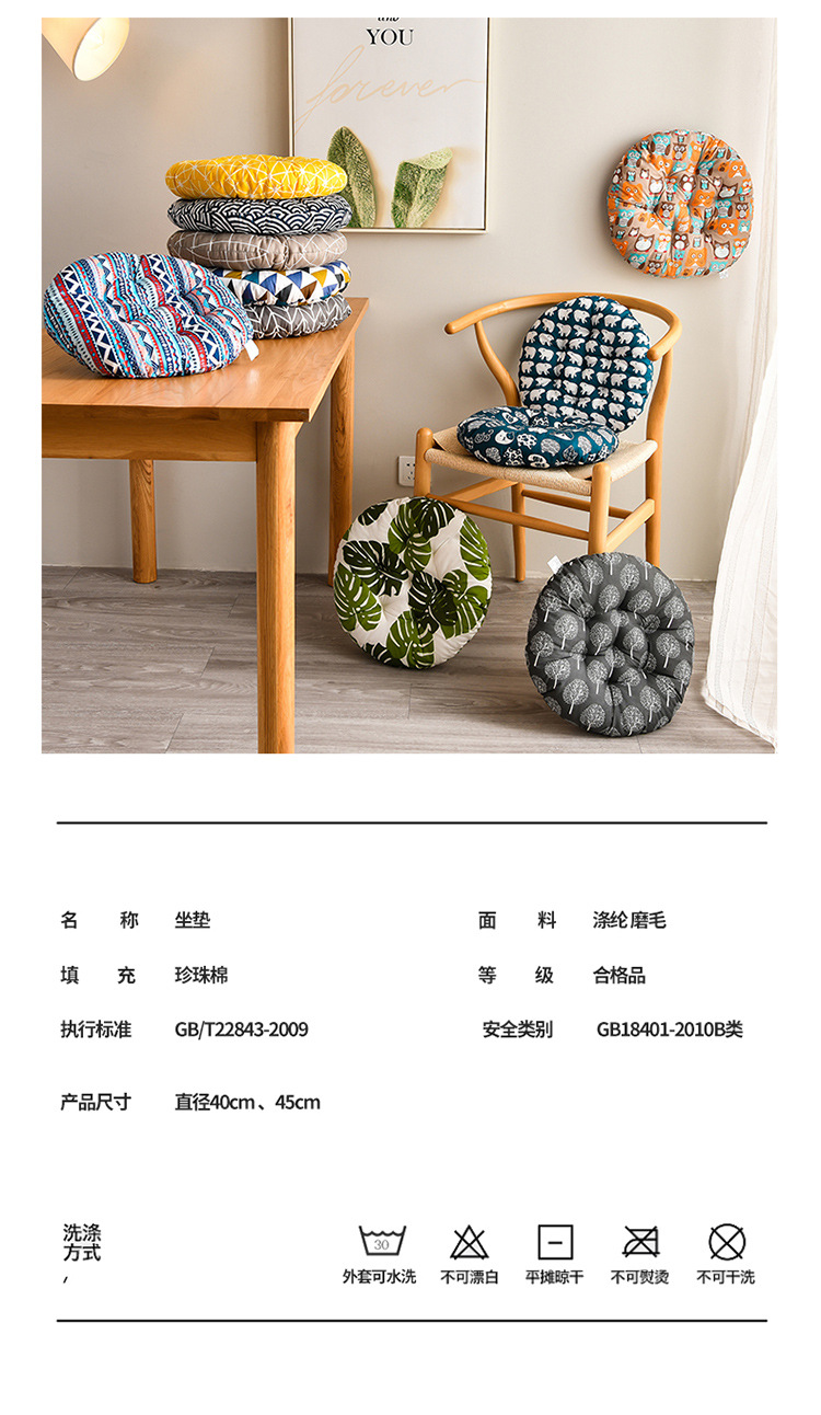 坐垫是手工裁剪缝制,再加上填充物是珍珠棉,棉是蓬松的,所以成品尺寸会有3厘米左右公差,40*40cm的中间测量值在35cm,45*45的中间测量在40*40cm左右介意慎拍!