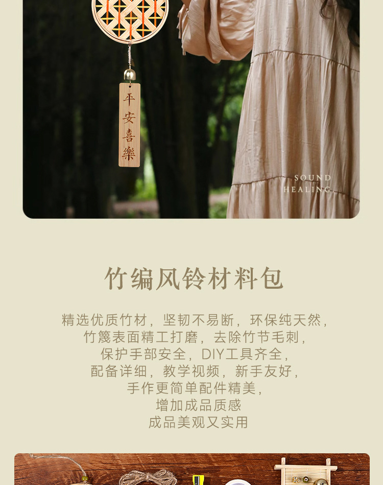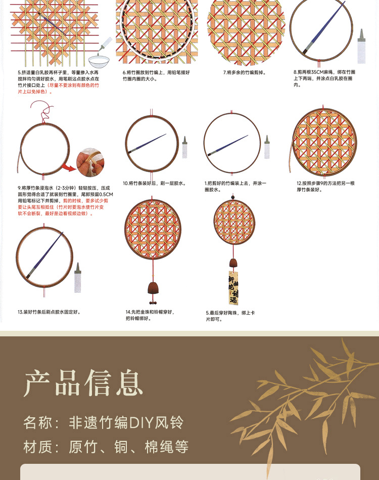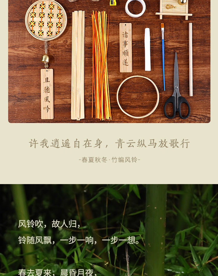 비 레거시 대나무 그림 바람 벨 수제 DIY 소재 가방 벨 교수형 장식품 어린이 그룹 건물 활동 연구 및 창의적인 선물스토어 가기
