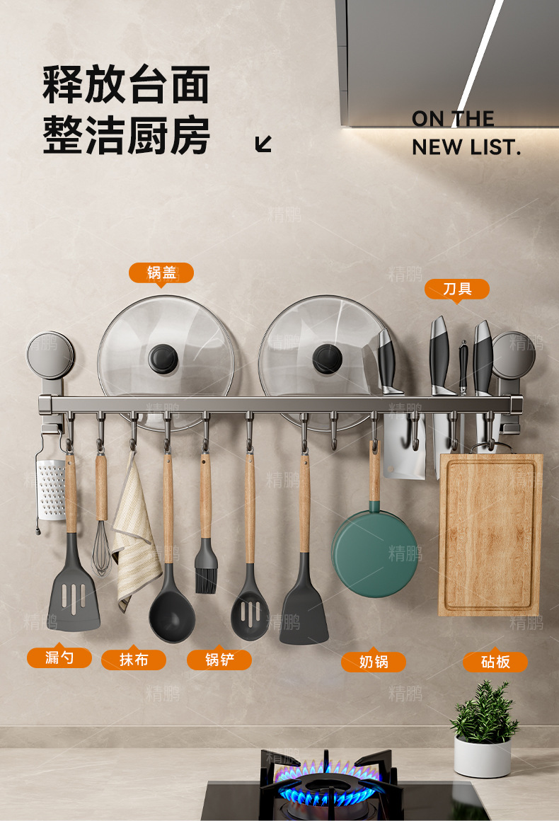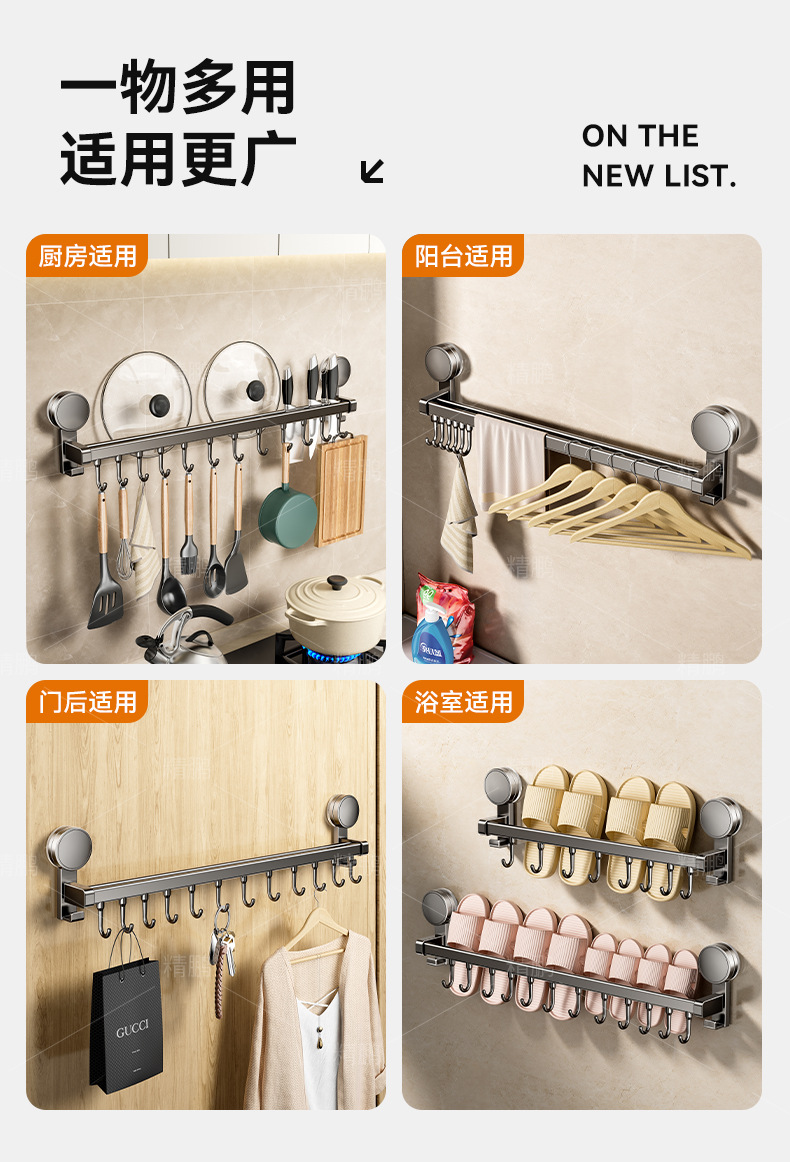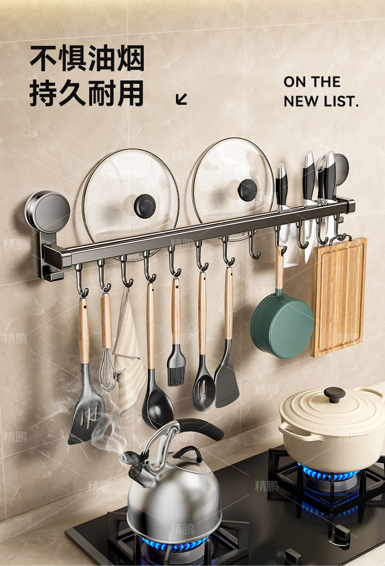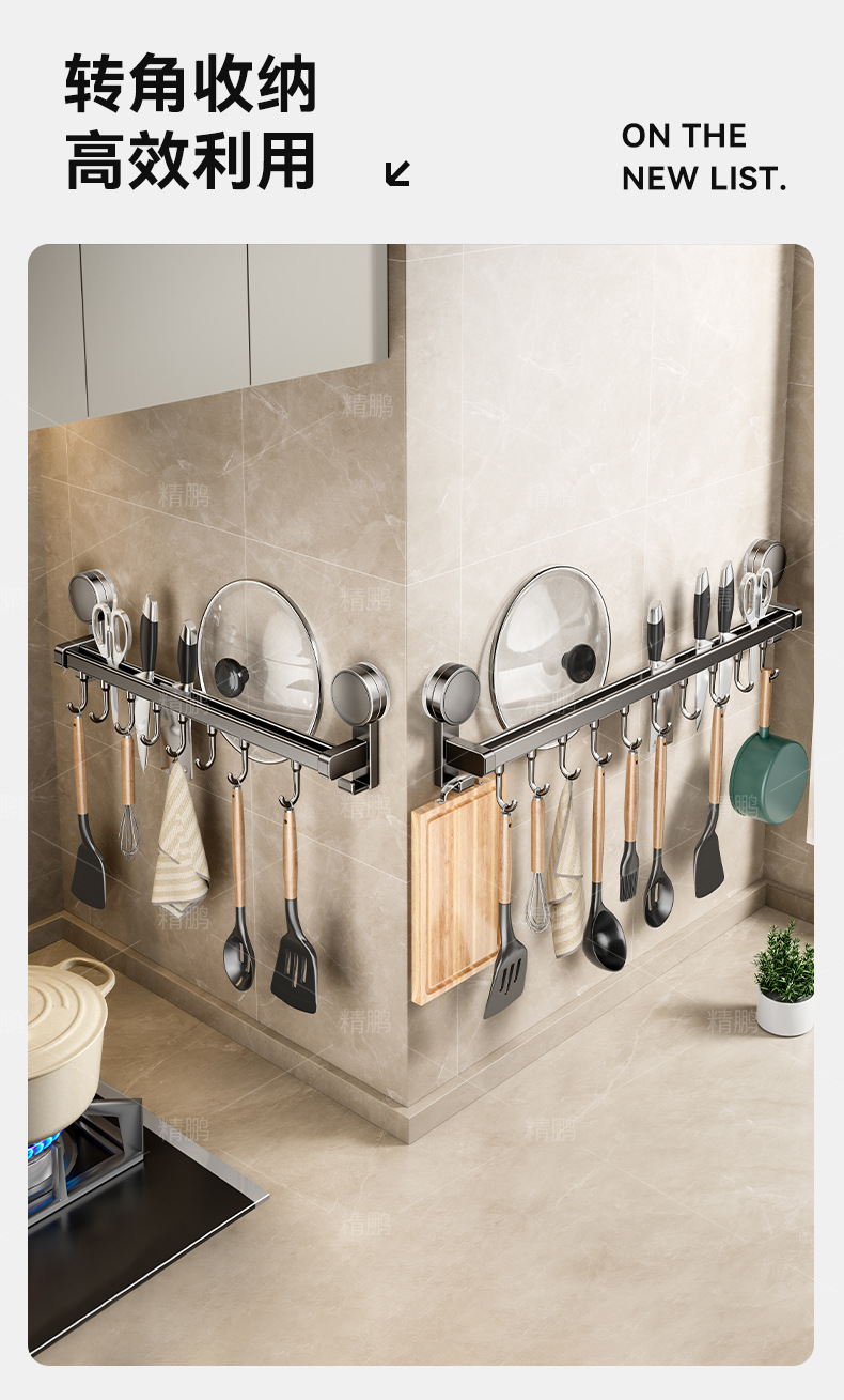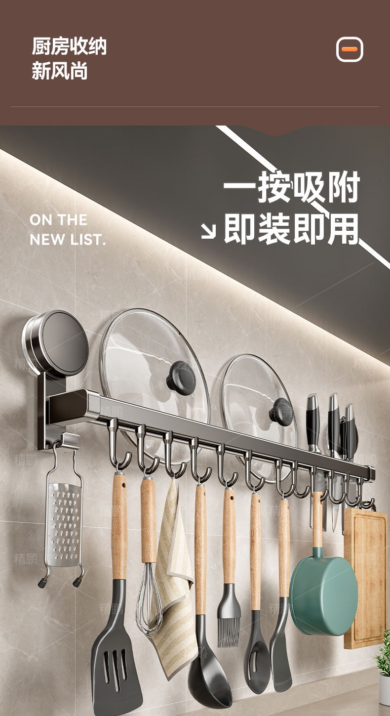 석션 컵 주방 후크 교수형 로드 펀치없는 벽걸이 형 나이프 랙 스토리지 랙 스폿 스푼 벽 교수형 랙 스토리지 랙