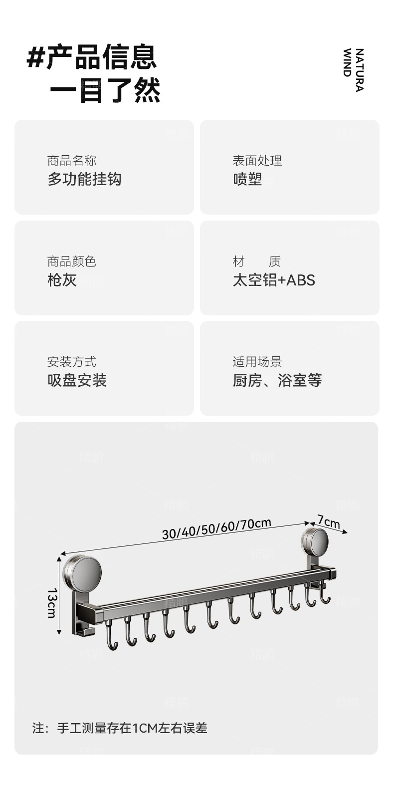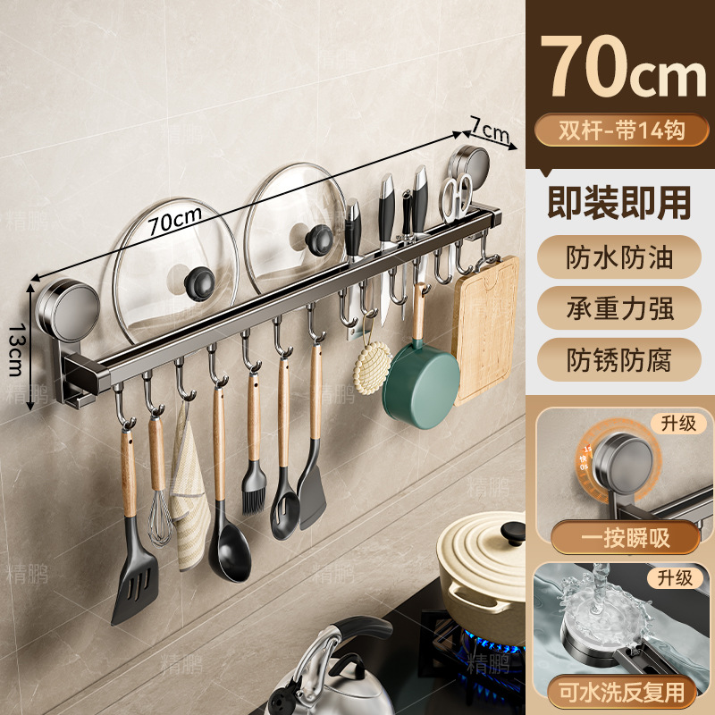 • 흡착컵 이중봉 14개 후크 70cm [뚜껑/칼 수납 가능]