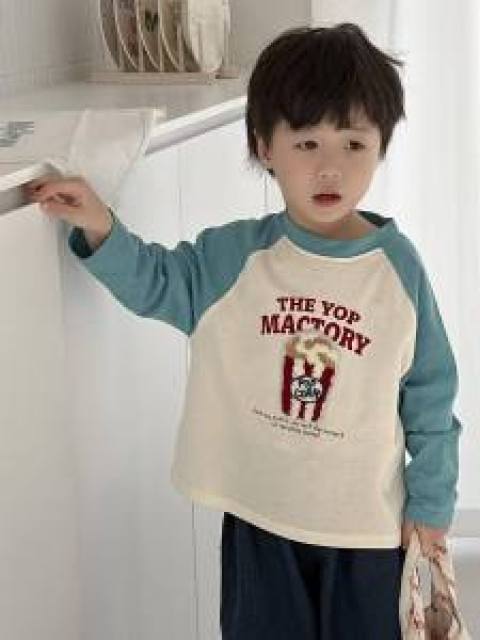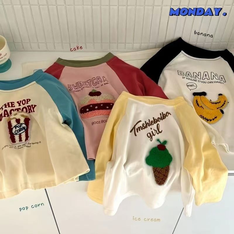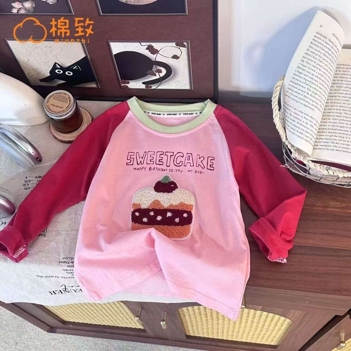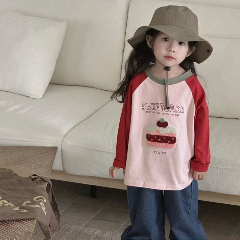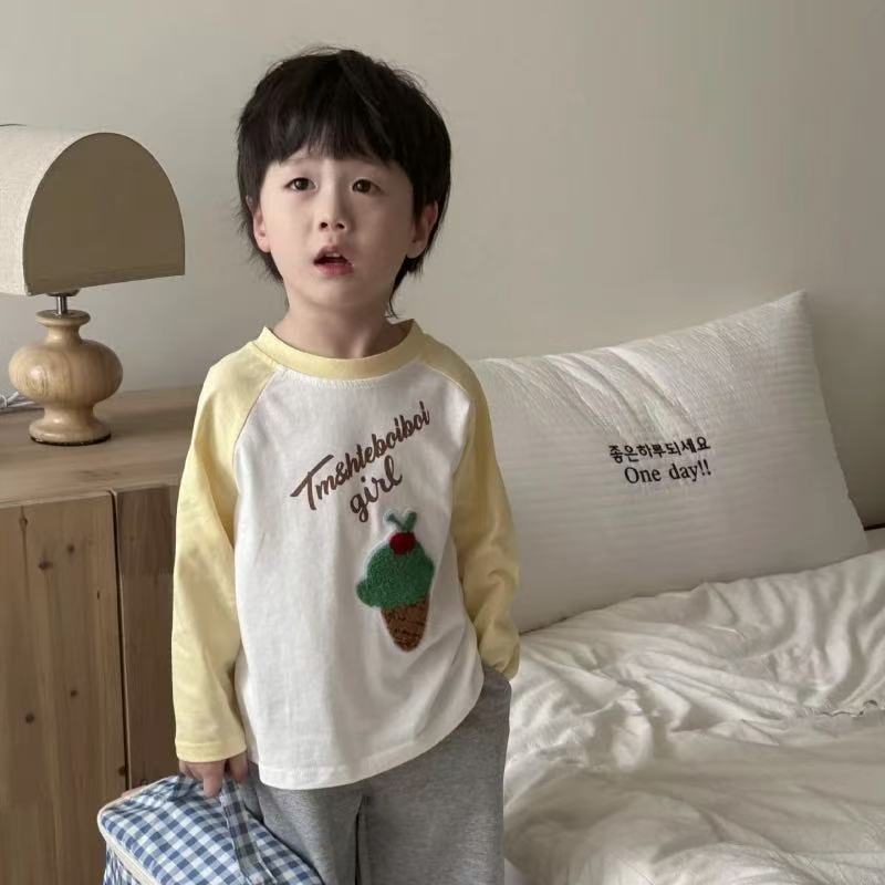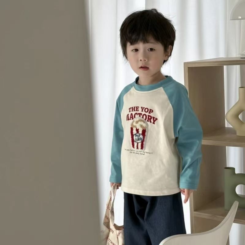 2025 봄과 가을 어린이 면 긴팔 티셔츠 아기 라글란 슬리브 탑 만화 캐주얼 베이스 셔츠스토어 가기