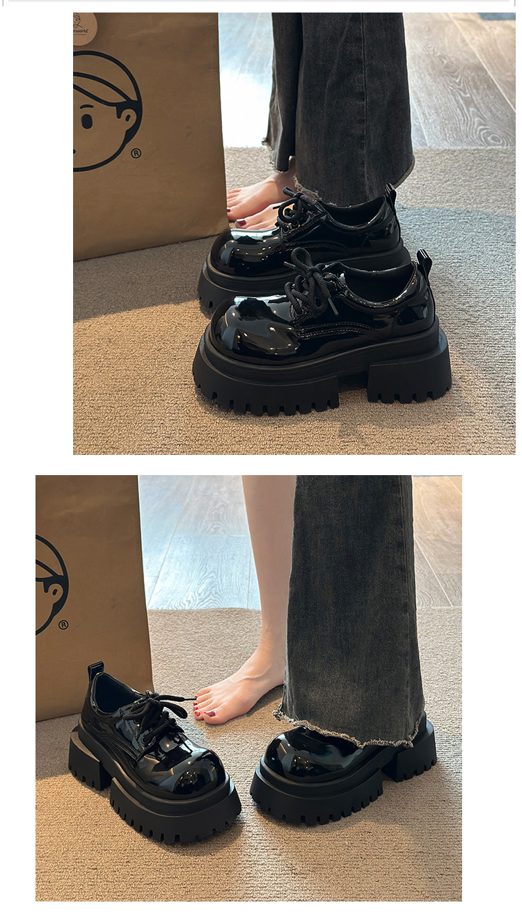 영국 스타일 두꺼운 바닥 온주 작은 가죽 신발 여성의 2025 새로운 스타일 작은 높이 증가 로퍼 달콤한 쿨 큰 머리 신발스토어 가기