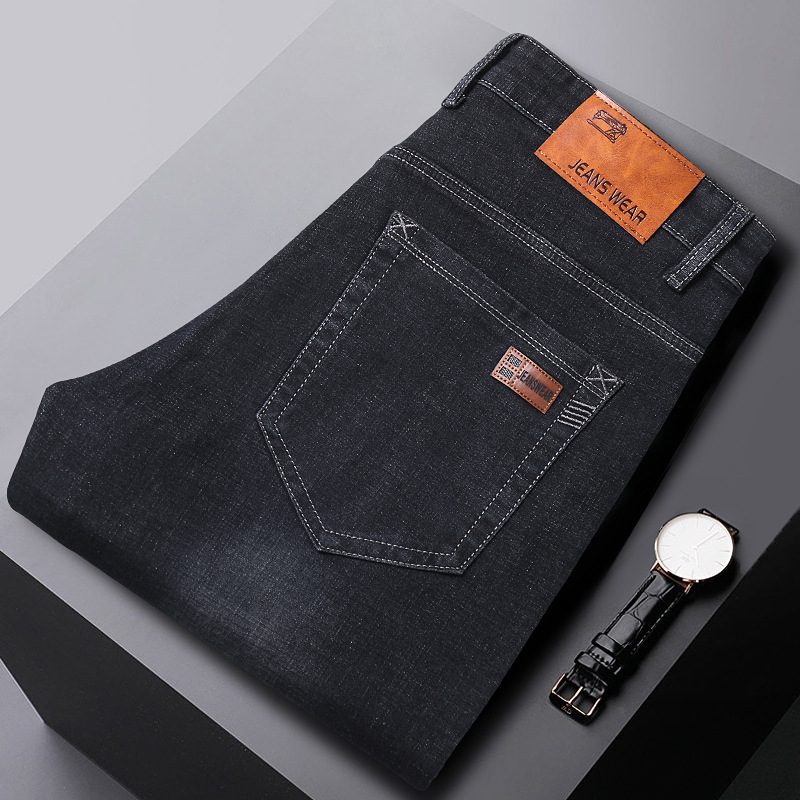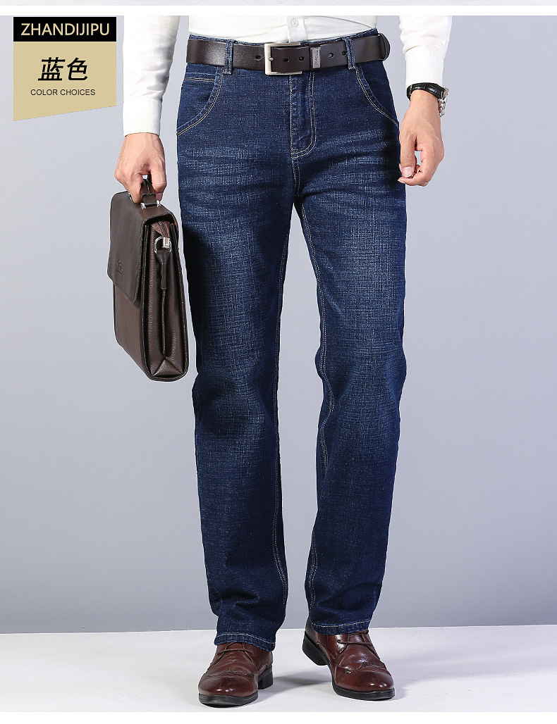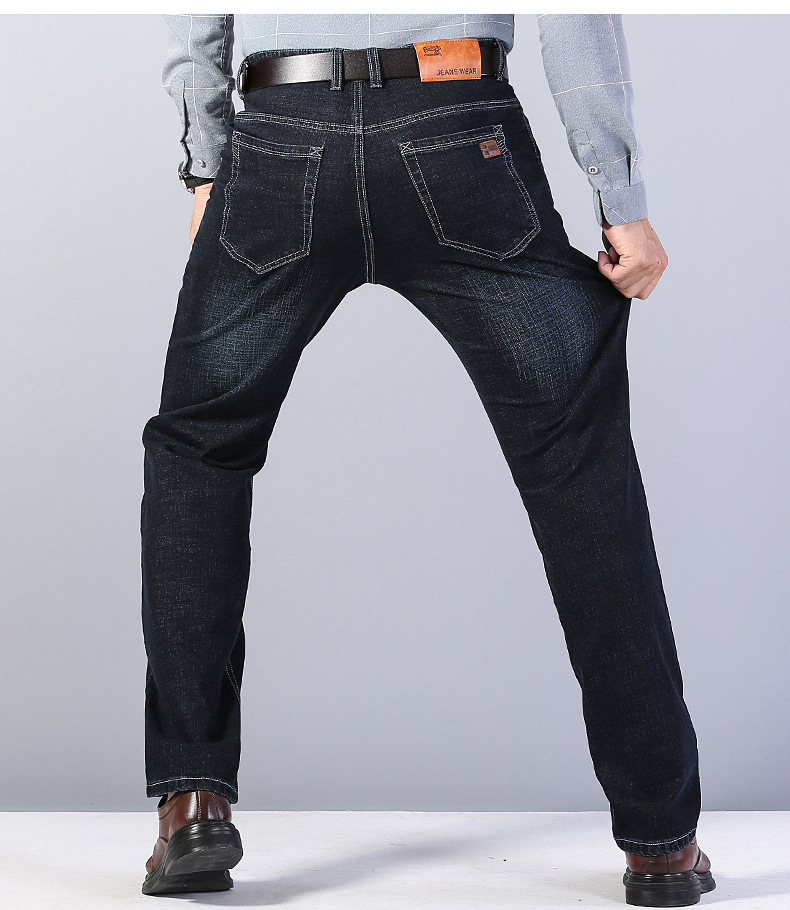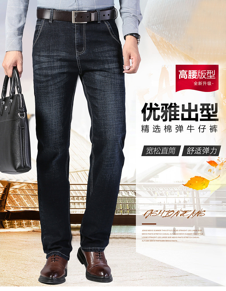 2025 봄과 가을 새로운 청바지 남성 스트레이트 느슨한 탄성 사업 캐주얼 중년 면 탄성 데님 긴 바지