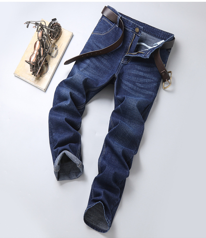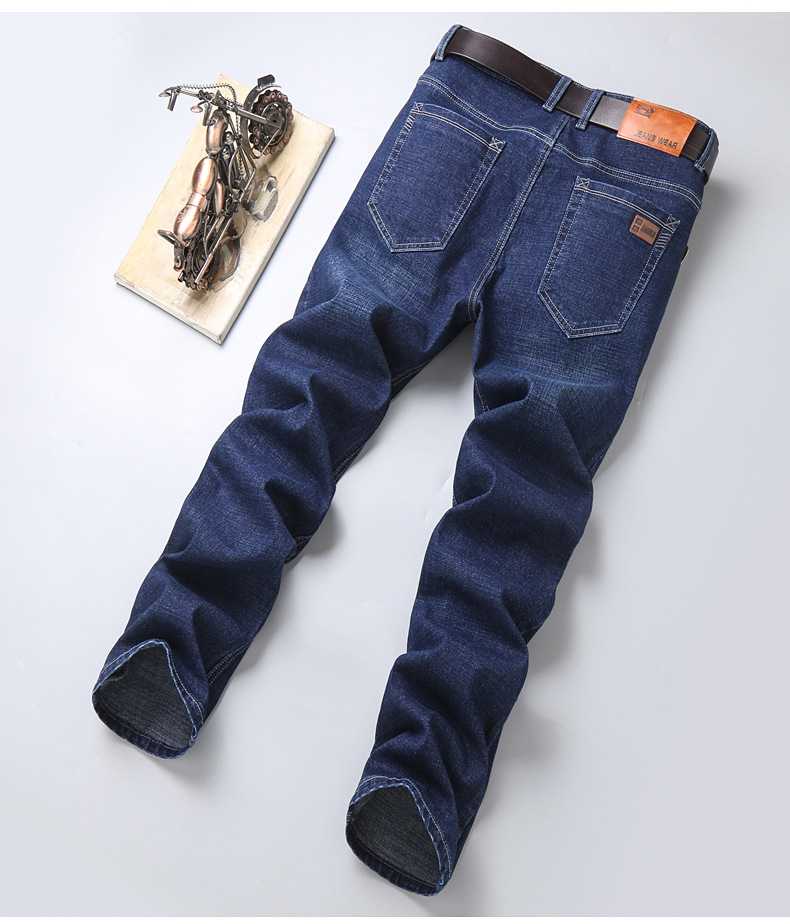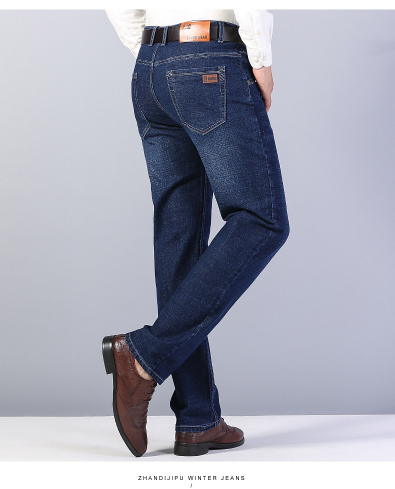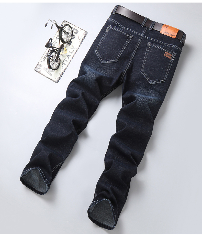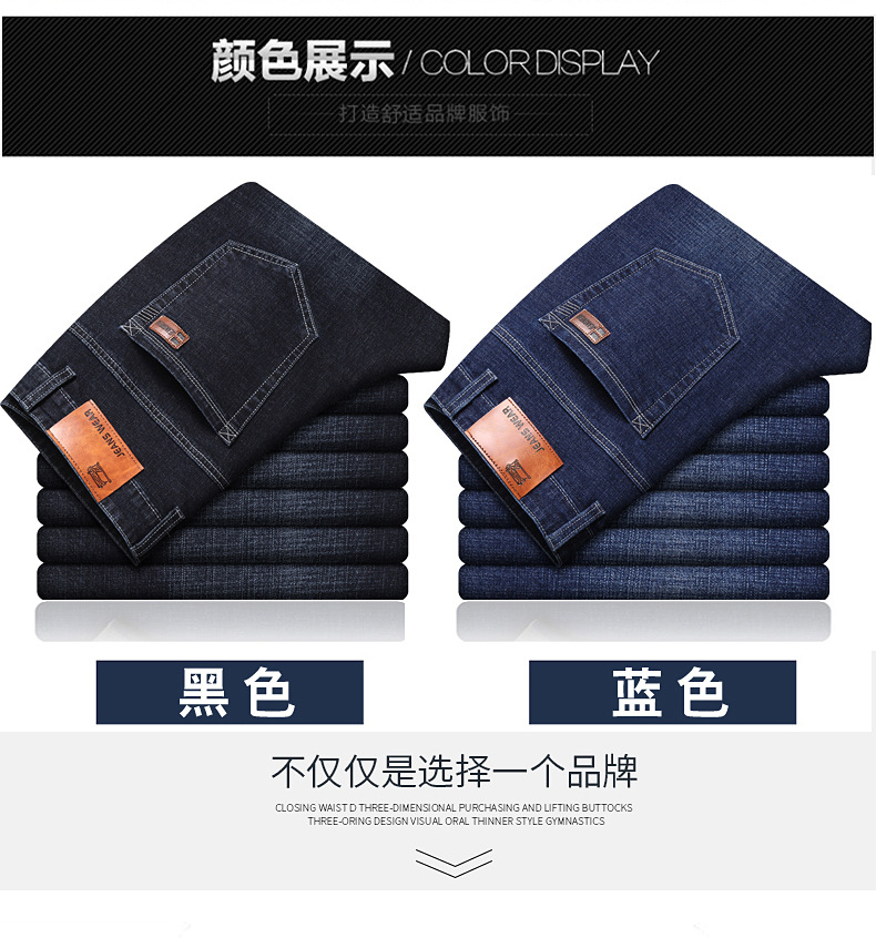2025 봄과 가을 새로운 청바지 남성 스트레이트 느슨한 탄성 사업 캐주얼 중년 면 탄성 데님 긴 바지