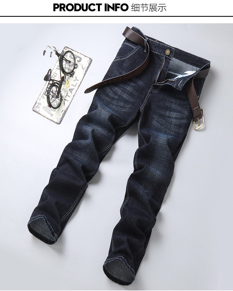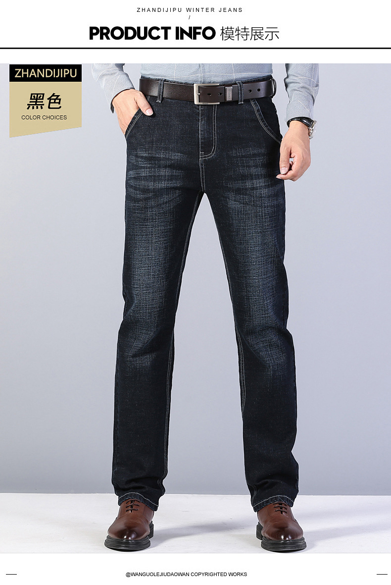 2025 봄과 가을 새로운 청바지 남성 스트레이트 느슨한 탄성 사업 캐주얼 중년 면 탄성 데님 긴 바지스토어 가기