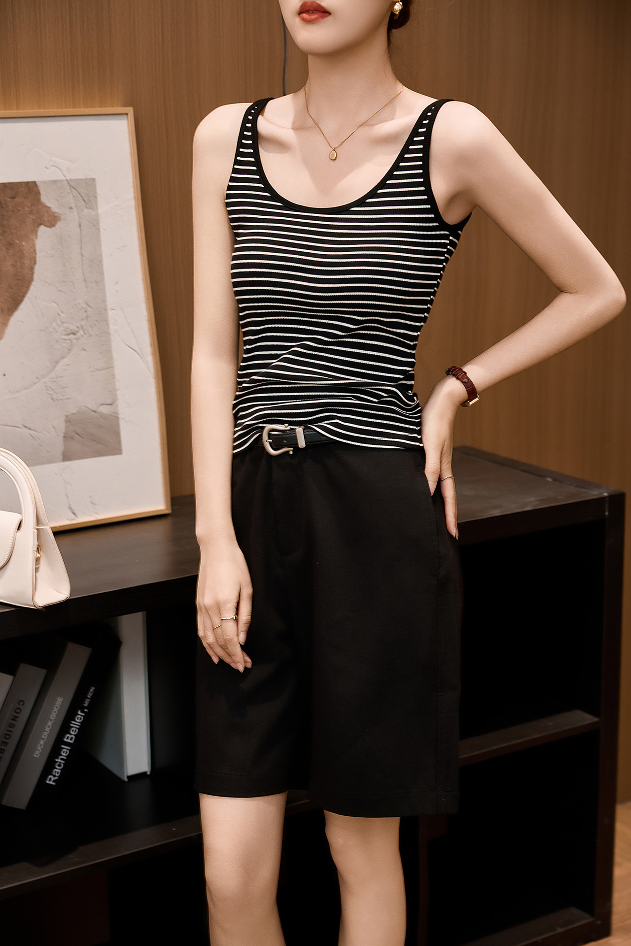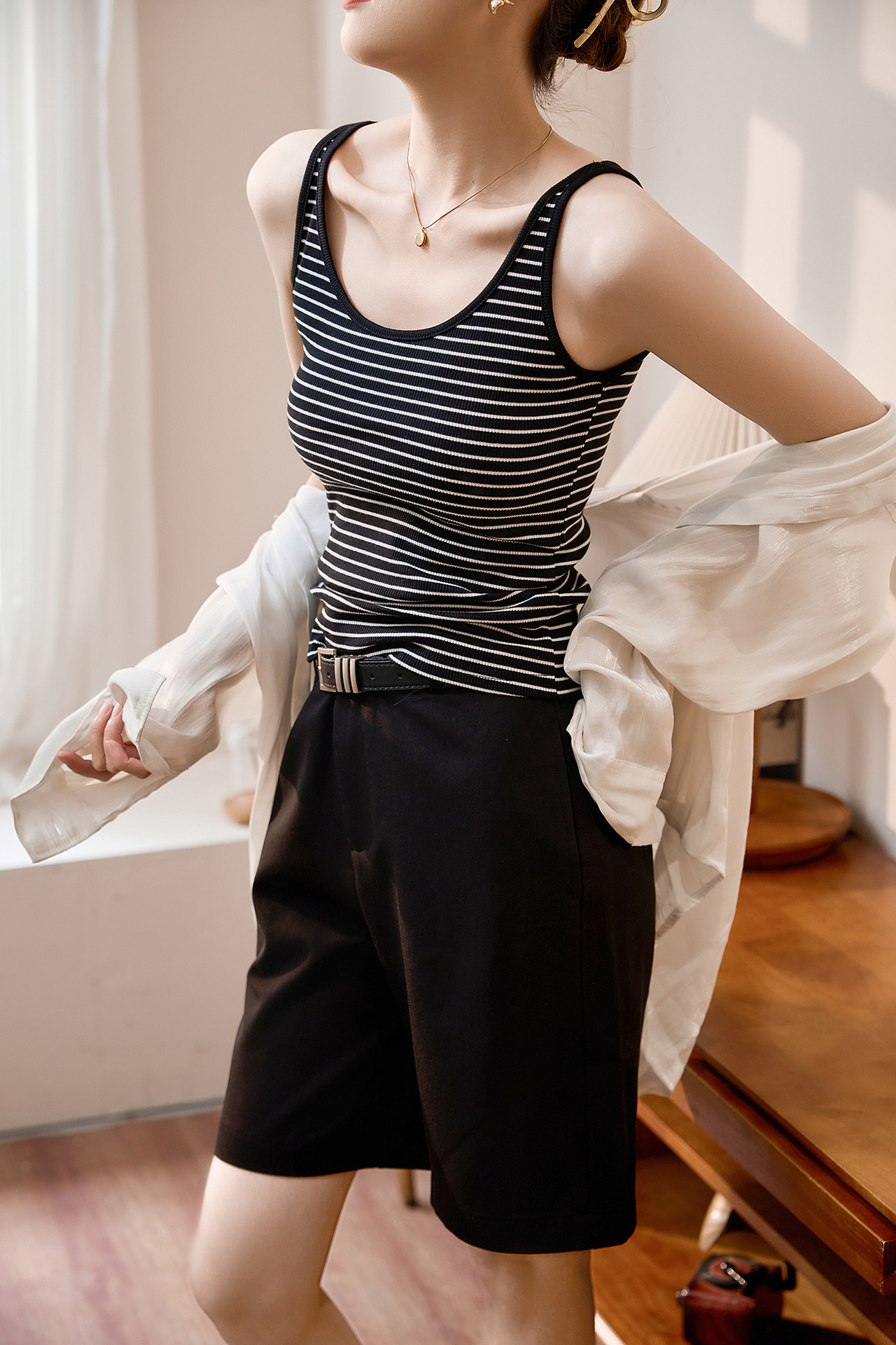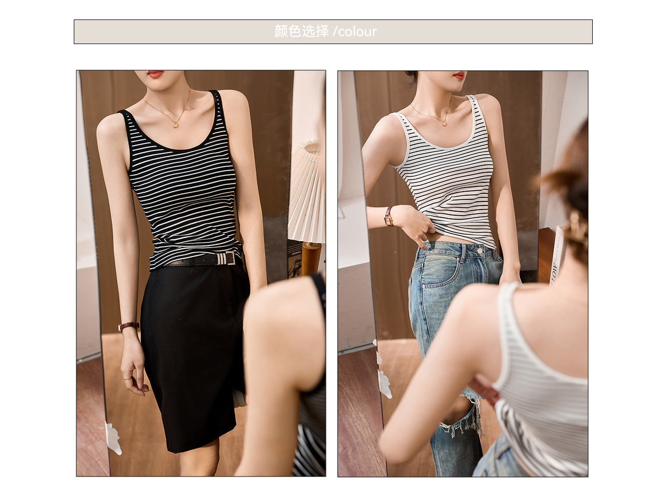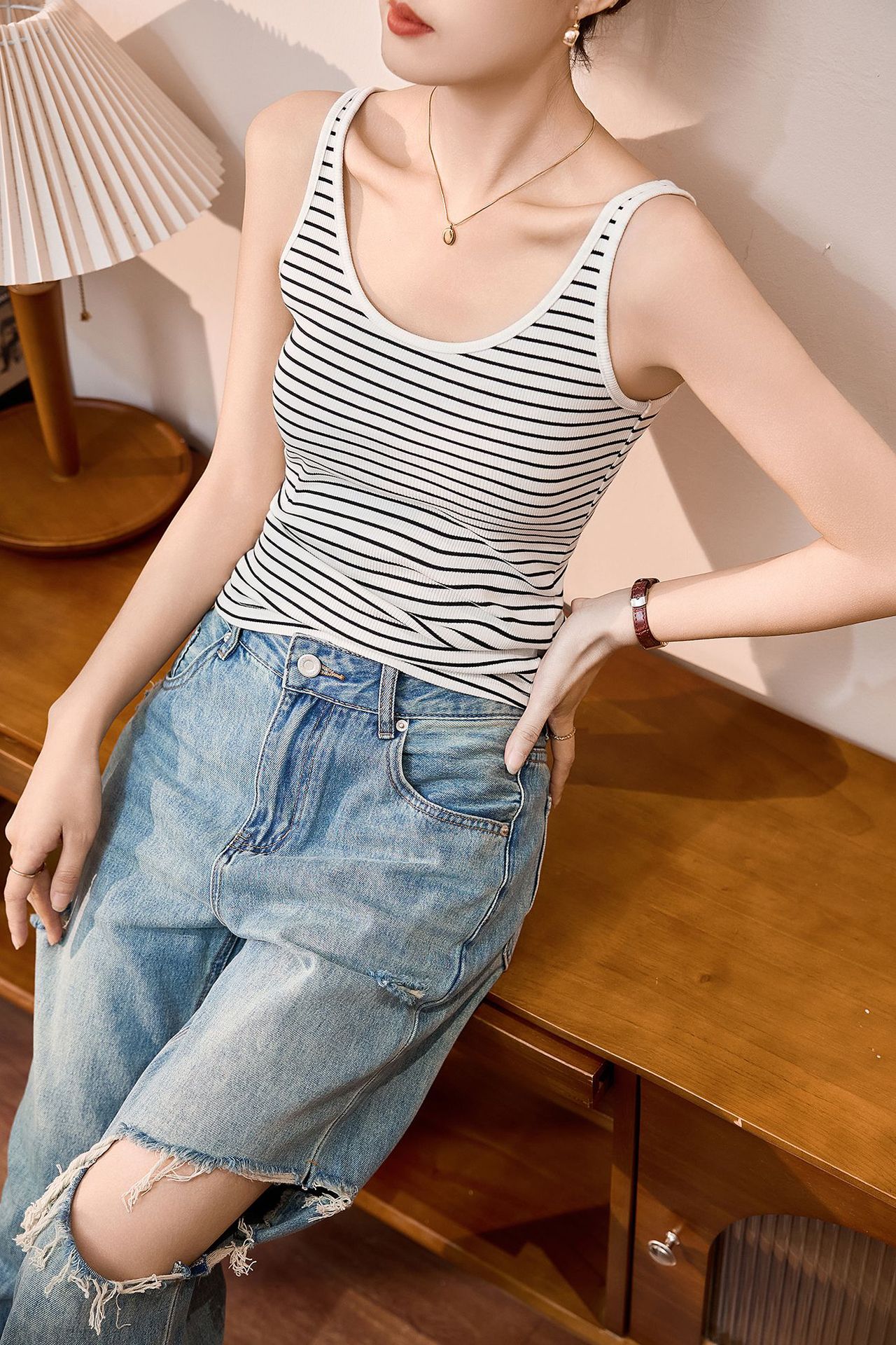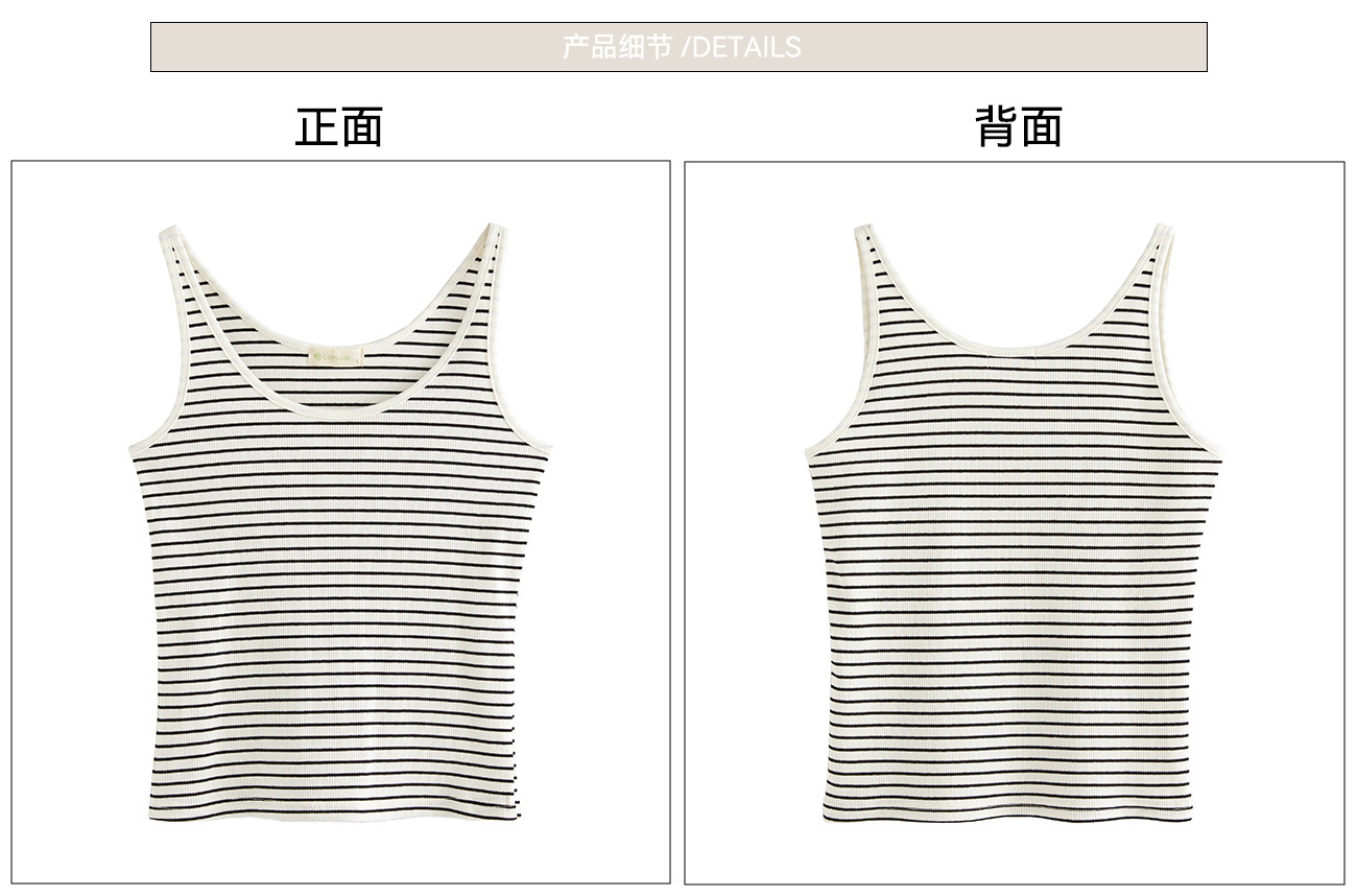 엄선된 260g 순면 스트라이프 민소매 탑 여성용 여름 2026 신상 U넥 슬림핏 슬리밍 이너웨어/아우터웨어 탑스토어 가기