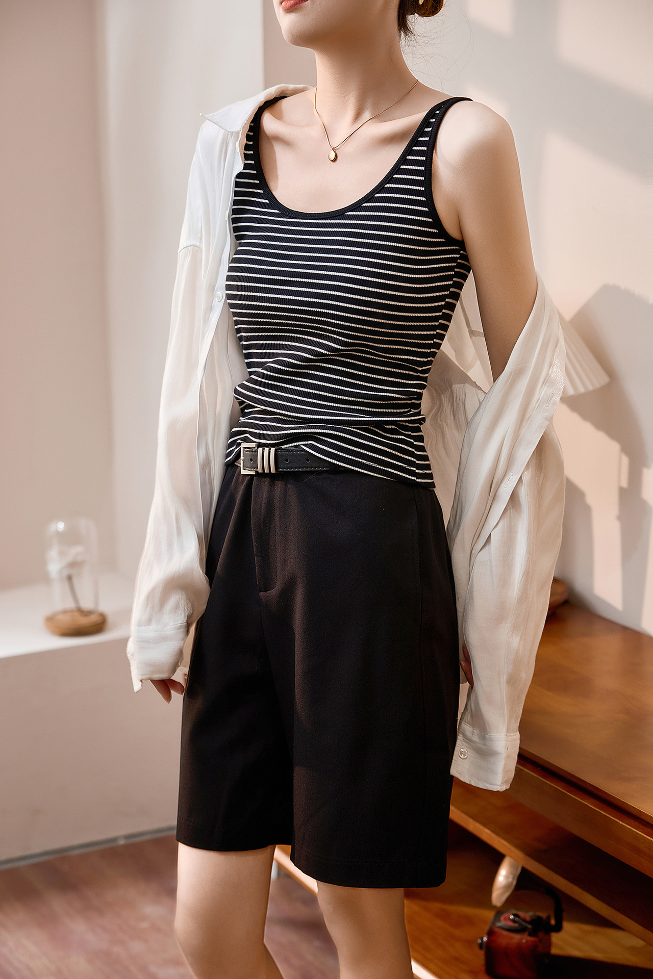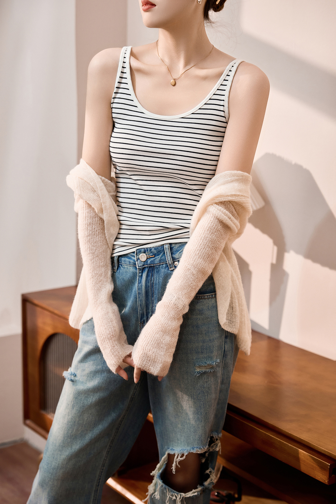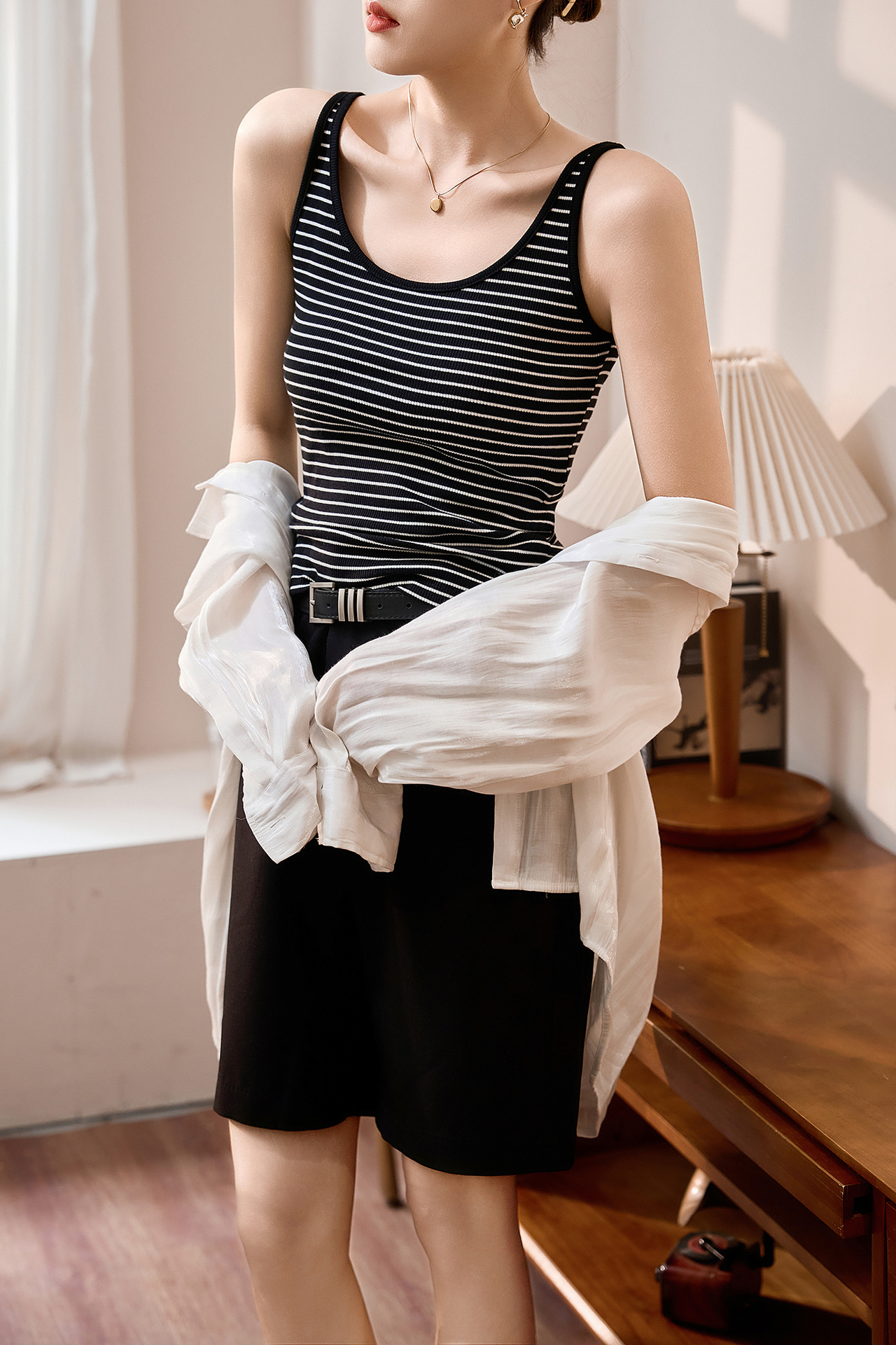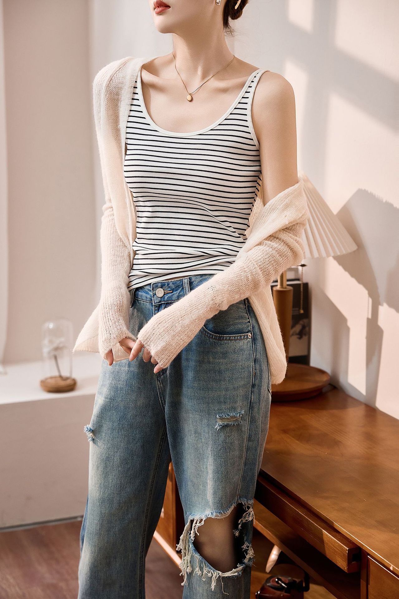 엄선된 260g 순면 스트라이프 민소매 탑 여성용 여름 2026 신상 U넥 슬림핏 슬리밍 이너웨어/아우터웨어 탑스토어 가기