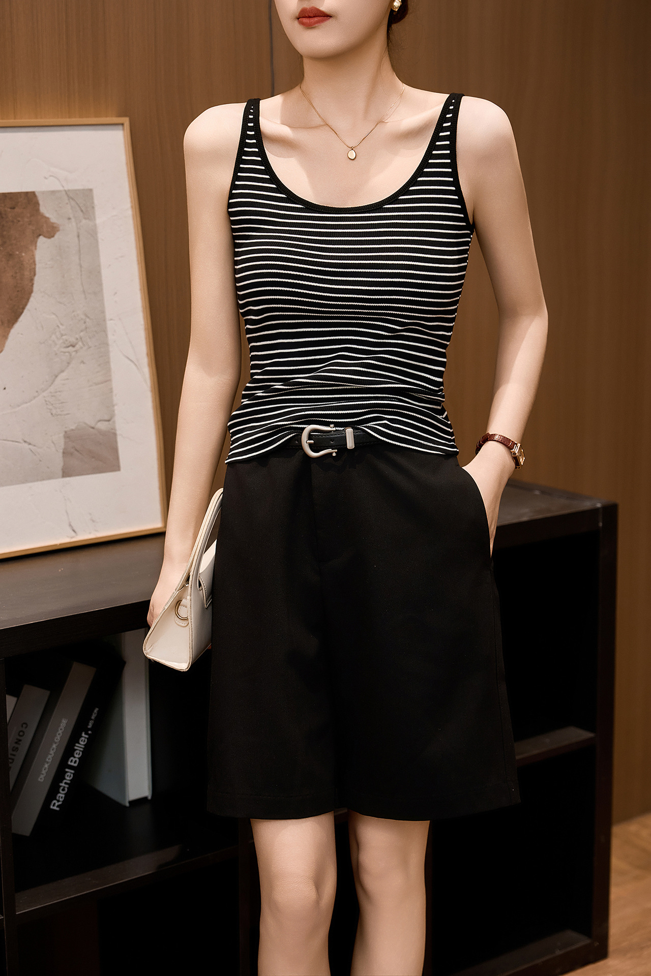엄선된 260g 순면 스트라이프 민소매 탑 여성용 여름 2026 신상 U넥 슬림핏 슬리밍 이너웨어/아우터웨어 탑