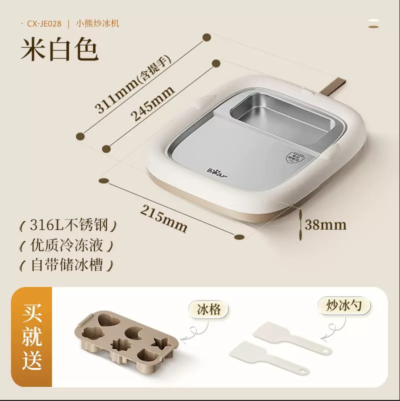 곰 얼음 튀긴 기계 CX-JE028 가정용 어린이 스테인레스 스틸 작은 수제 DIY 플러그인 무료 아이스크림 플레이트 사워스토어 가기