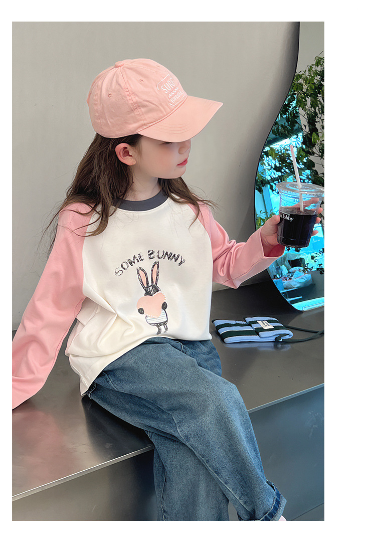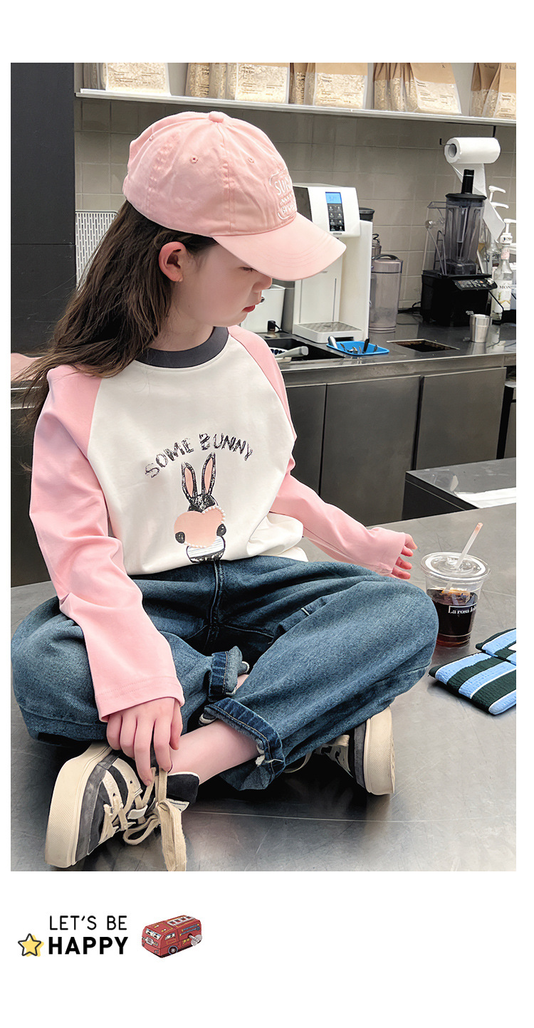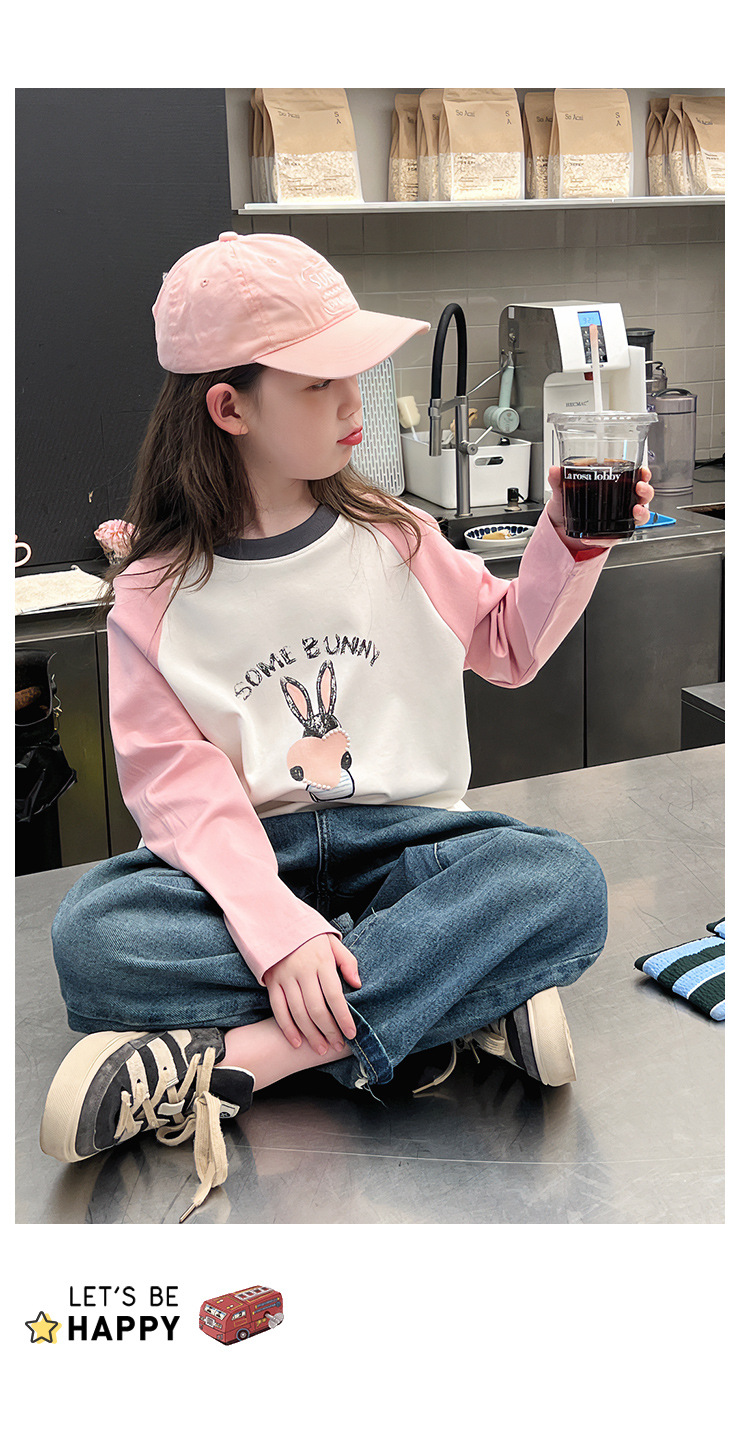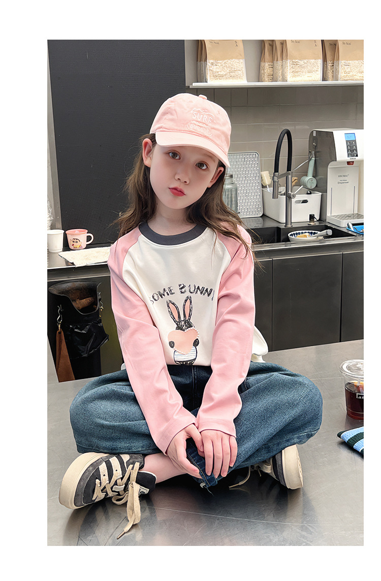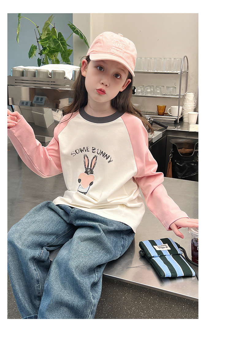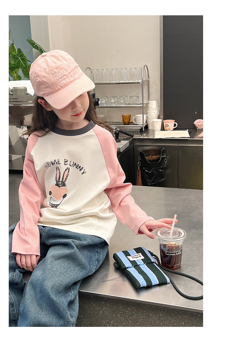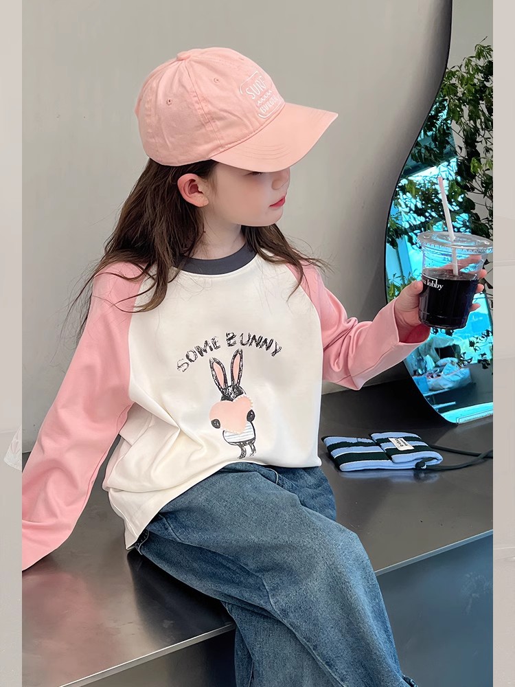 어린이 라글란 소매베이스 셔츠 소녀 긴 소매 티셔츠 큰 아동복 서양식 탑 소녀 2025 봄과 가을 새로운 스타일