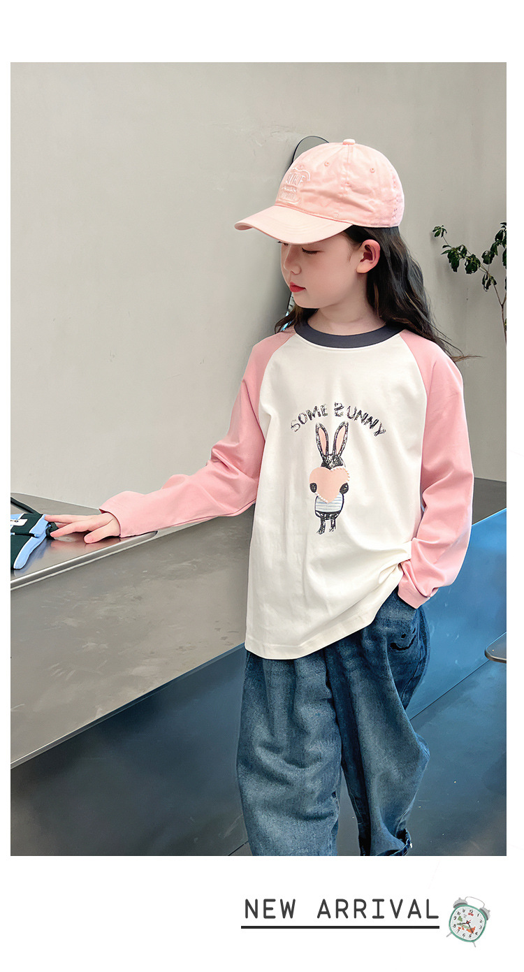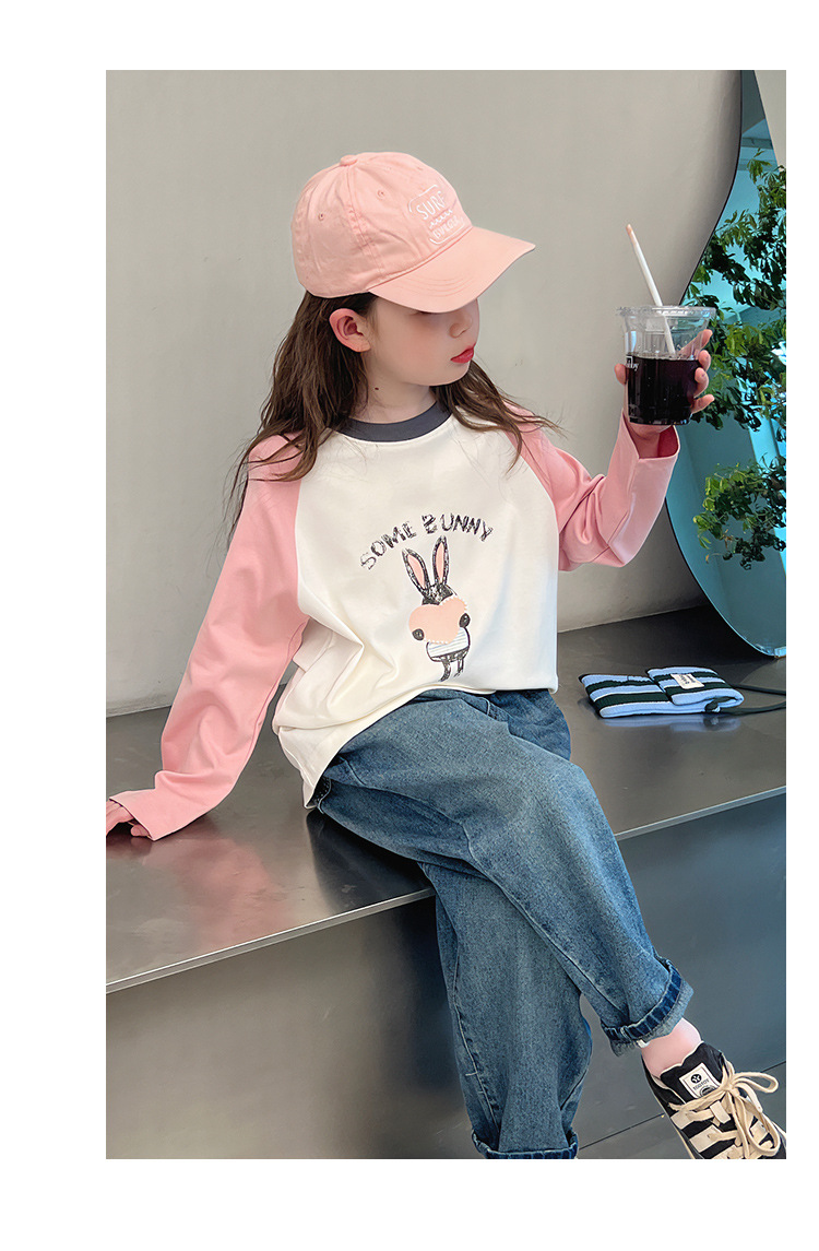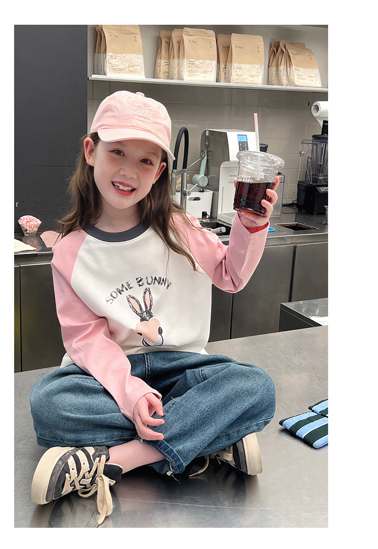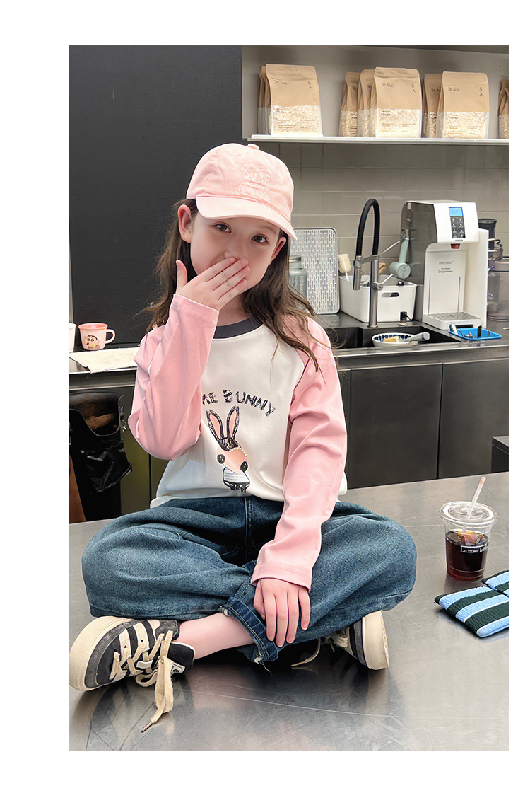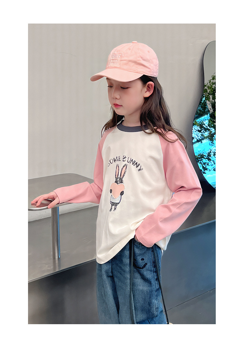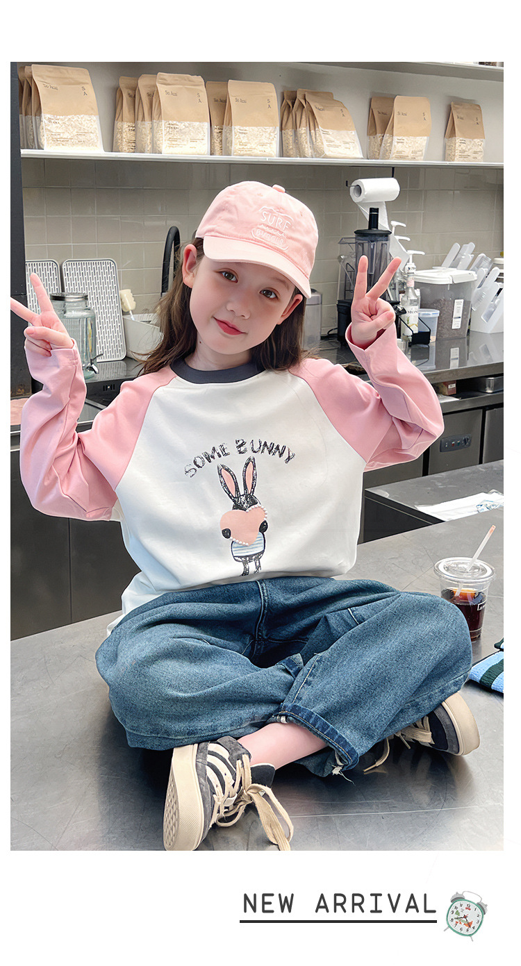 어린이 라글란 소매베이스 셔츠 소녀 긴 소매 티셔츠 큰 아동복 서양식 탑 소녀 2025 봄과 가을 새로운 스타일