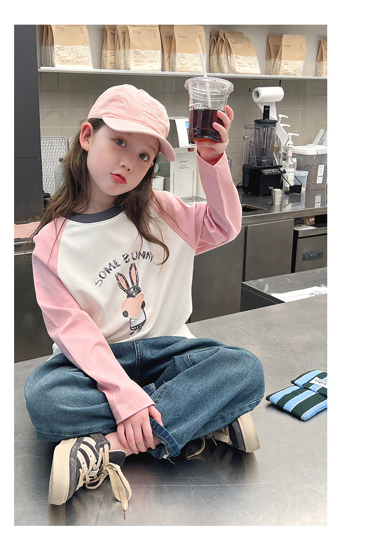 어린이 라글란 소매베이스 셔츠 소녀 긴 소매 티셔츠 큰 아동복 서양식 탑 소녀 2025 봄과 가을 새로운 스타일스토어 가기