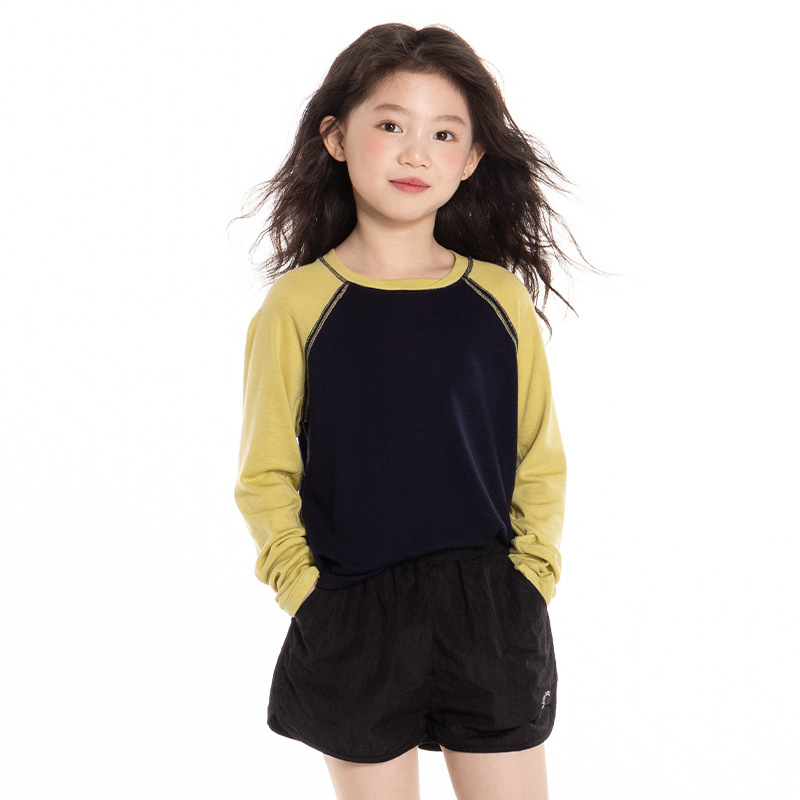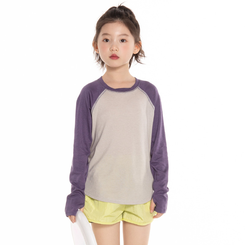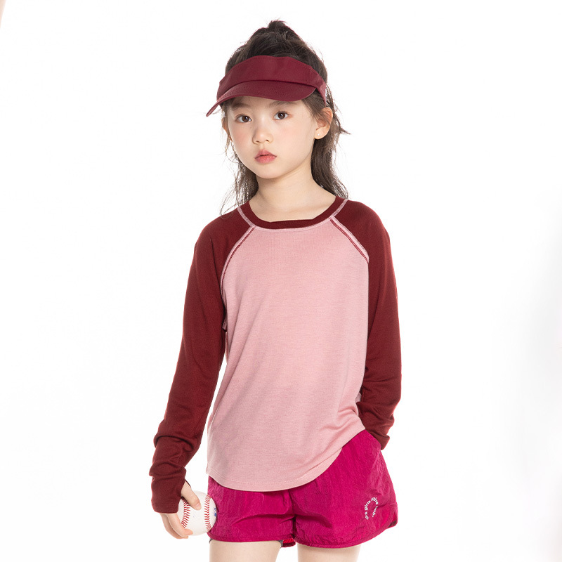 여자 텐셀 울 스포츠 라글란 슬리브 티셔츠 2025 봄과 여름 어린이 서양식 대비 컬러 긴 소매베이스 셔츠 탑