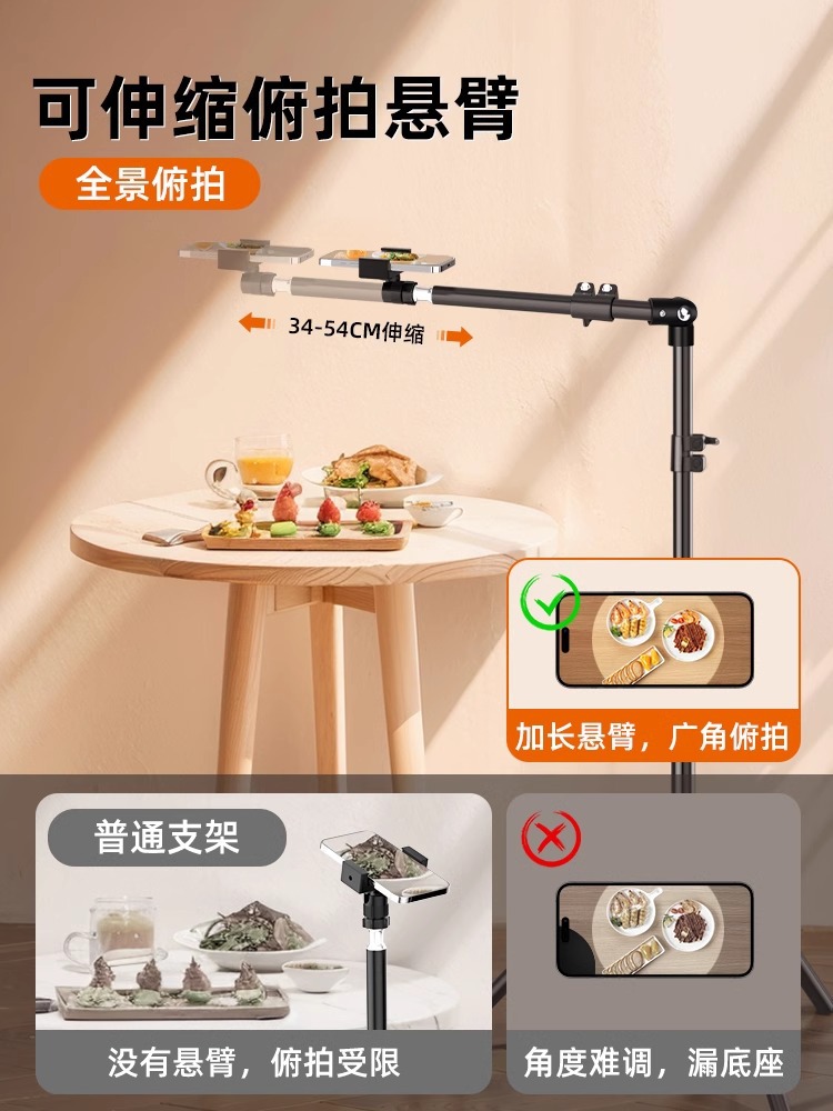 휴대 전화 스탠드 바닥 촬영 삼각대 데스크탑 오버 헤드 촬영 휴대 전화 스탠드 다기능 휴대 전화 라이브 방송 스탠드 야외 촬영