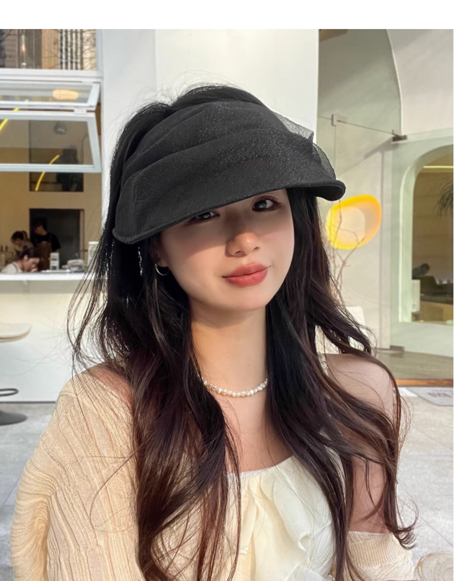 여성용 자외선 차단 썬캡, 한국 스타일 진주 오간자 챙넓은 모자, 여행용 도매, 자외선 차단스토어 가기