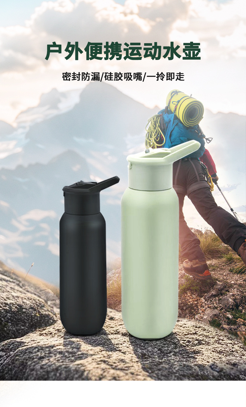 304 스테인리스 스포츠 물병, 휴대용 등산 이중 단열컵, 손잡이가 있는 여행용 물병, 해외 직구 전용