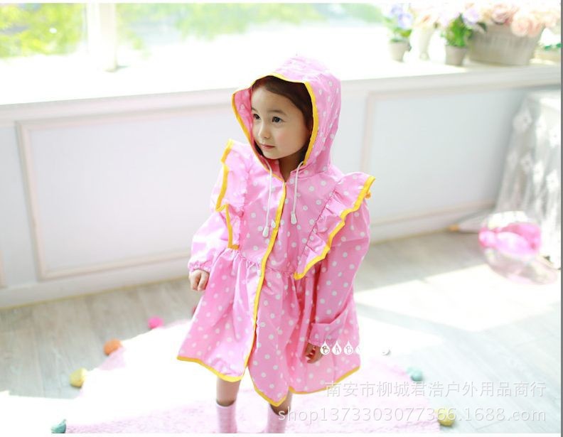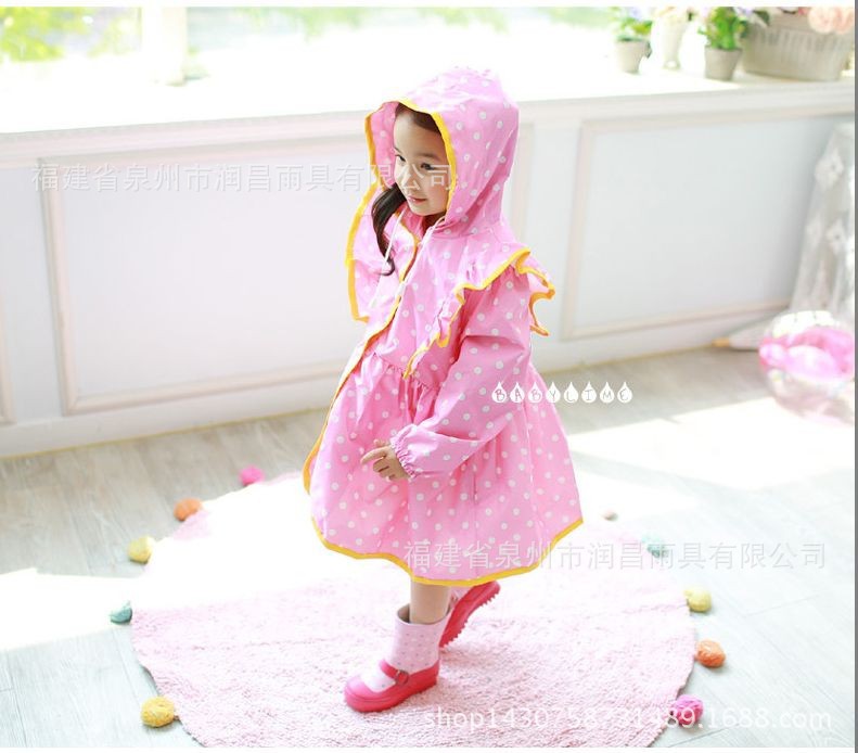 폴카 러플 공주 판초 귀여운 소녀 폴카 비옷 배달 보관 가방스토어 가기