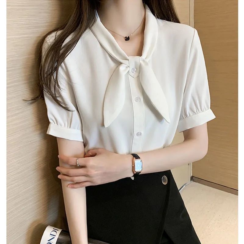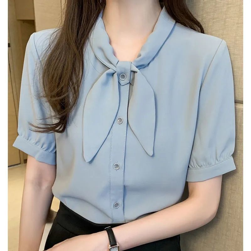 반팔 쉬폰 셔츠 여성 여름 2025 새로운 활 기질 전문 OL 셔츠 패션 웨스턴 스타일 탑스토어 가기