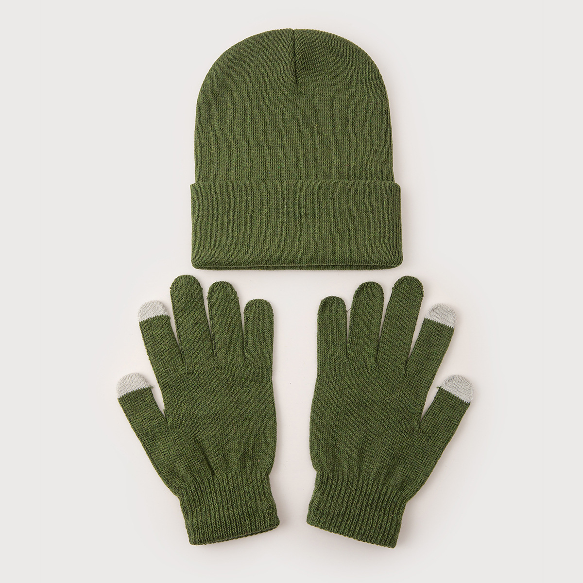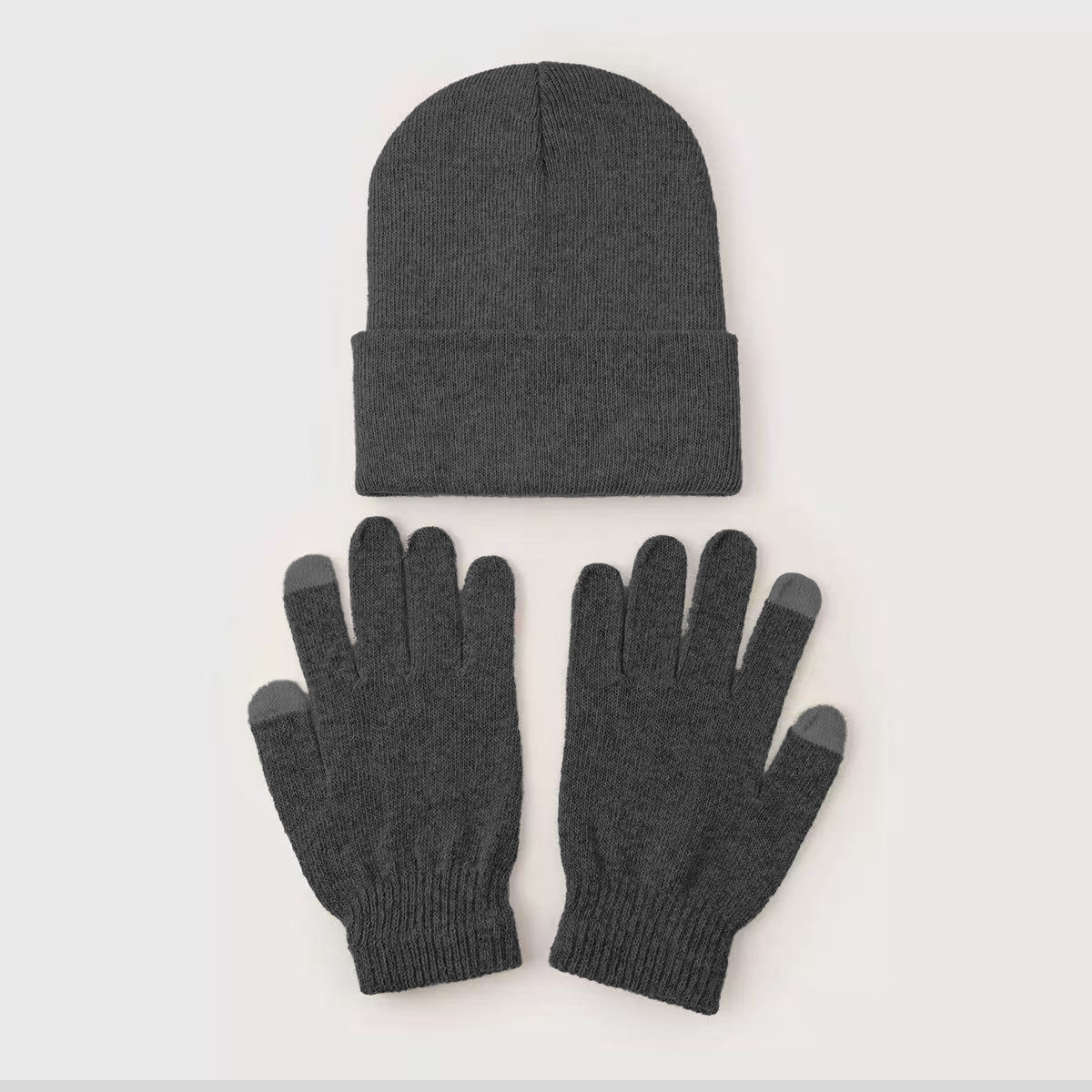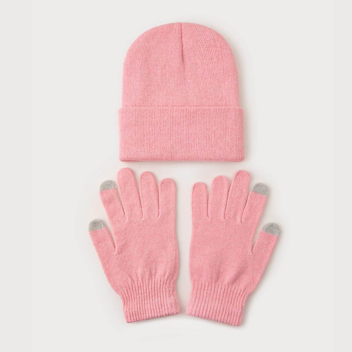 아마존 세트 가을과 겨울 단색 울 캡 장갑 따뜻한 2 피스 세트 유니섹스 니트 캡 도매