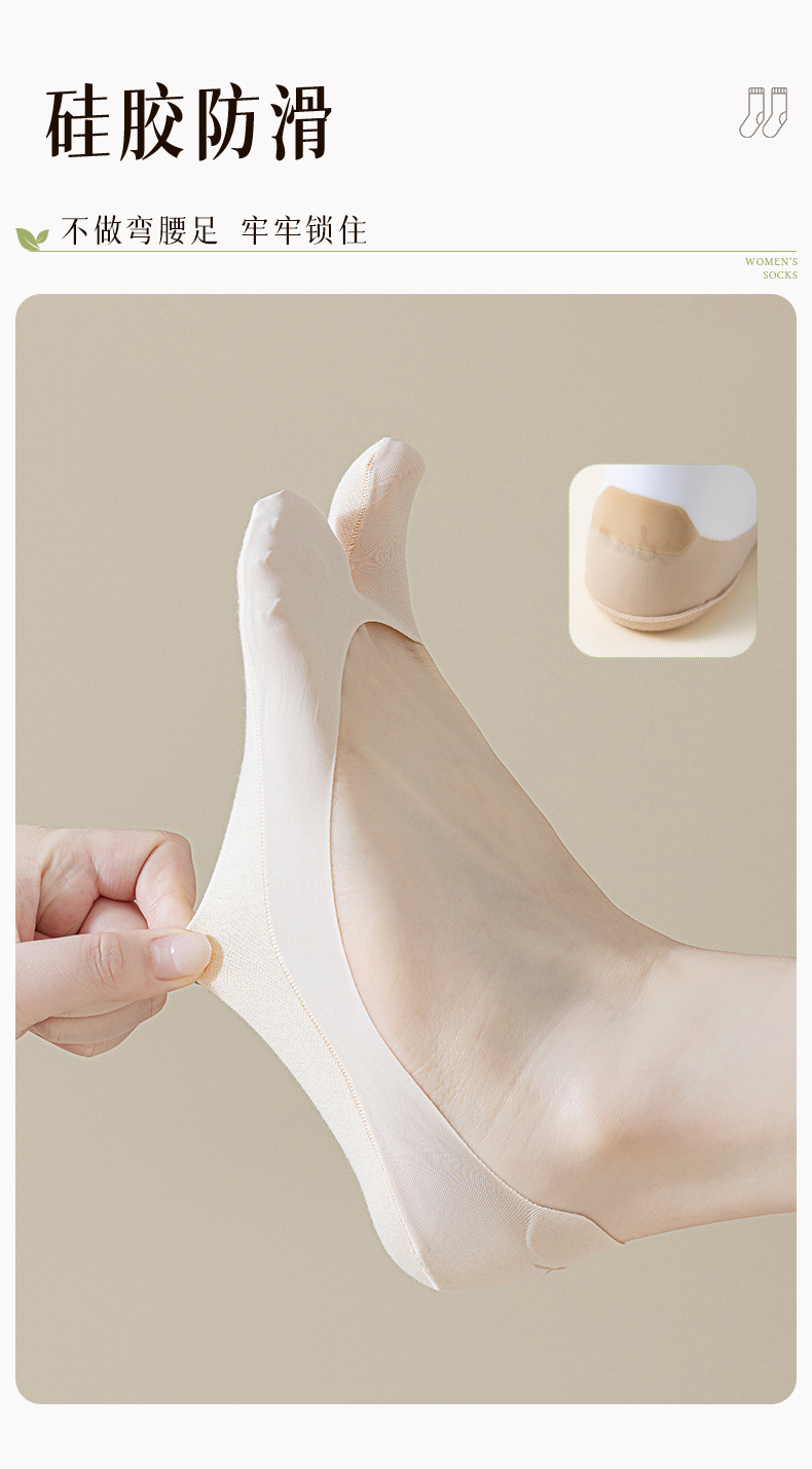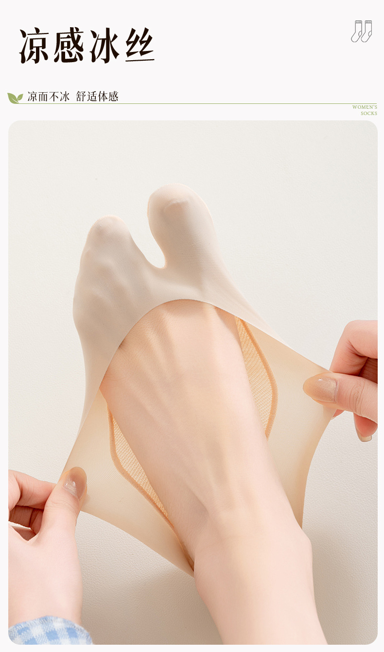 시아라 2025 신상품 분리형 발가락 아이스 실크 보트 양말 여름용 얇은 실리콘 미끄럼 방지 인비저블 양말 무봉제 얕은 입구스토어 가기