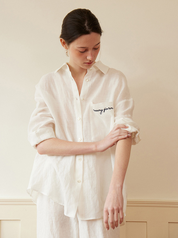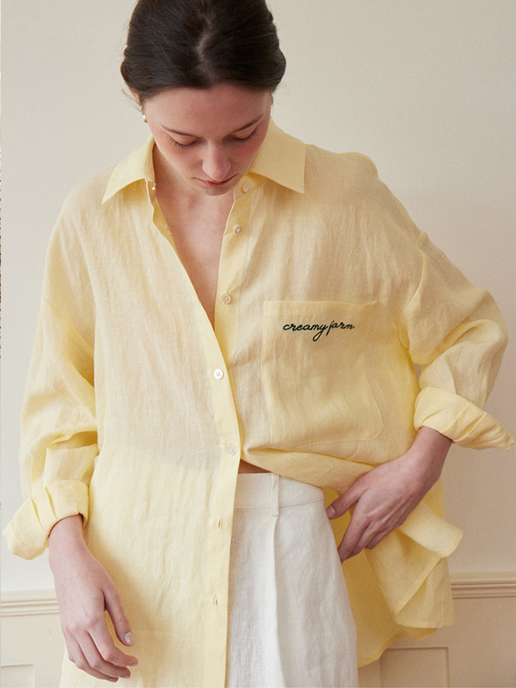 Siyuan 프랑스 자수 게으른 편안한 리넨 셔츠 여성용 긴팔 여름 느슨한 캐주얼 태양 보호 셔츠 7751스토어 가기
