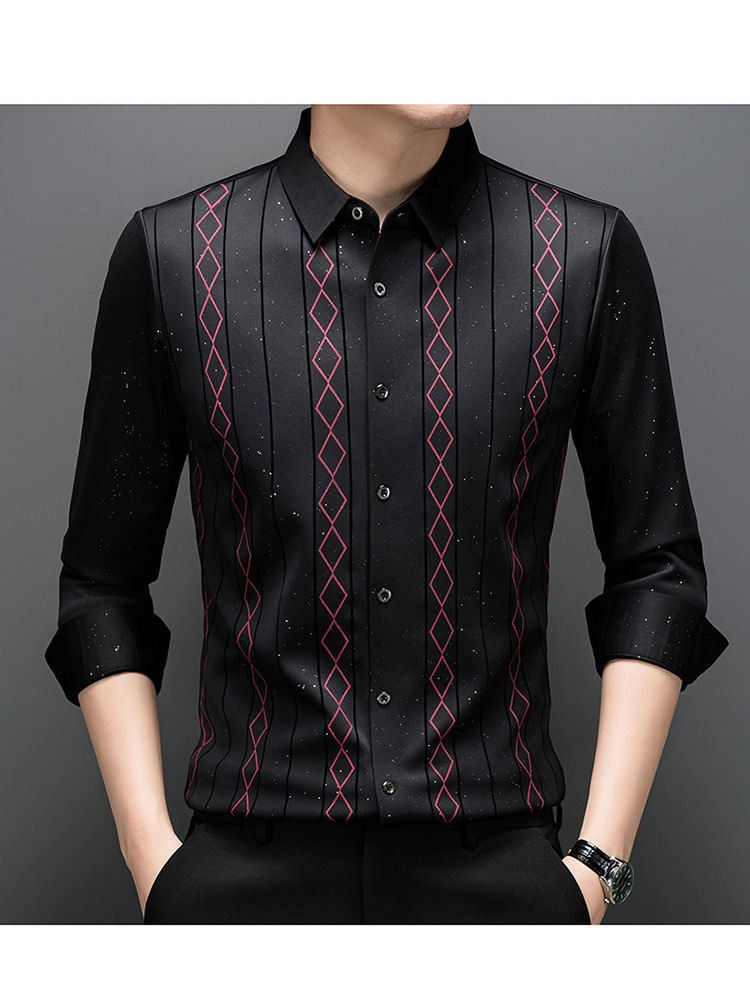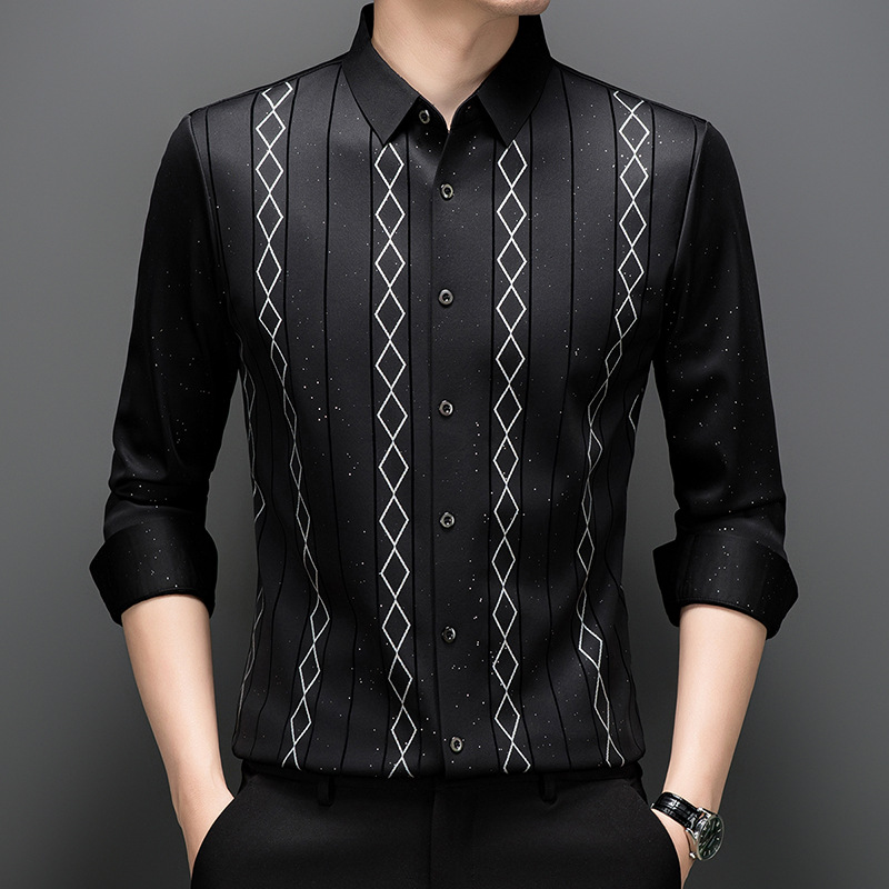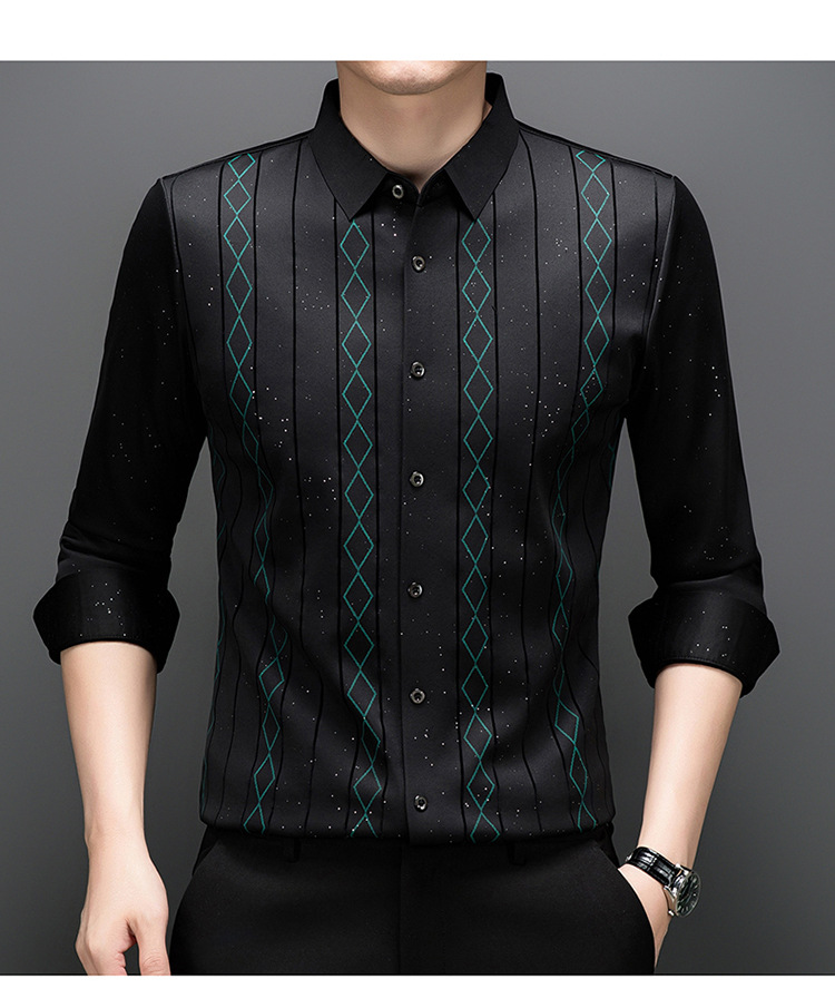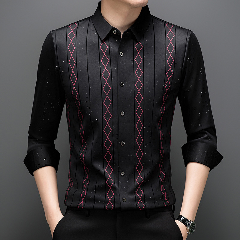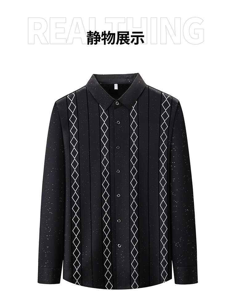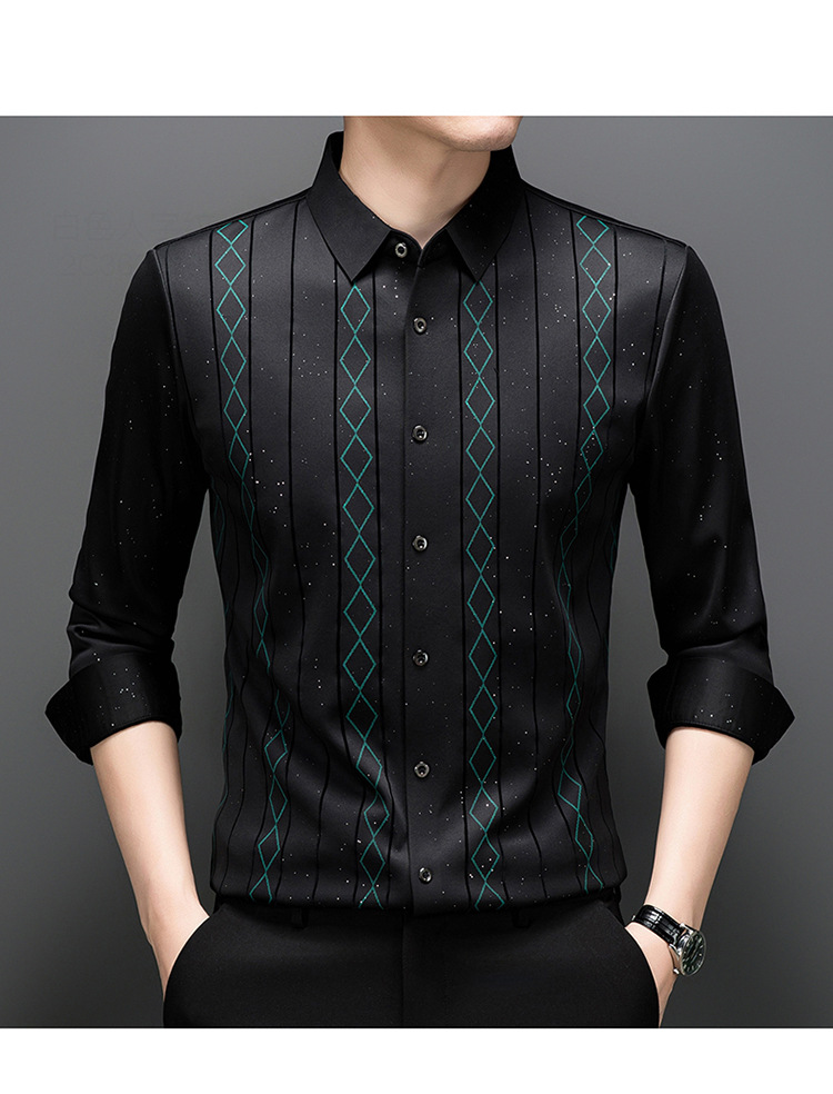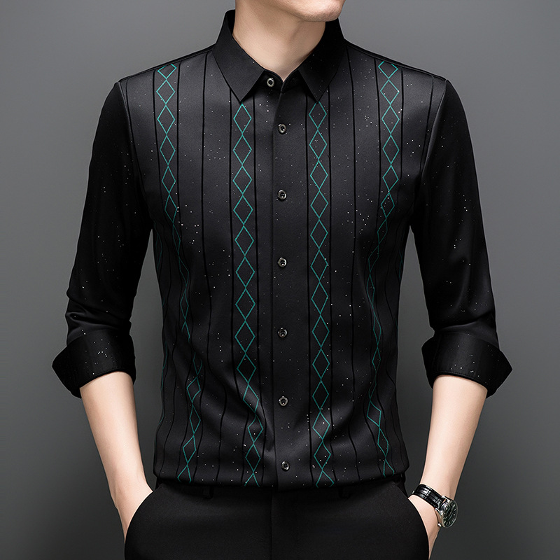 다이파 새 봄과 가을 하이 엔드 긴팔 셔츠 중년 남성 비즈니스 캐주얼 셔츠 슬림 핏 인쇄 비 다림질 탑