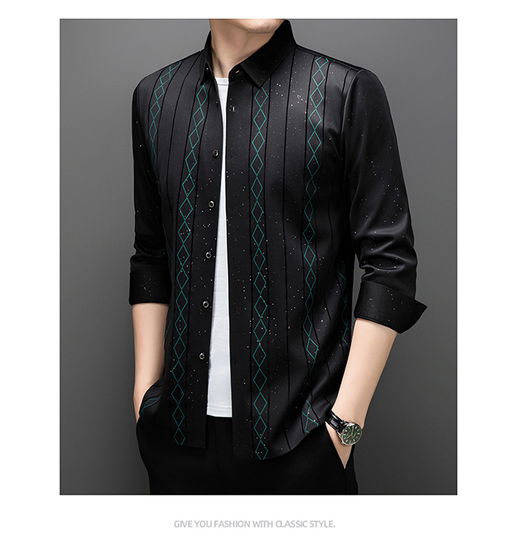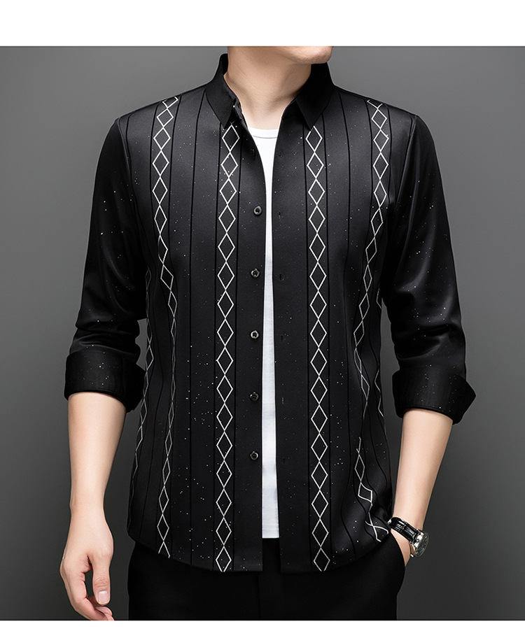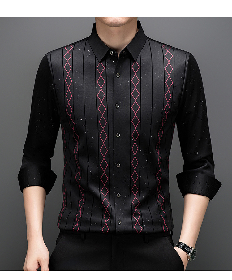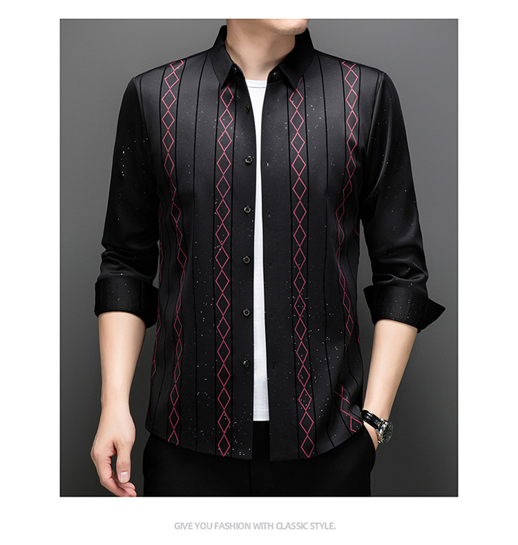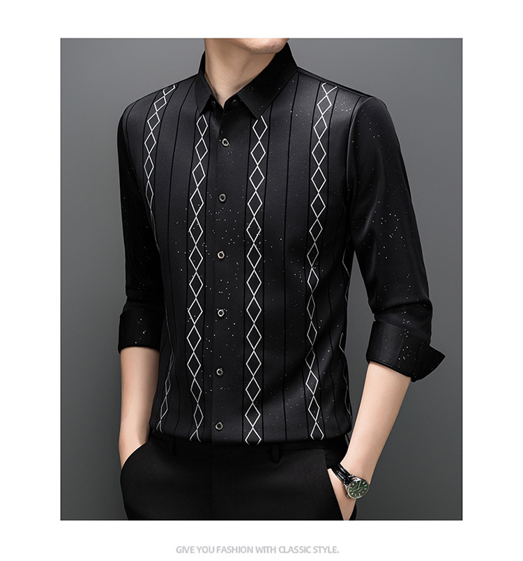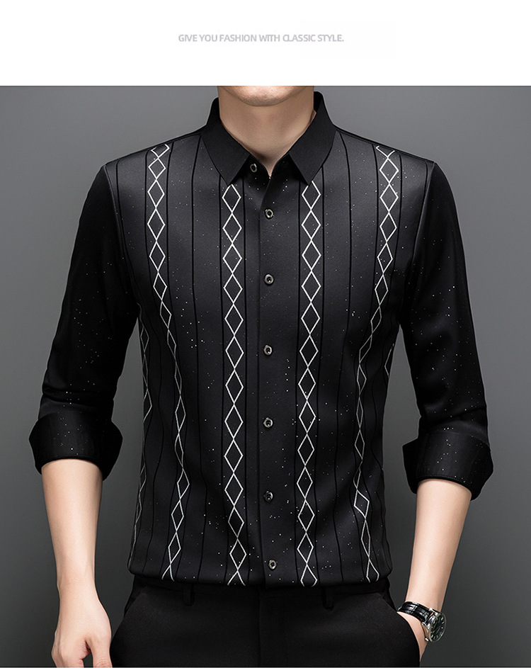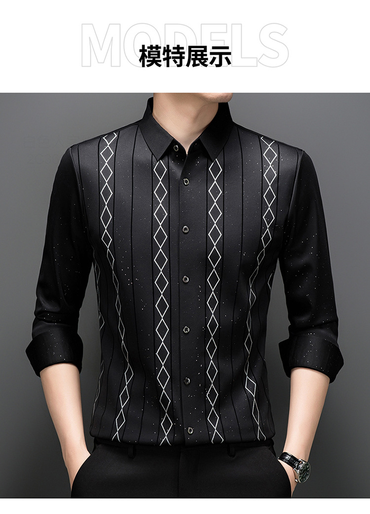 다이파 새 봄과 가을 하이 엔드 긴팔 셔츠 중년 남성 비즈니스 캐주얼 셔츠 슬림 핏 인쇄 비 다림질 탑