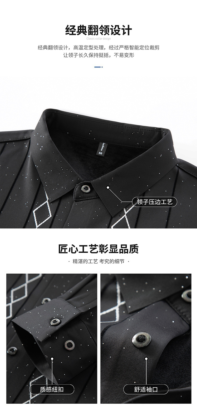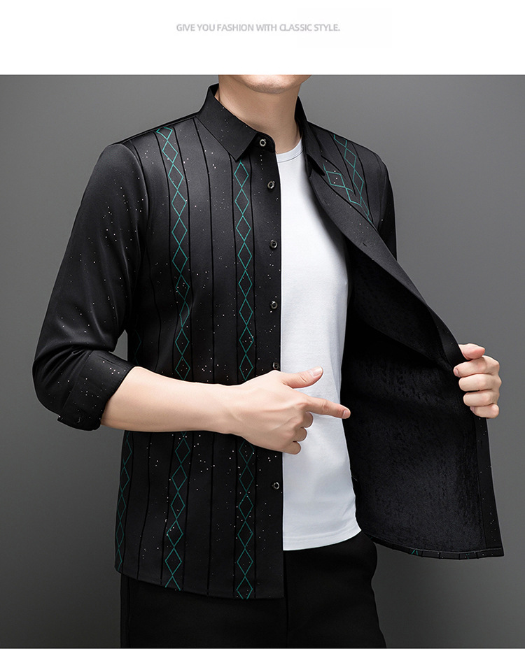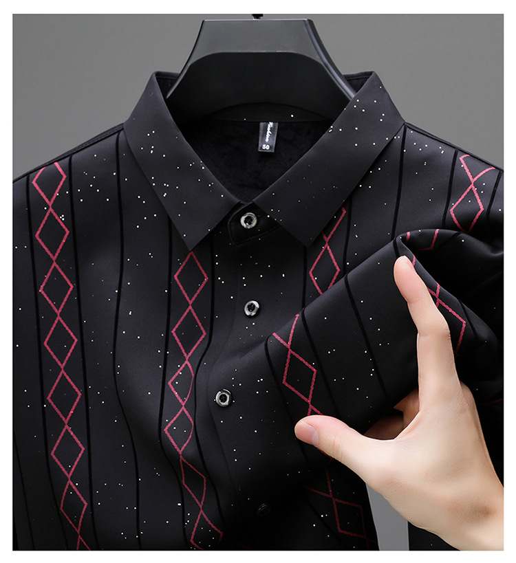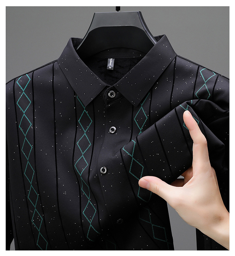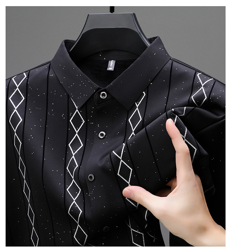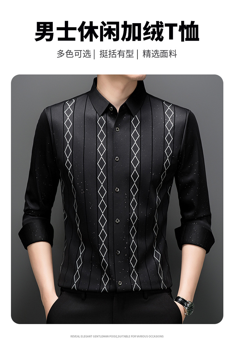 다이파 새 봄과 가을 하이 엔드 긴팔 셔츠 중년 남성 비즈니스 캐주얼 셔츠 슬림 핏 인쇄 비 다림질 탑