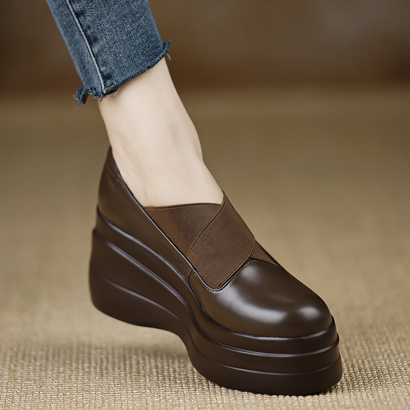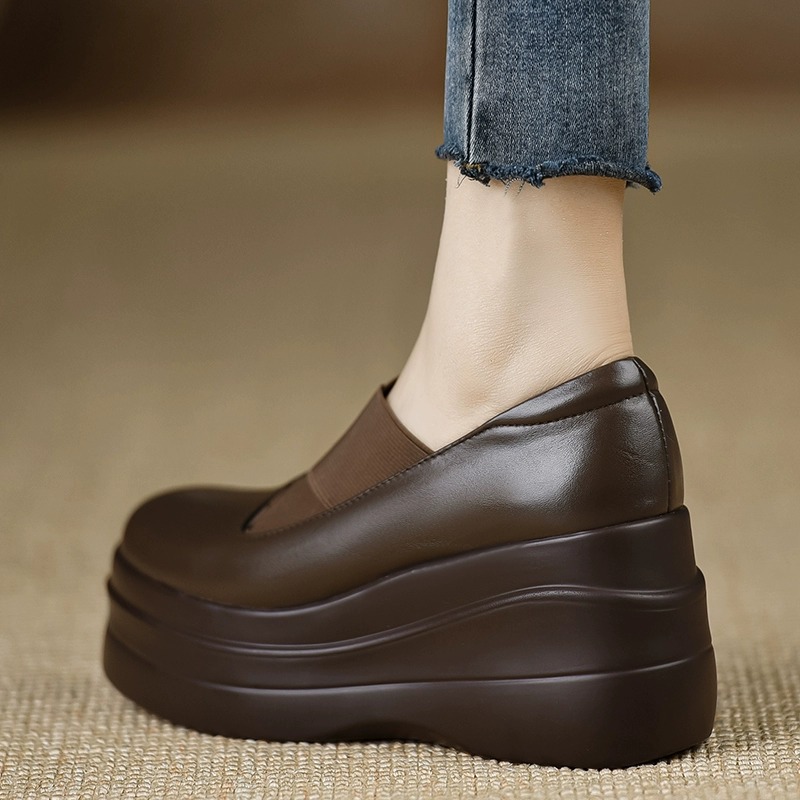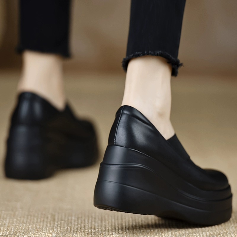 편안한 플랫폼 하단 로퍼 2025 새로운 봄과 가을 올 매치 웨지 가죽 신발 여성용 슬림 하이힐스토어 가기