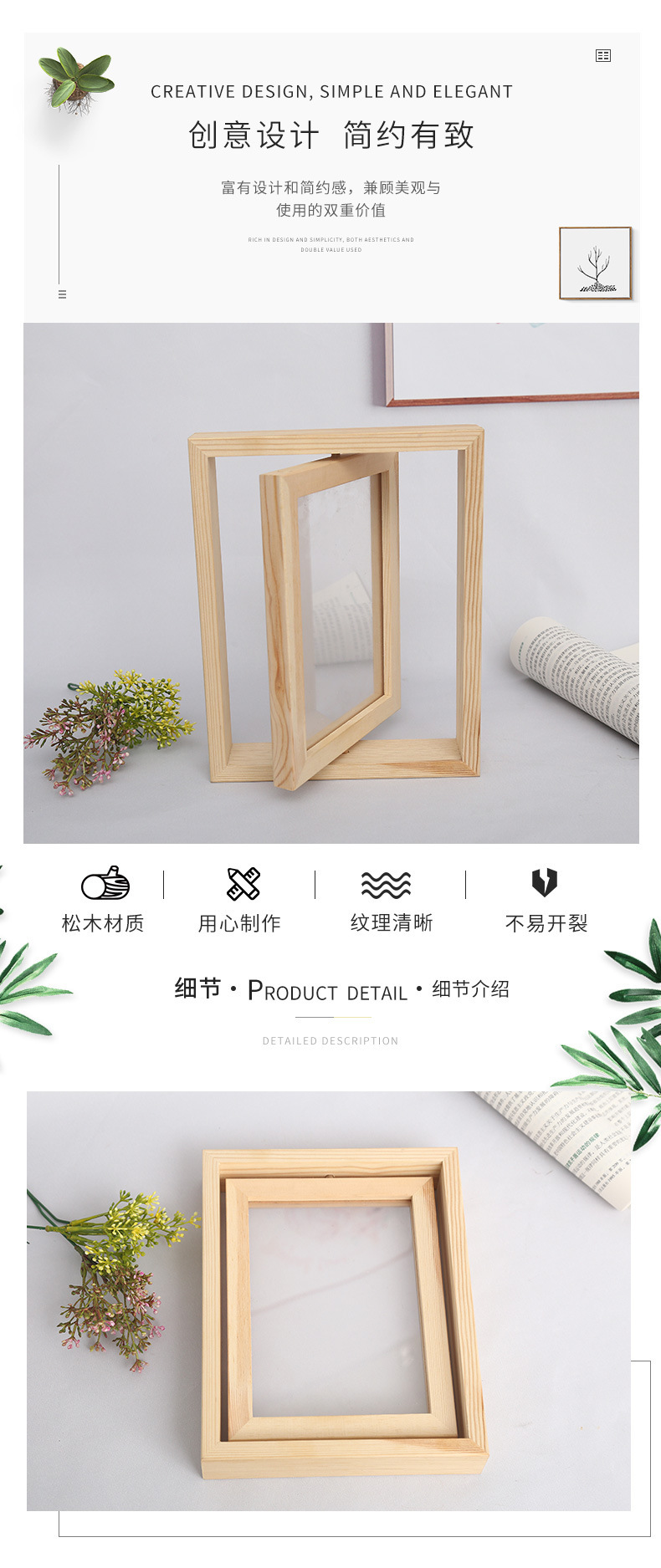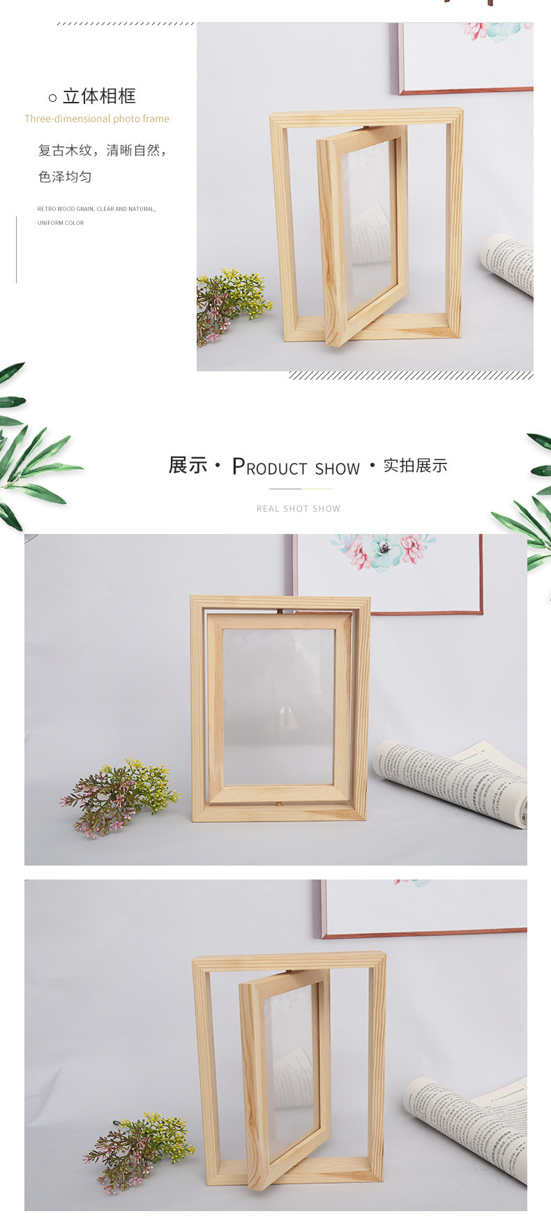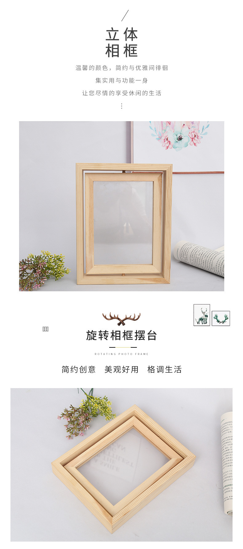 솔리드 우드 회전 사진 프레임 데스크탑 사진 프레임 테이블 장식 소나무 양면 사진 디스플레이 스테레오 나무 사진 프레임 장식품스토어 가기
